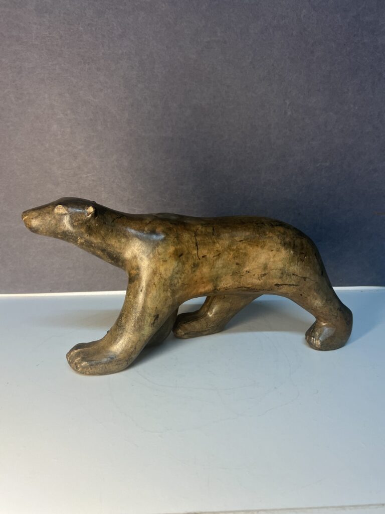 Epreuve en bronze à patine brun vert nuancé représentant l’ours blanc, signé Pierre Chenet