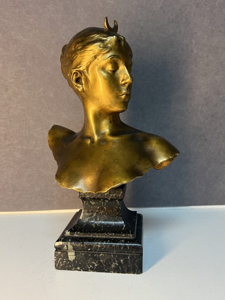 « Découvrez la sculpture en bronze de Diane par Alexandre Falguière (1831-1900), une œuvre captivante mêlant grâce et maîtrise artistique. »