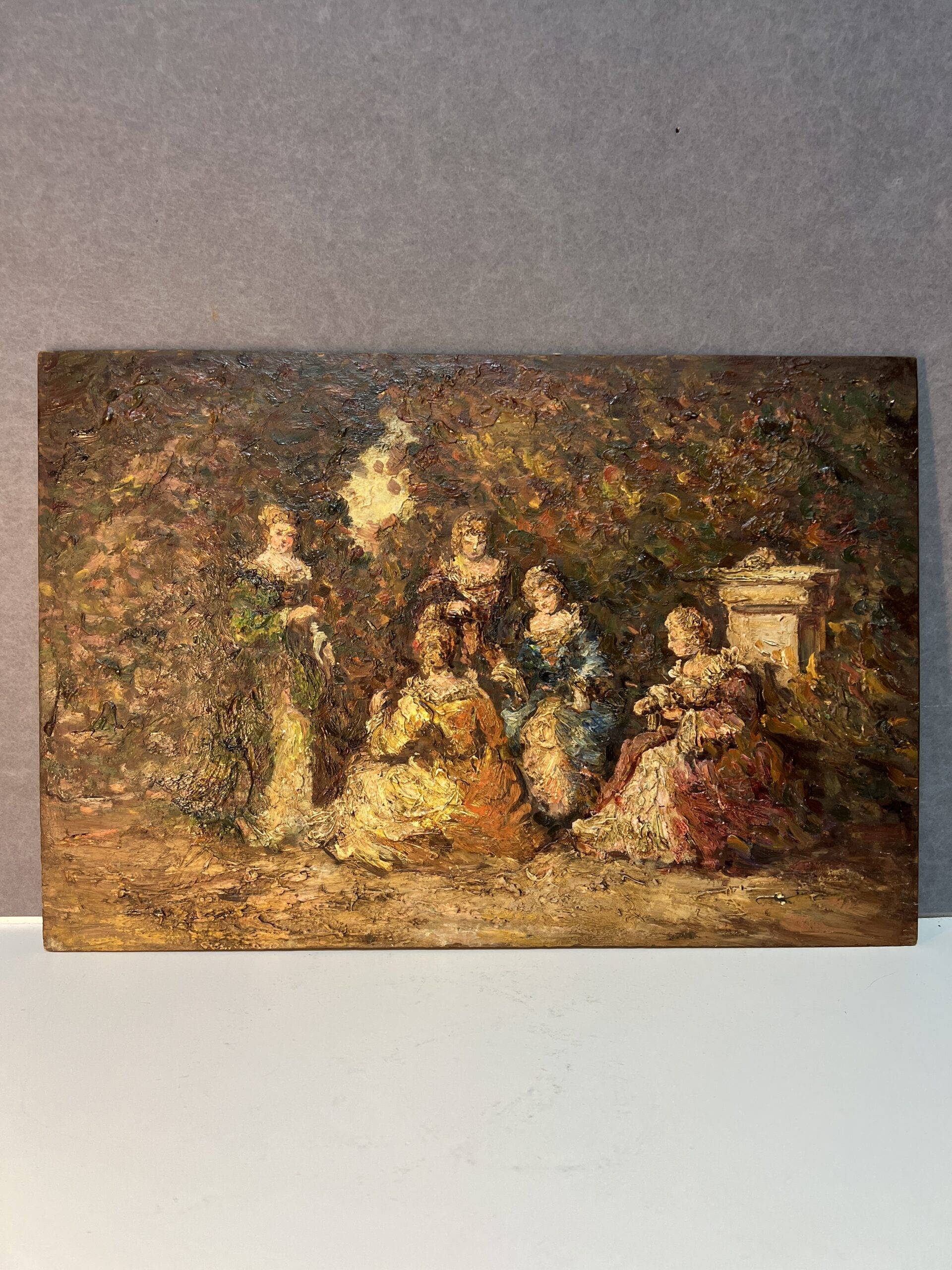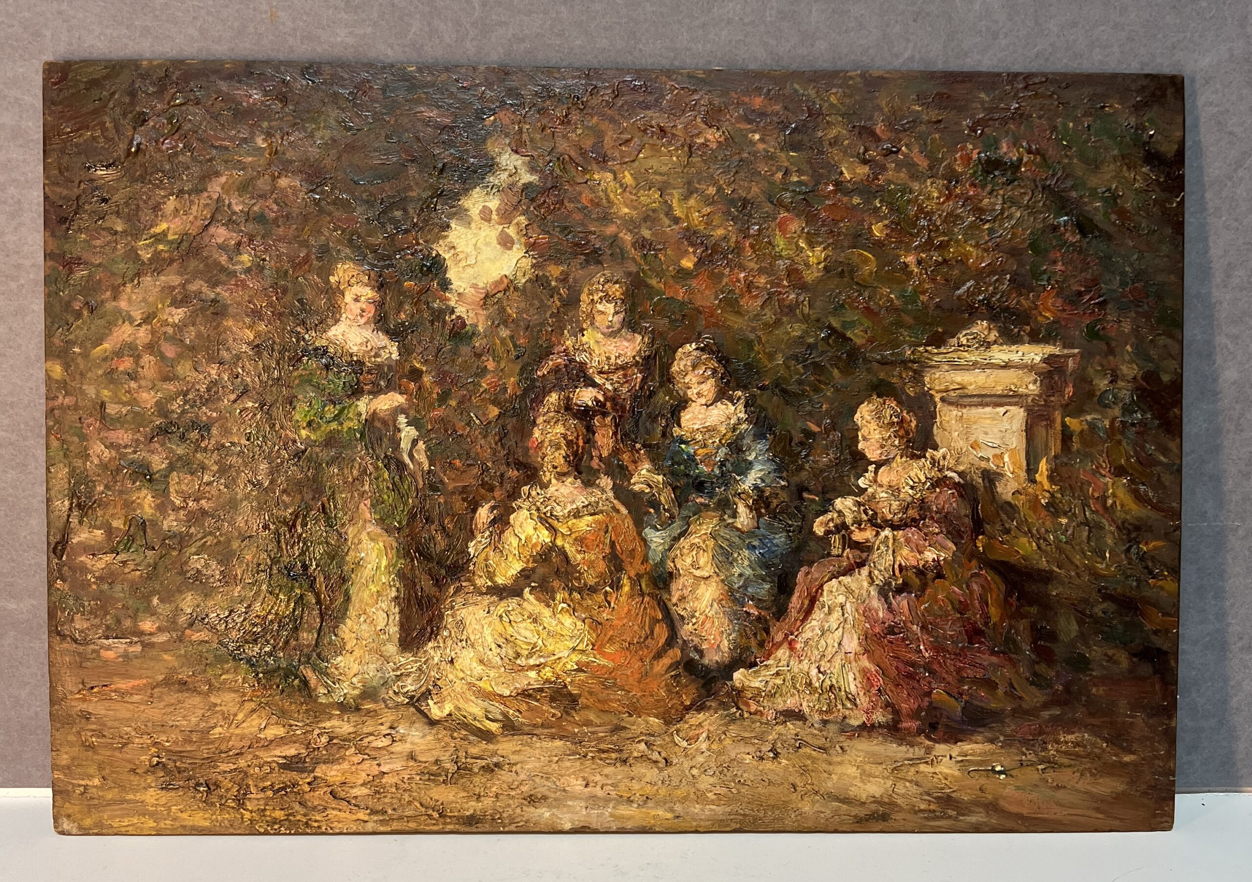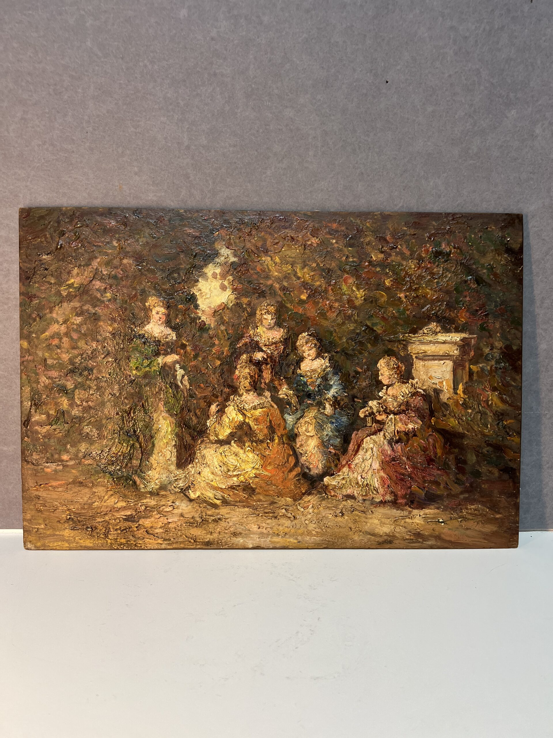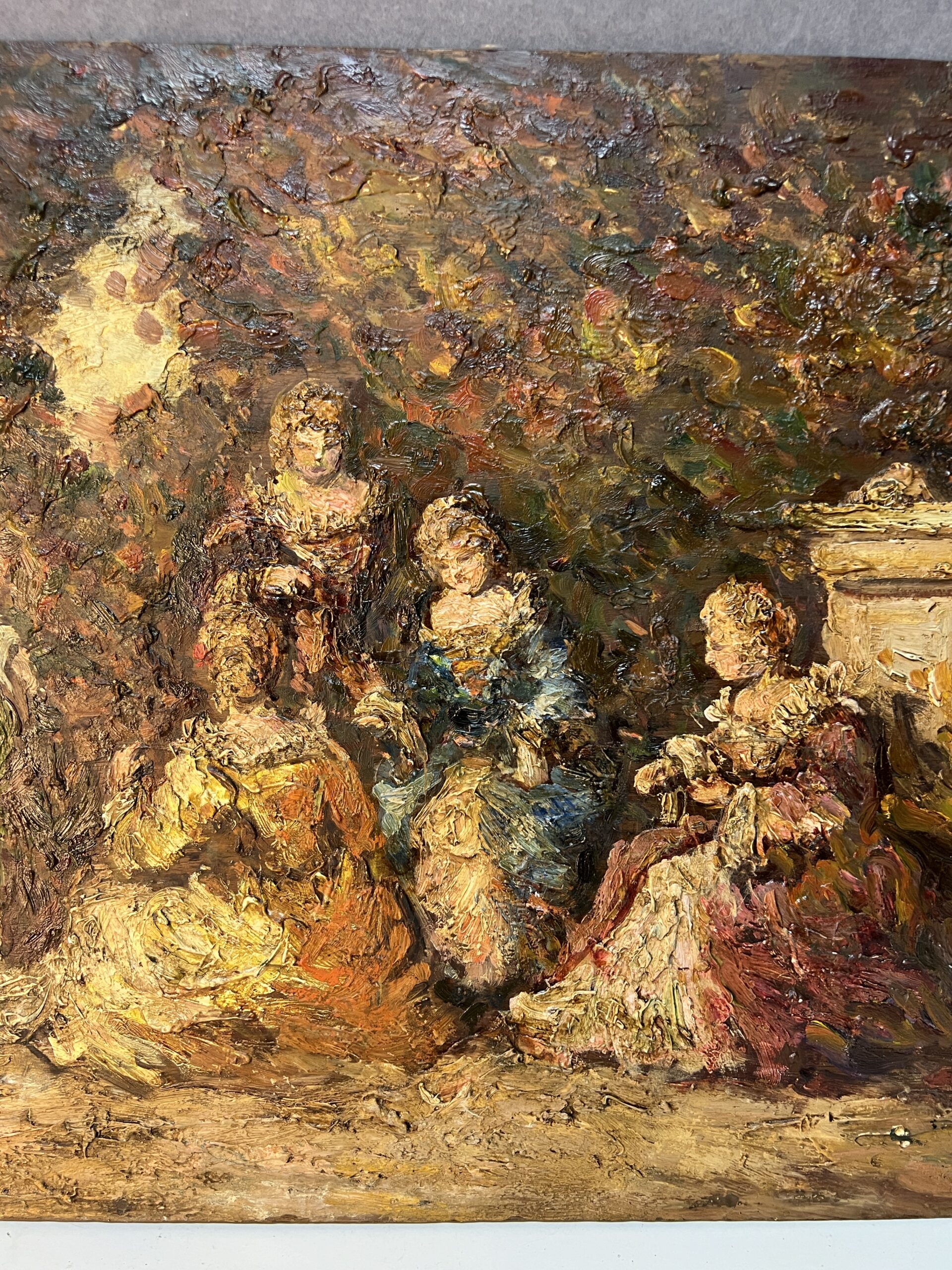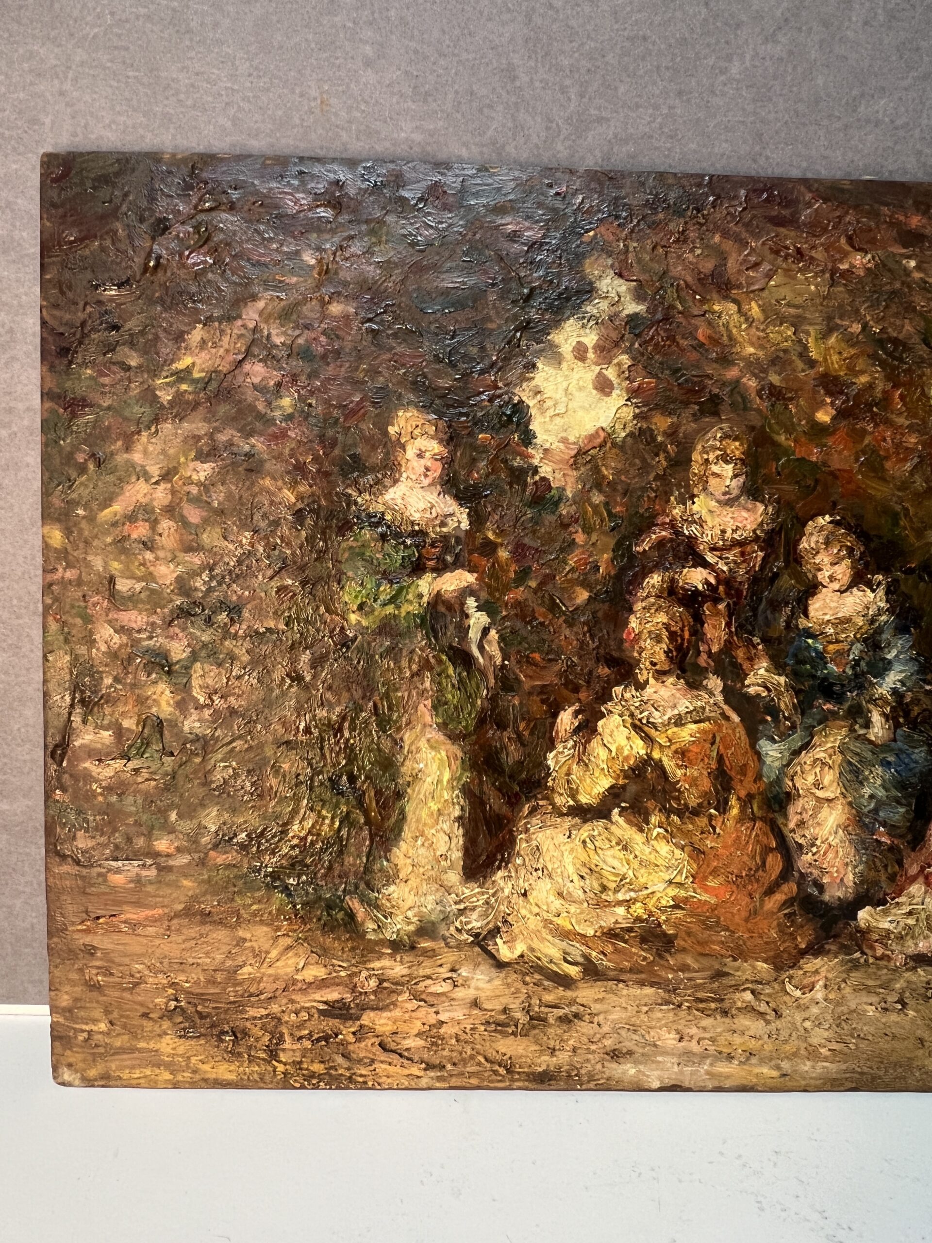 Adolphe Joseph Thomas Monticelli ( 18824-1886 ) Peinture huile sur panneau acajou, scène de dames