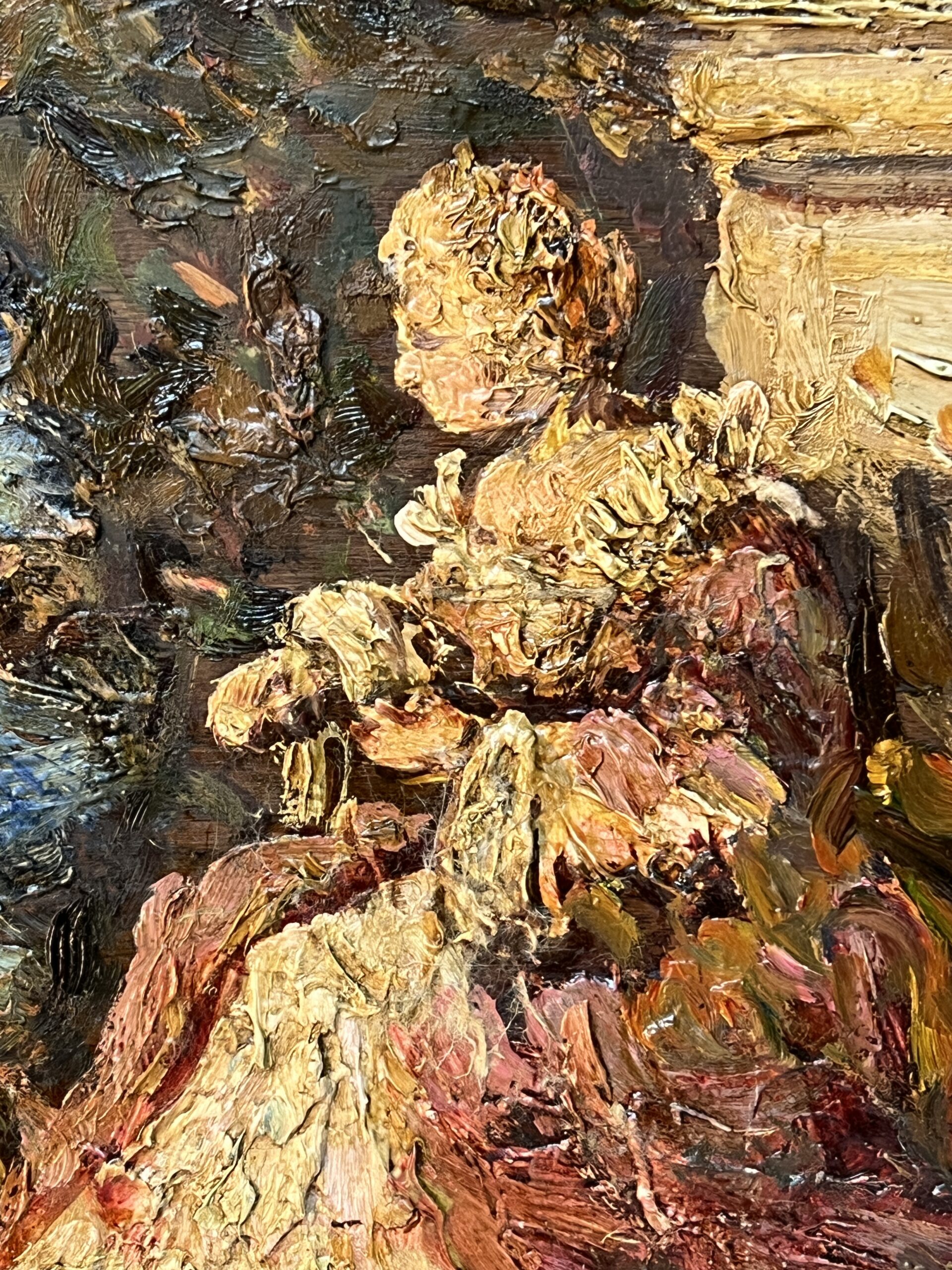 En examinant de plus près le réalisme de cette œuvre, on peut apprécier la finesse du travail de Monticelli. Les expressions des visages, les plis des vêtements, et les détails des éléments du paysage sont rendus avec une précision et un souci du détail qui témoignent du talent de l’artiste.