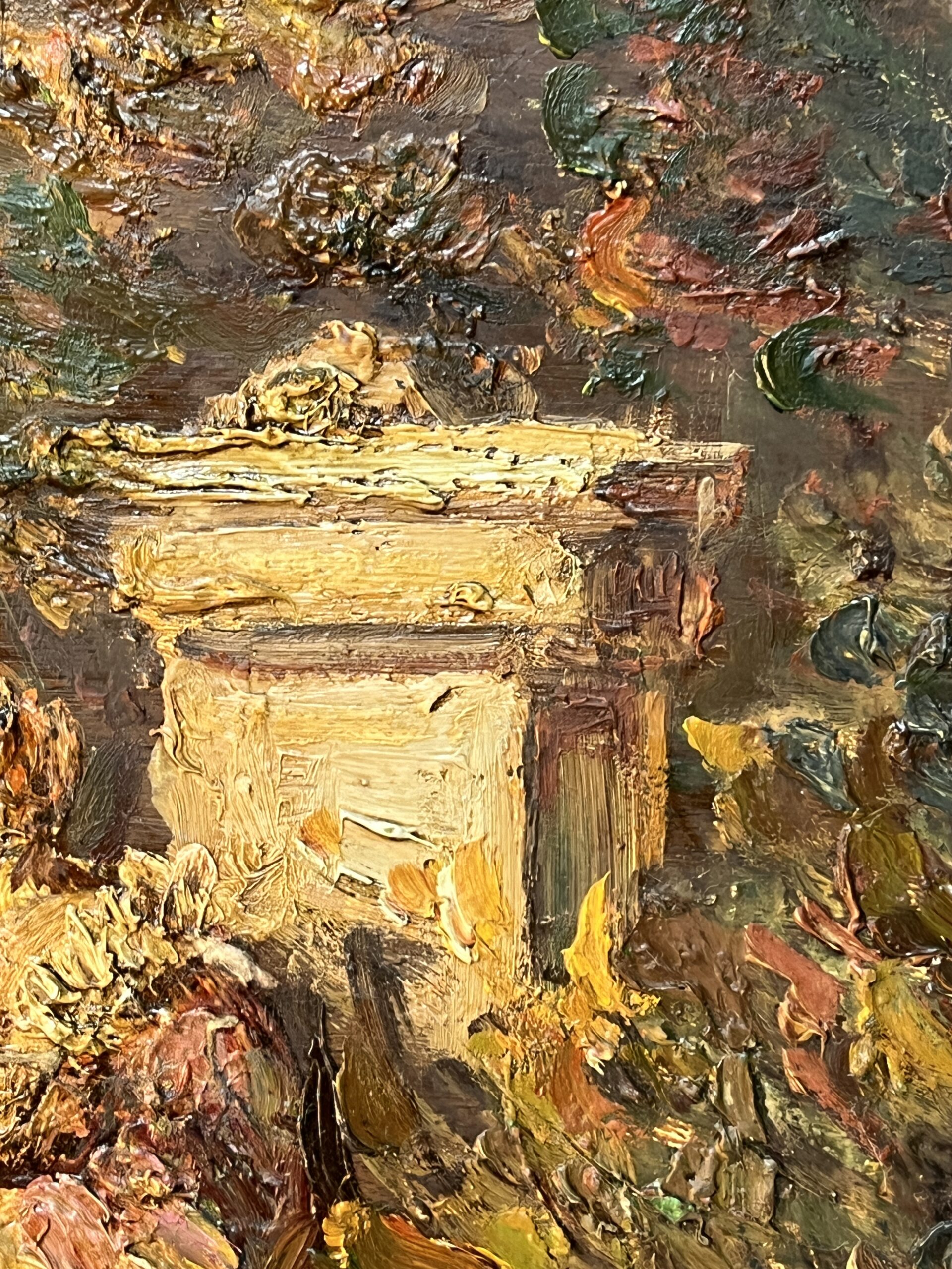 Le support de cette œuvre est un panneau en acajou, offrant une toile solide et durable pour l’expression artistique de Monticelli. La peinture à l’huile, technique de prédilection de l’artiste, permet une richesse de nuances et une profondeur dans les couleurs qui sont caractéristiques de son style.