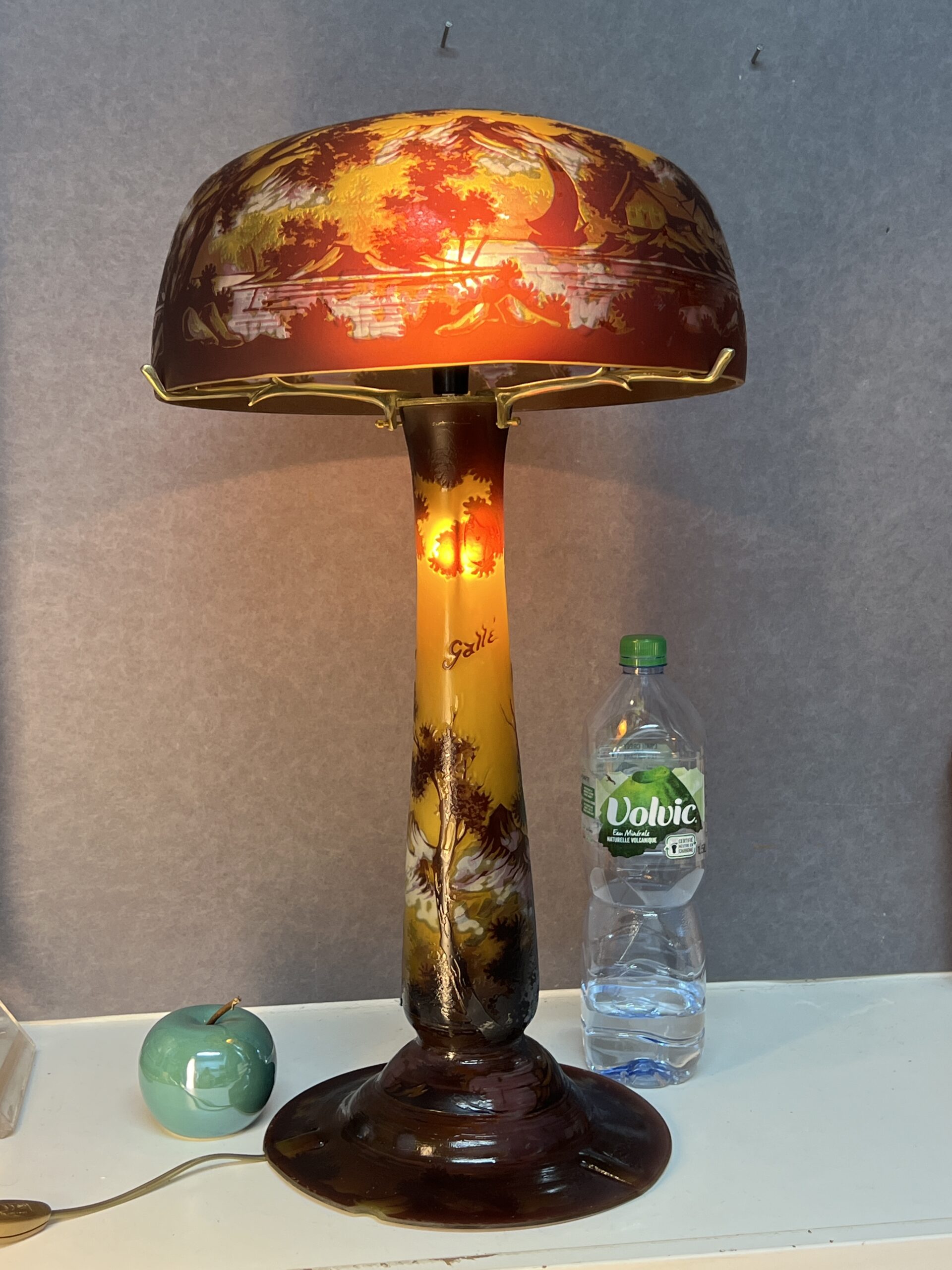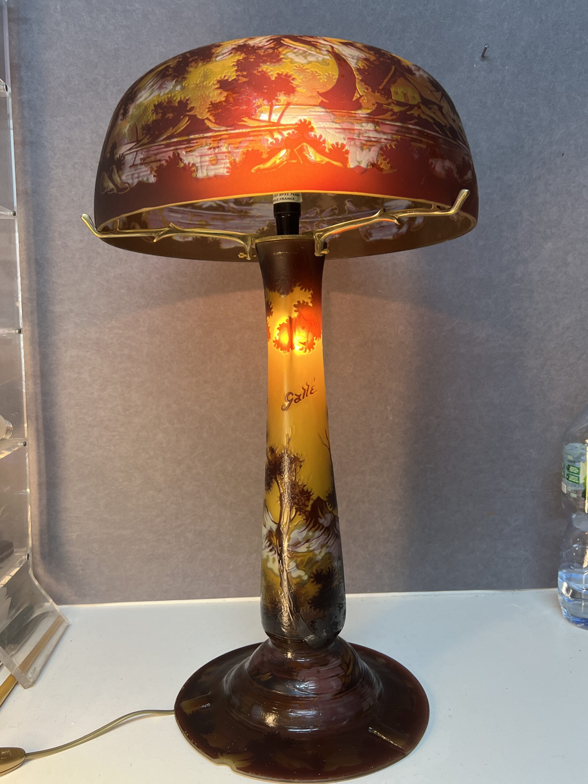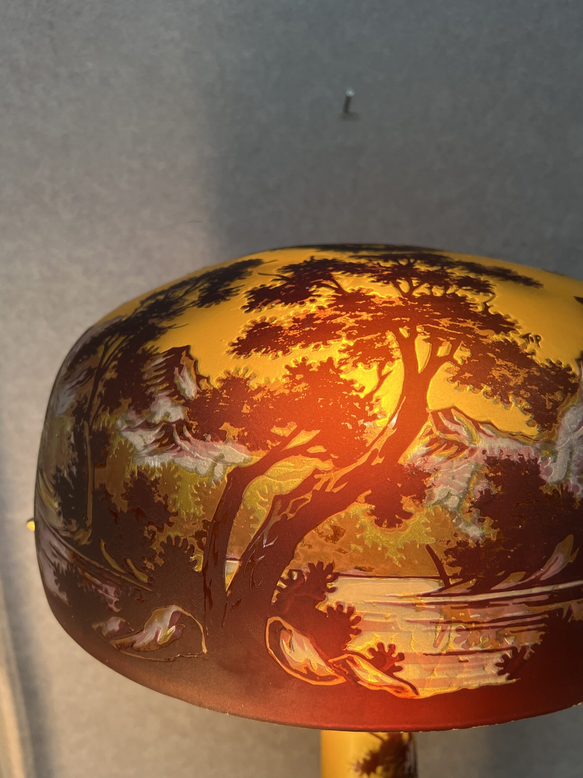 Belle et grande lampe champignon en pâte de verre Gallé contemporain