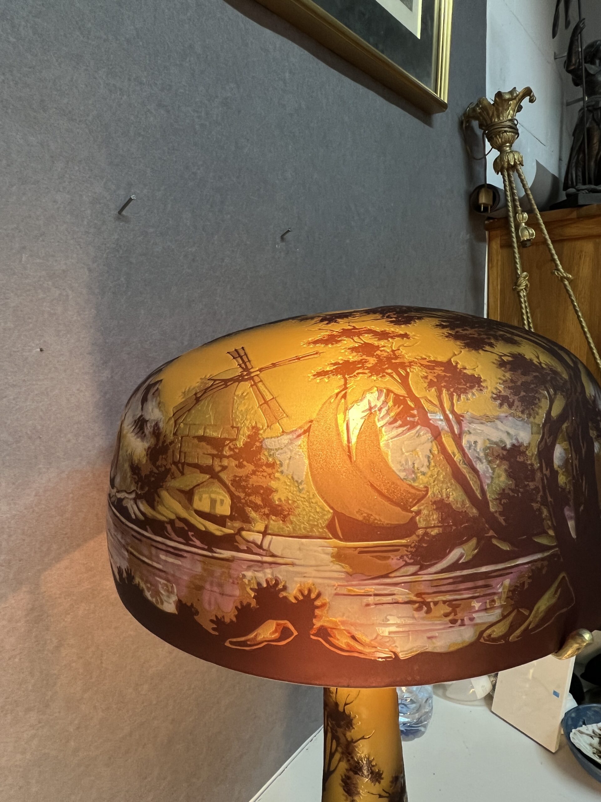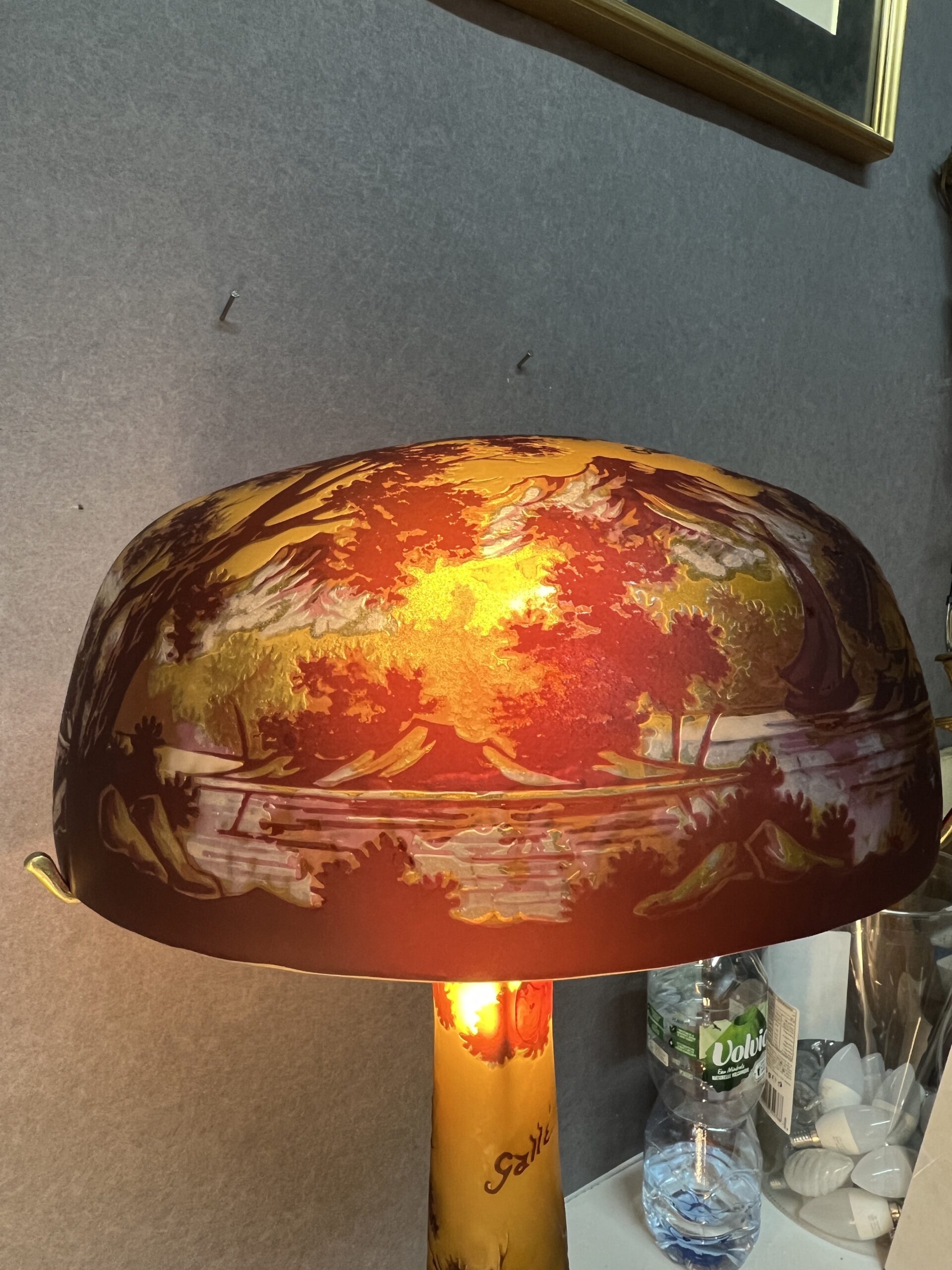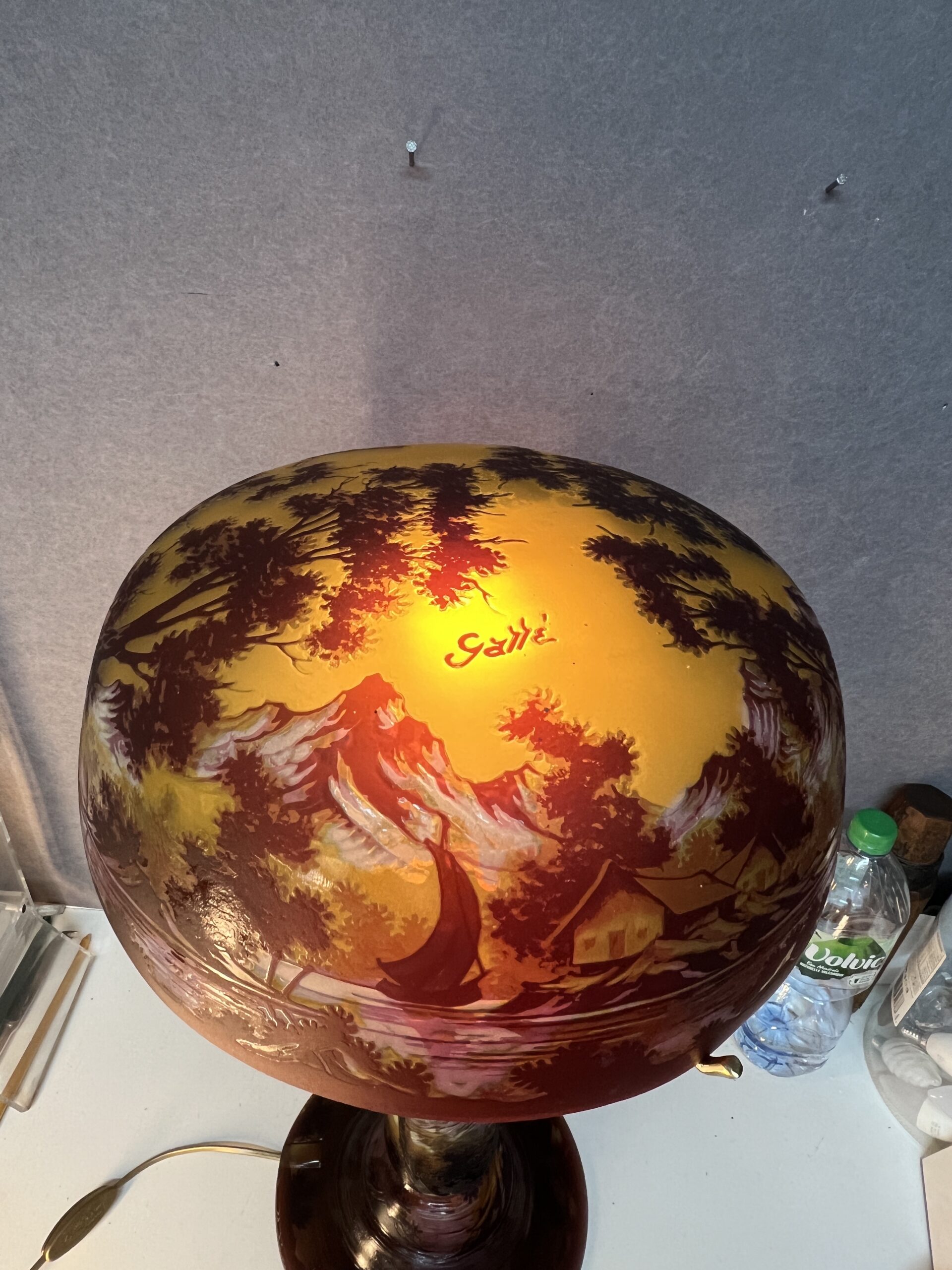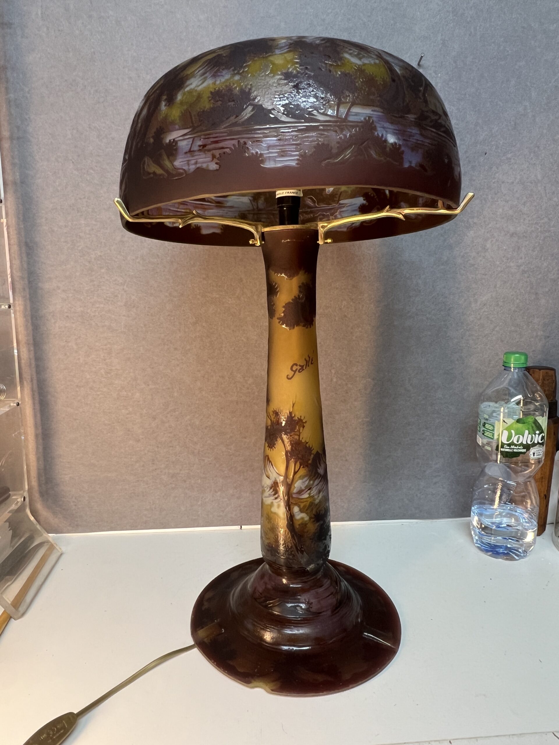 Belle et grande lampe champignon en pâte de verre Gallé contemporain
