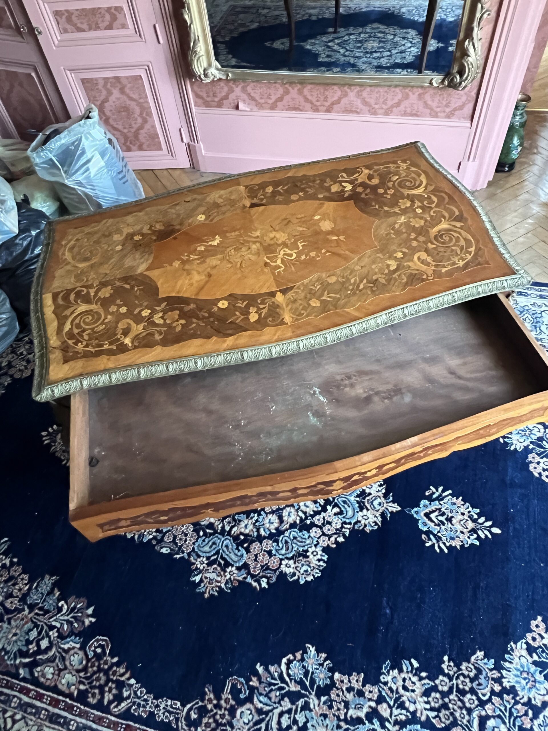 Cette marqueterie ne se limite pas uniquement au plateau.