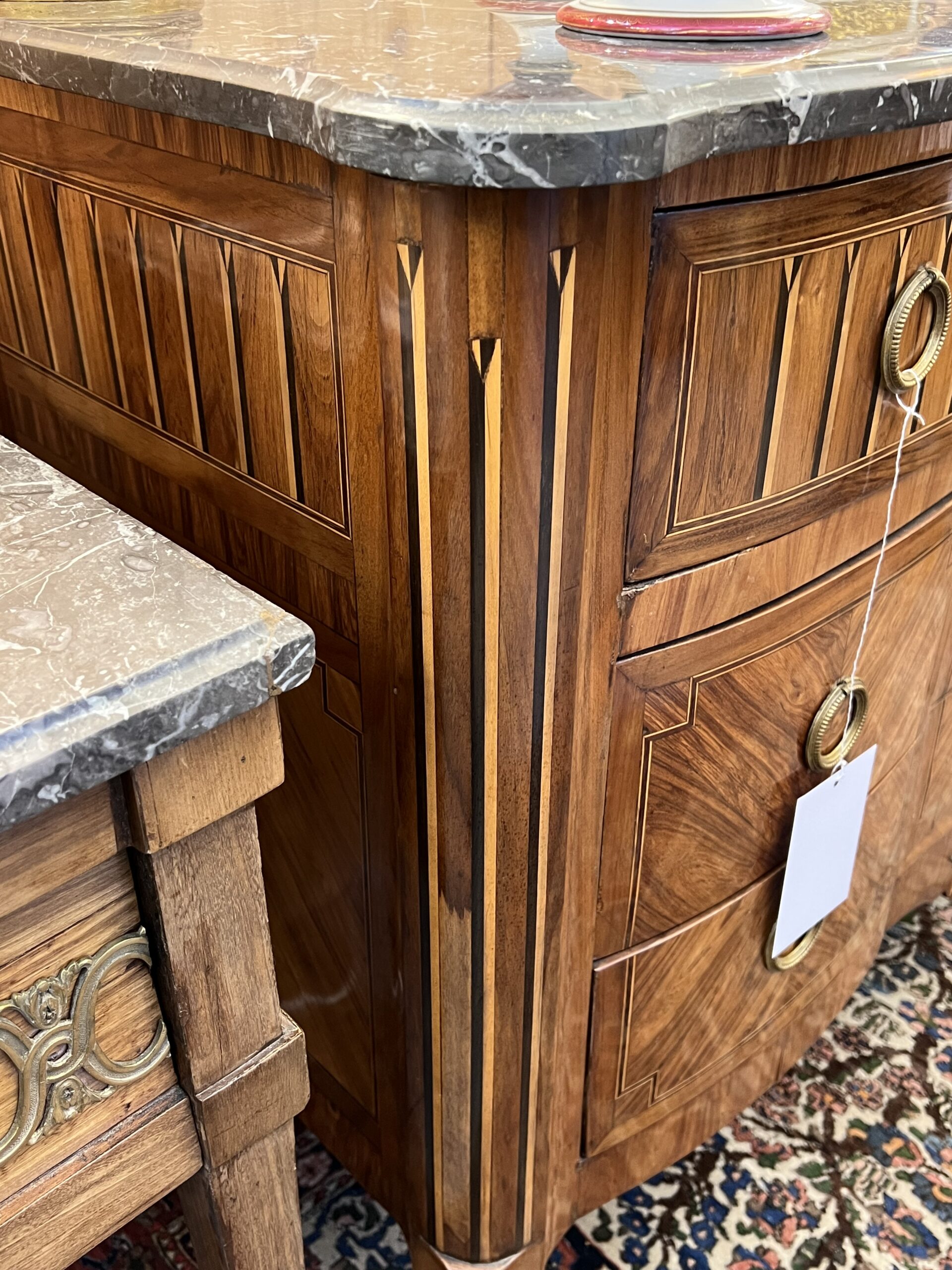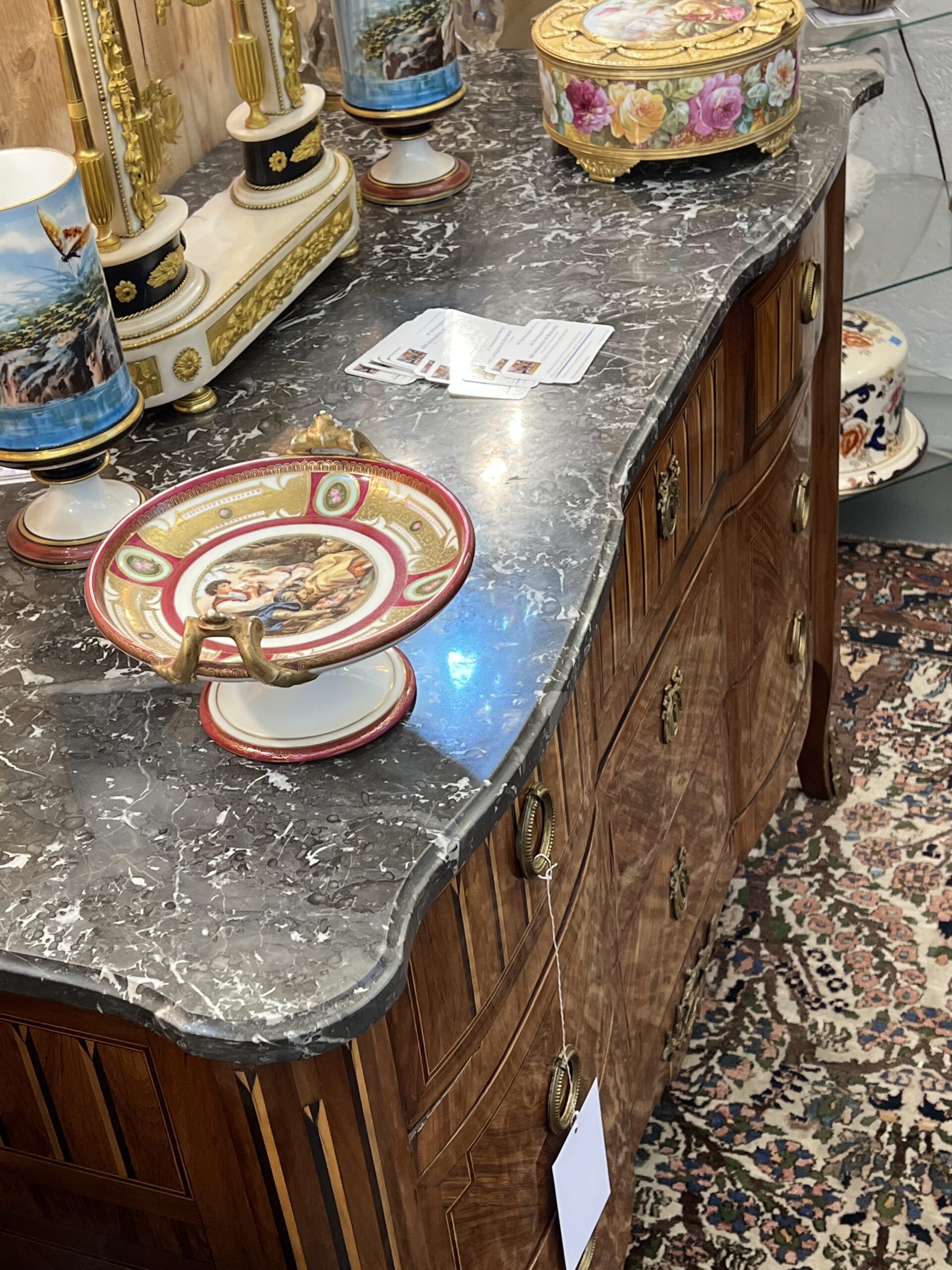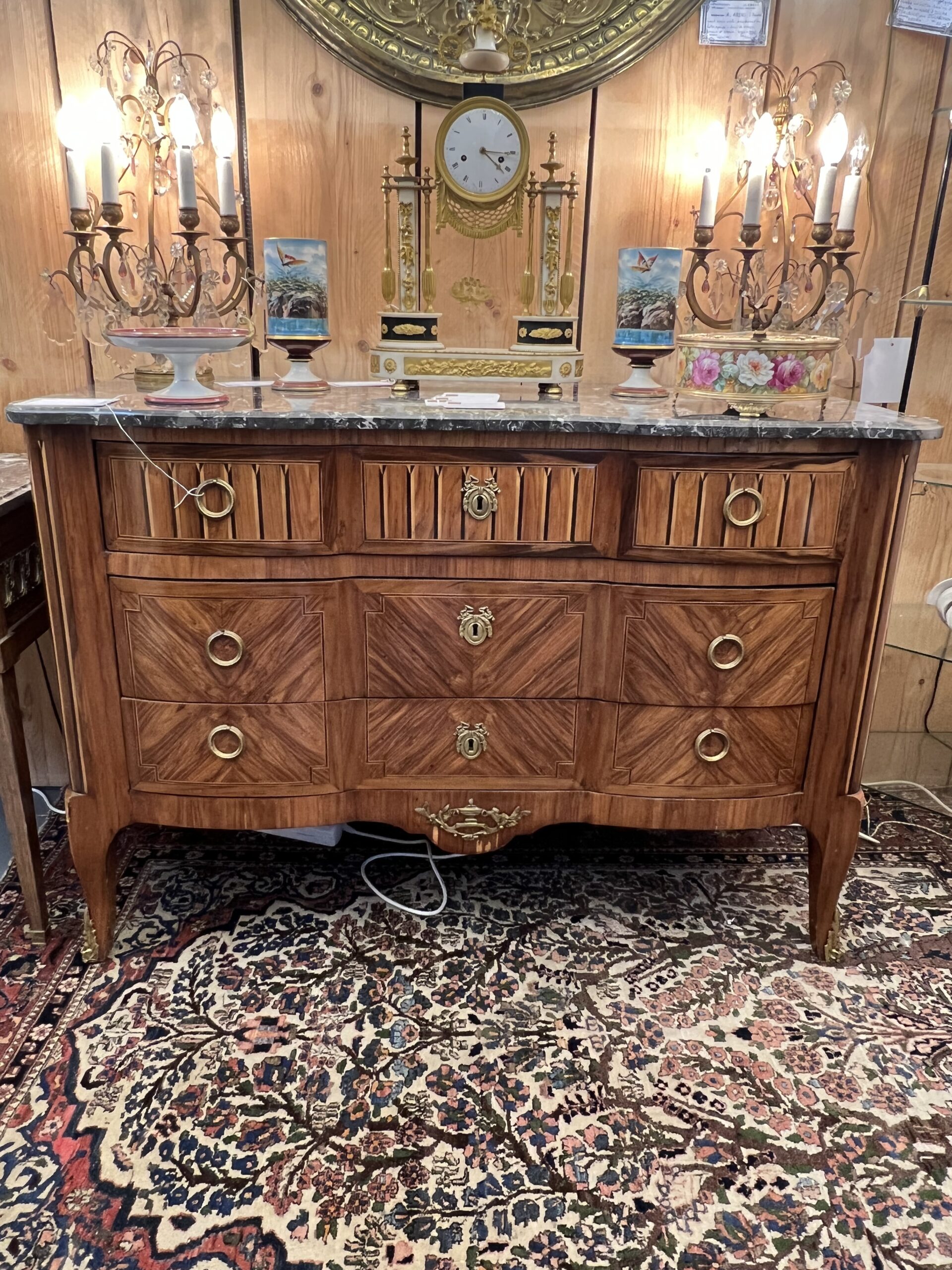 La commode que je vais vous présenter incarne l’élégance intemporelle et le raffinement caractéristiques du style Transition, un mariage harmonieux entre les ornements délicats du Louis XV et la sobriété géométrique du Louis XVI. Datant du XIXe siècle, cette pièce offre une fusion exquise de design et de fonctionnalité.