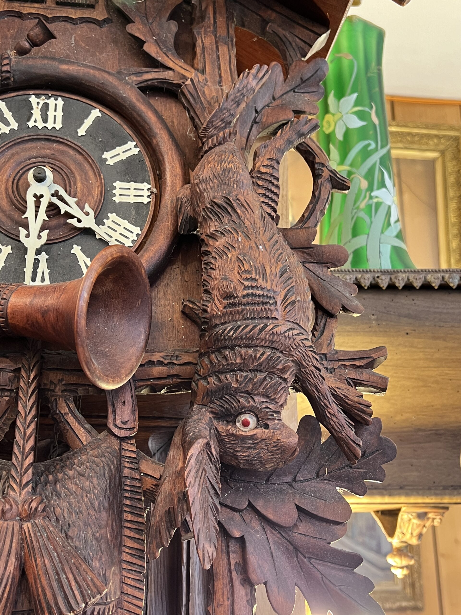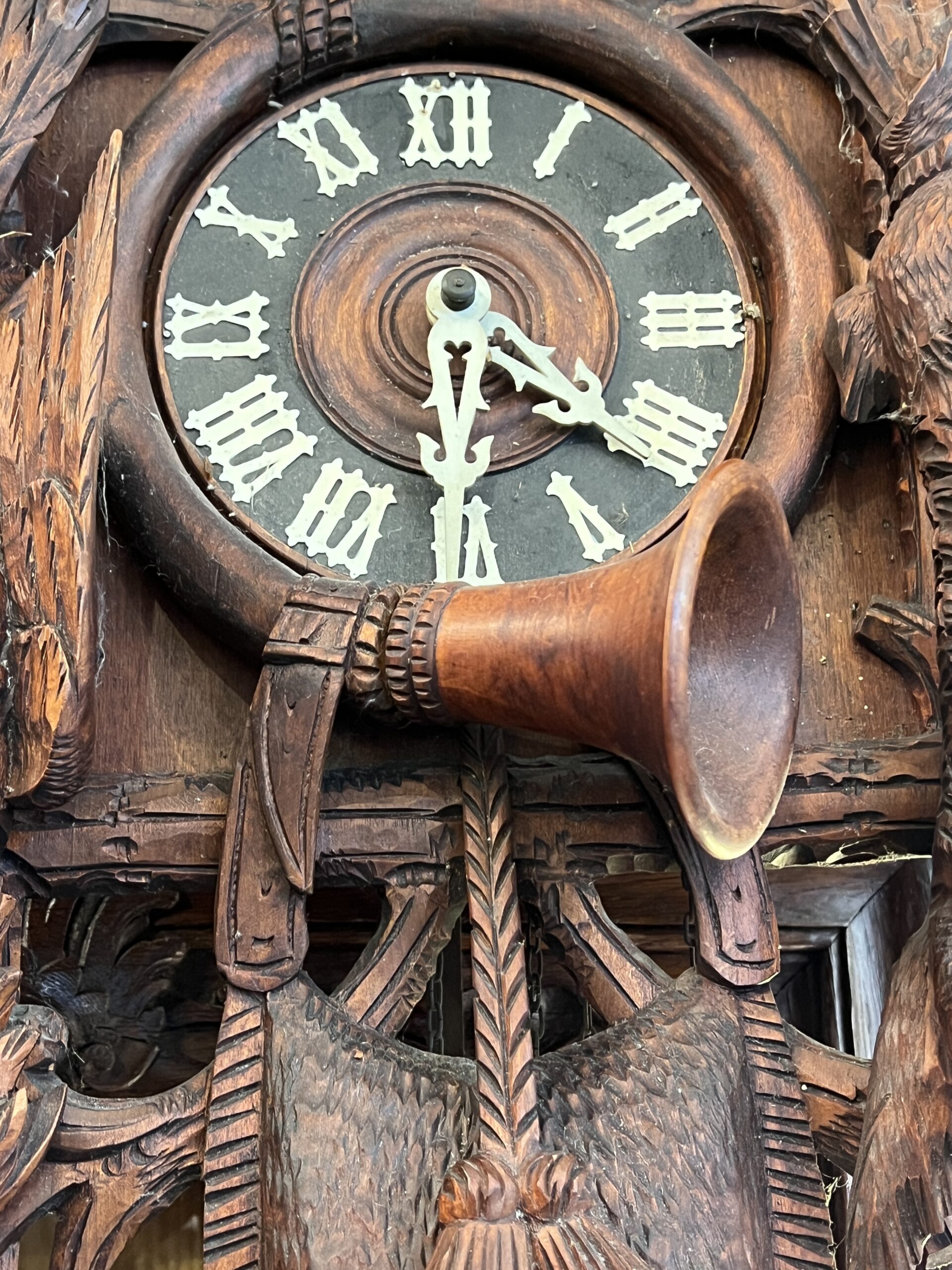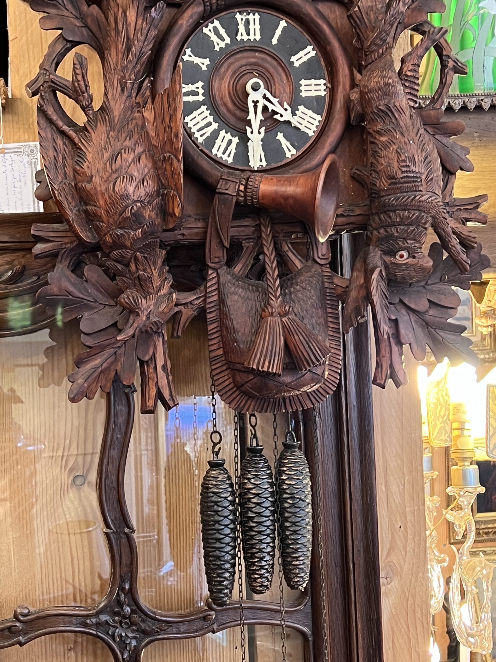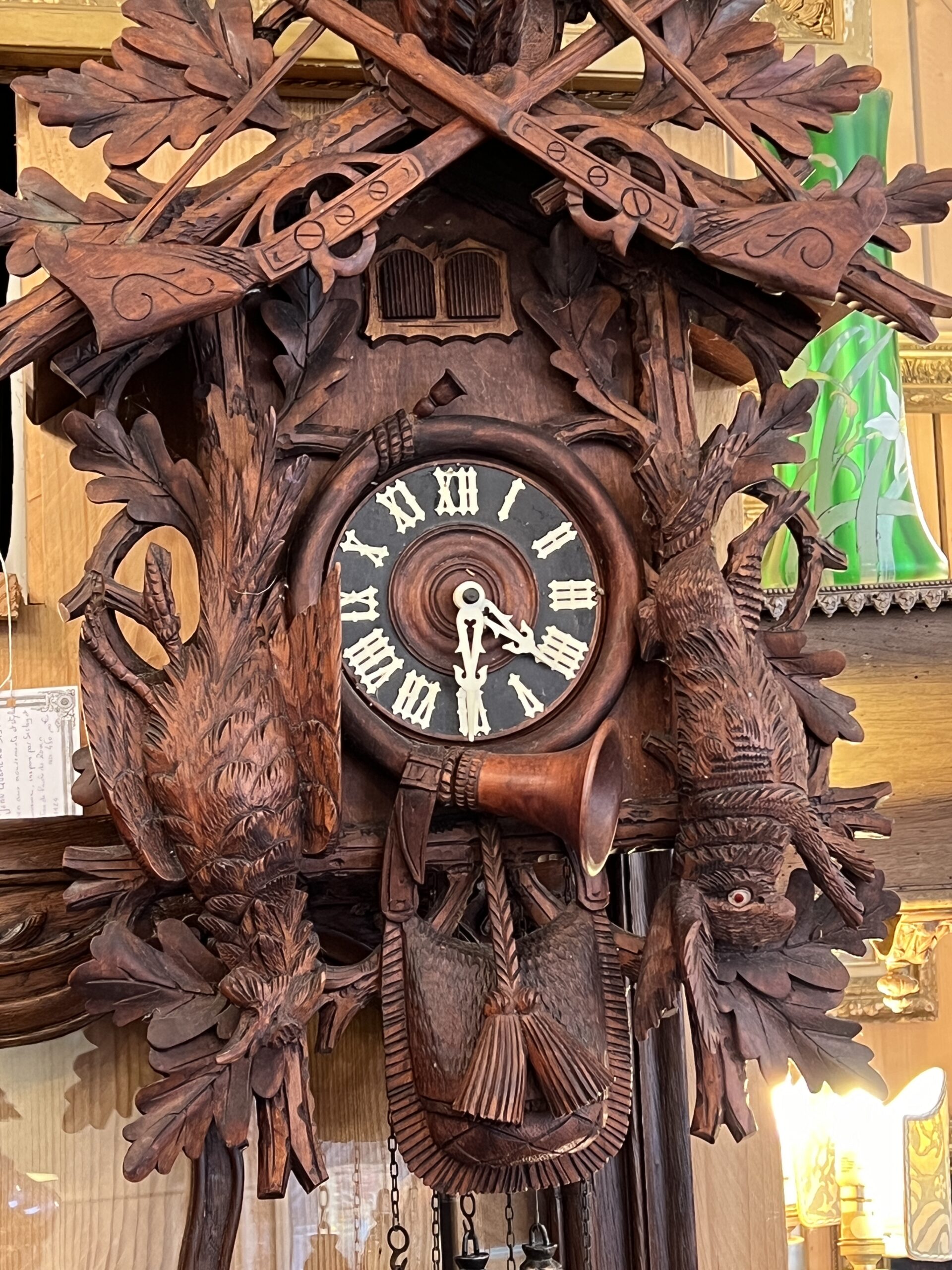En conclusion, le coucou en bois sculpté de la Forêt Noire est bien plus qu’un simple objet ; c’est un chef-d’œuvre d’ingéniosité, de beauté et de tradition. Son histoire fascinante et son artisanat impeccable en font un objet de convoitise pour les collectionneurs et un témoignage vivant de l’héritage culturel de la région de la Forêt Noire.
