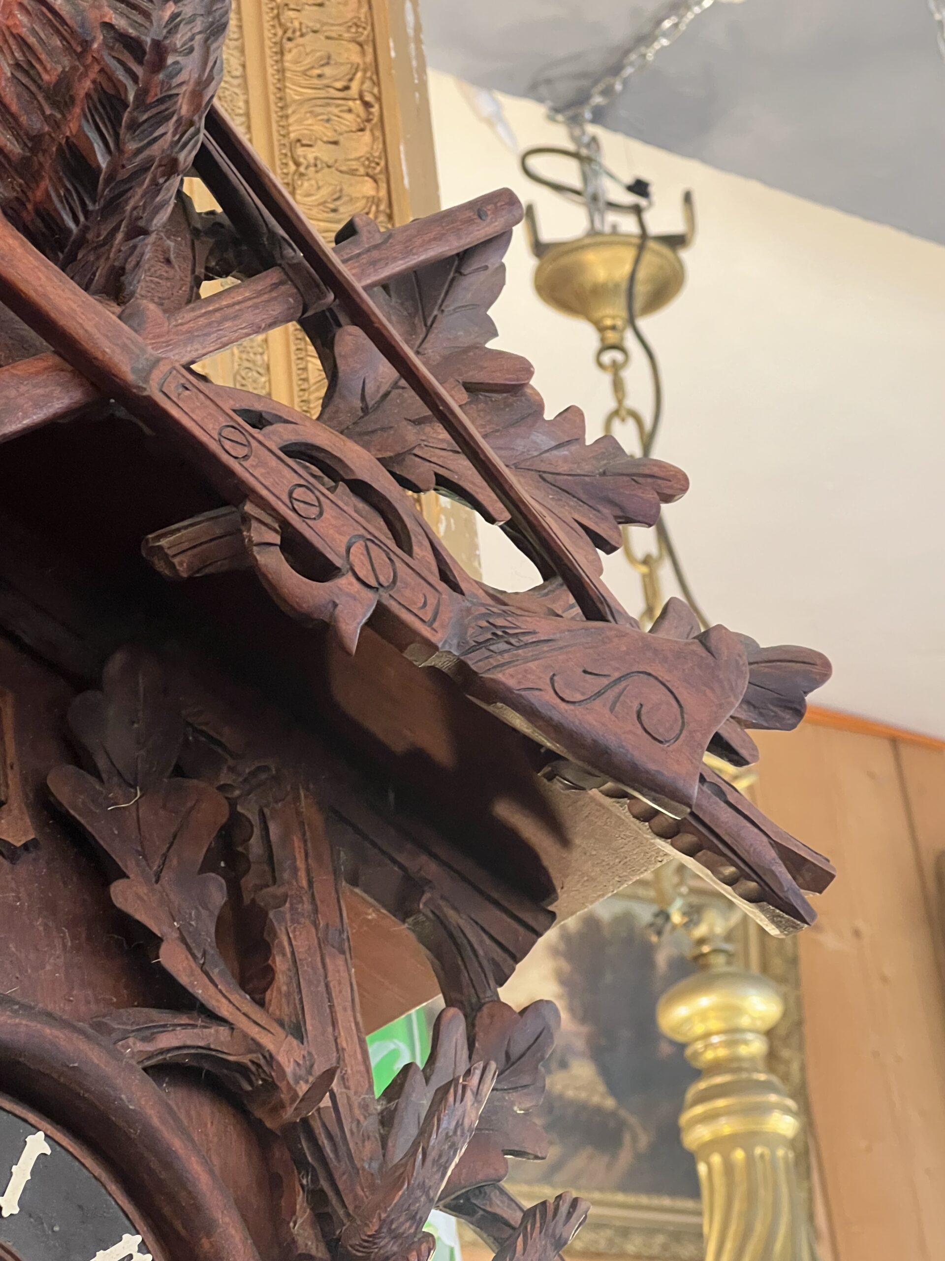 L’horloge coucou de la Forêt Noire est un véritable trésor de l’histoire horlogère. Son mécanisme complexe, minutieusement conçu et fabriqué à la main, reflète l’expertise technique de l’époque. Chaque composant, des engrenages aux poids, est méticuleusement ajusté pour assurer un fonctionnement fluide et précis. Malgré son âge, cette horloge continue de fonctionner parfaitement, témoignant de la qualité durable de son artisanat.