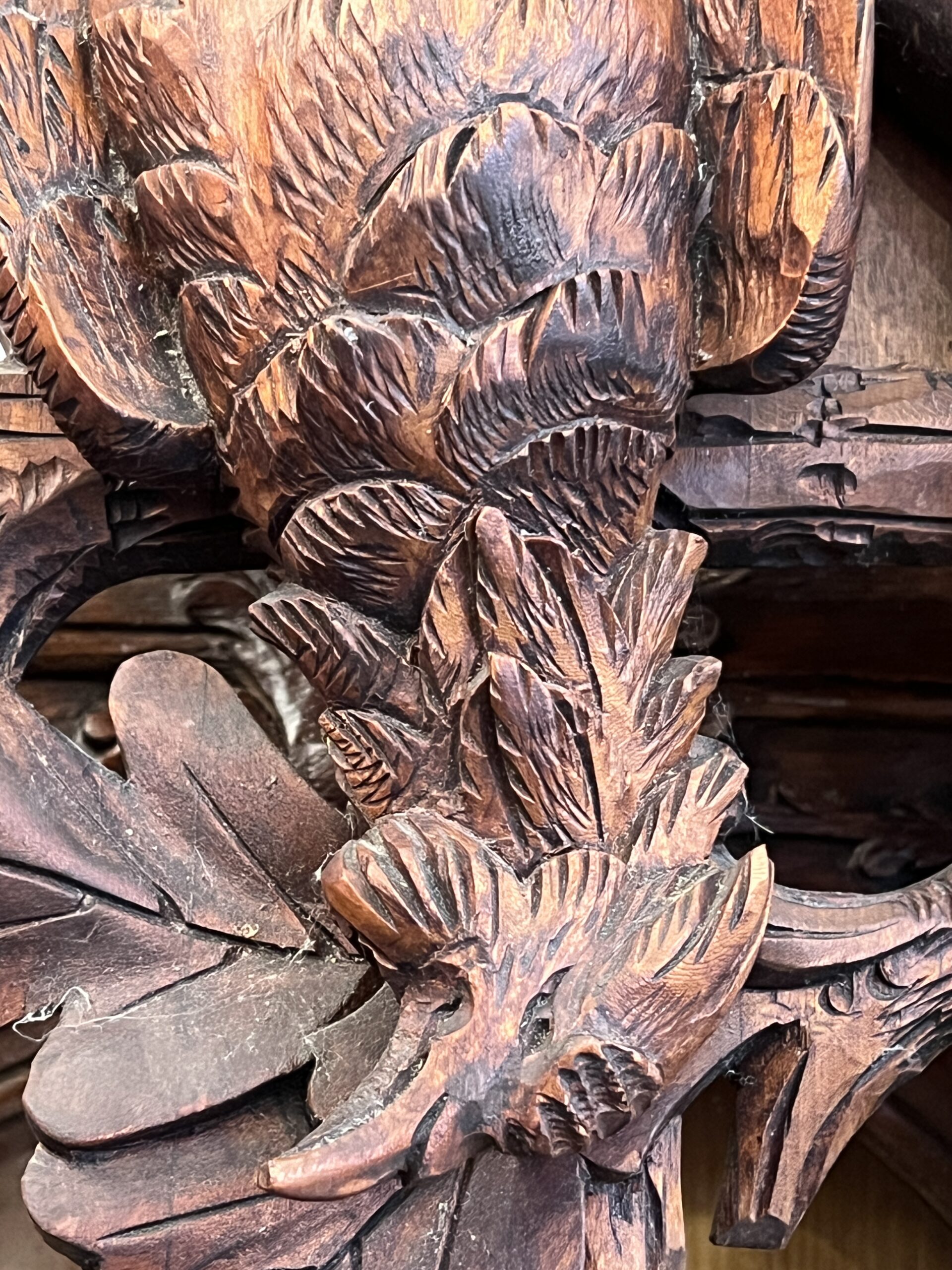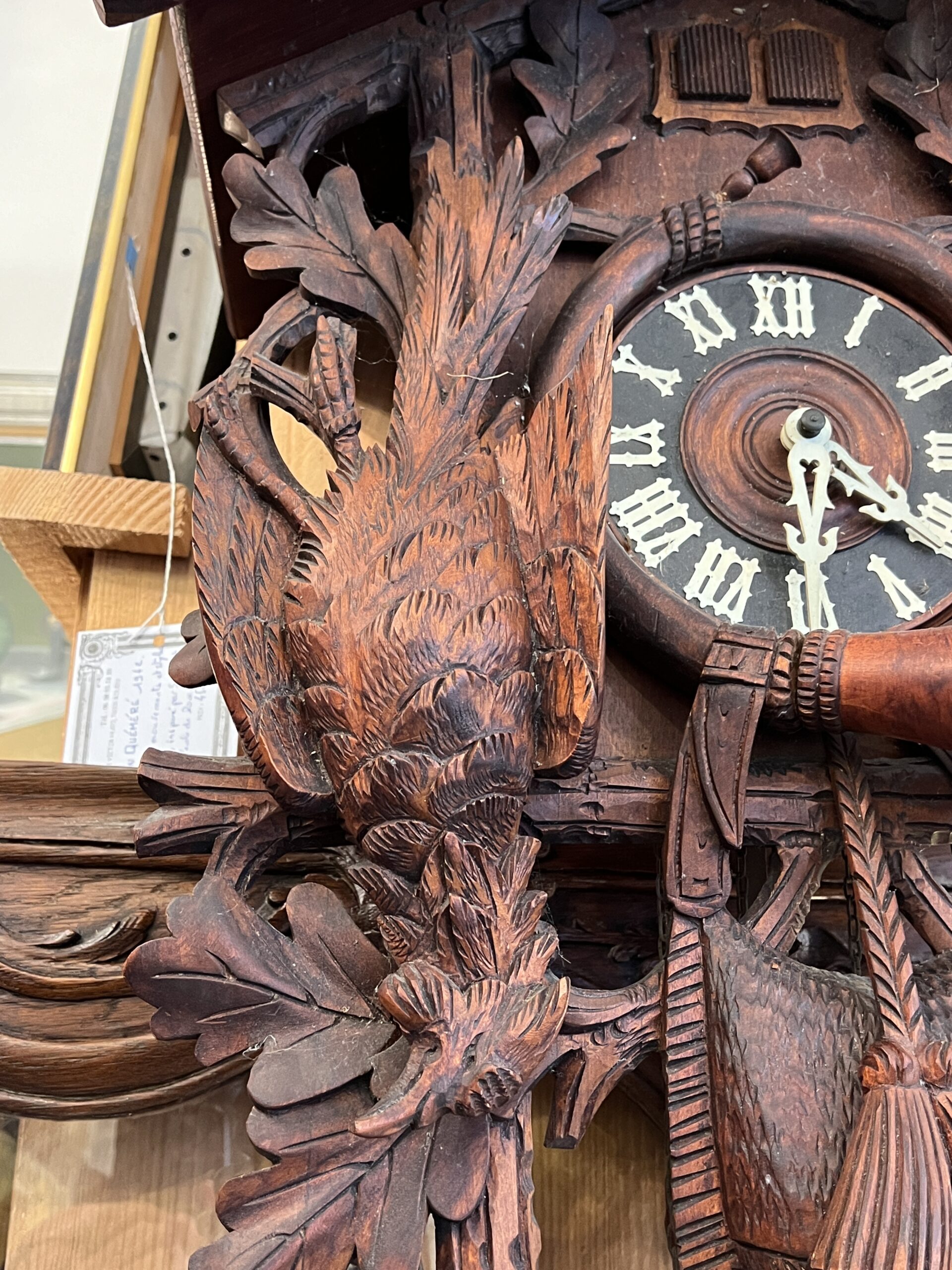 La sculpture qui entoure le coucou est également remarquable. Inspirée par la beauté naturelle de la Forêt Noire, elle représente souvent des motifs floraux, des animaux de la région et des scènes de la vie quotidienne. Chaque détail est finement travaillé, créant une œuvre d’art qui va bien au-delà de sa fonction utilitaire.
