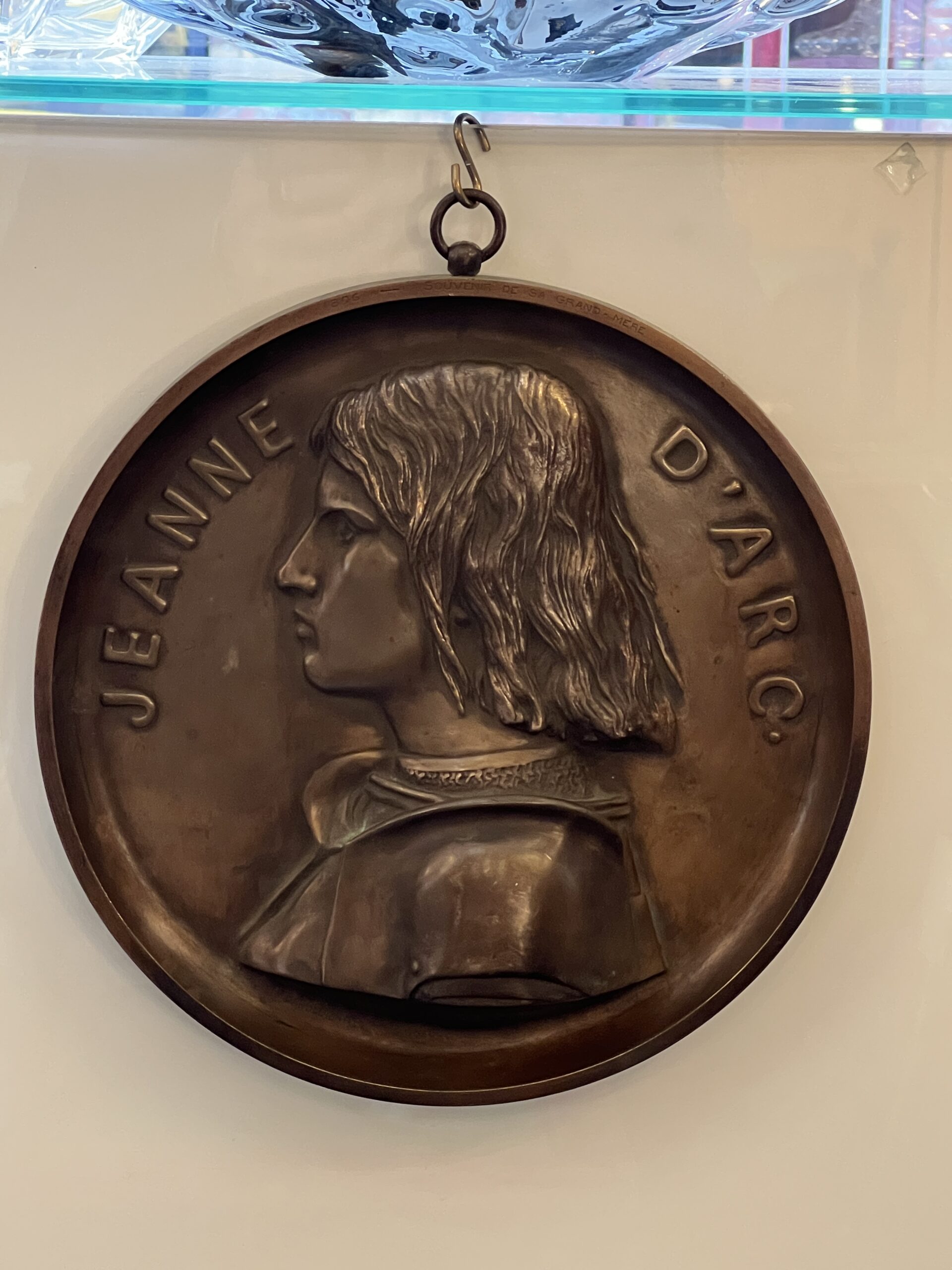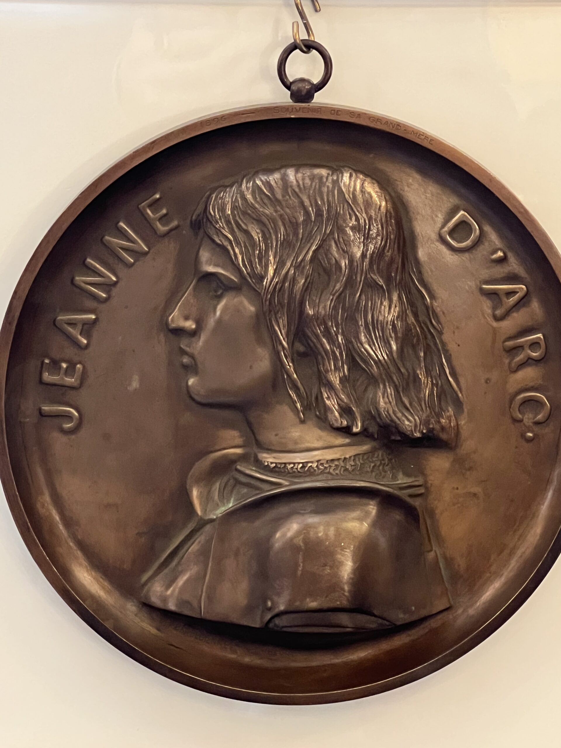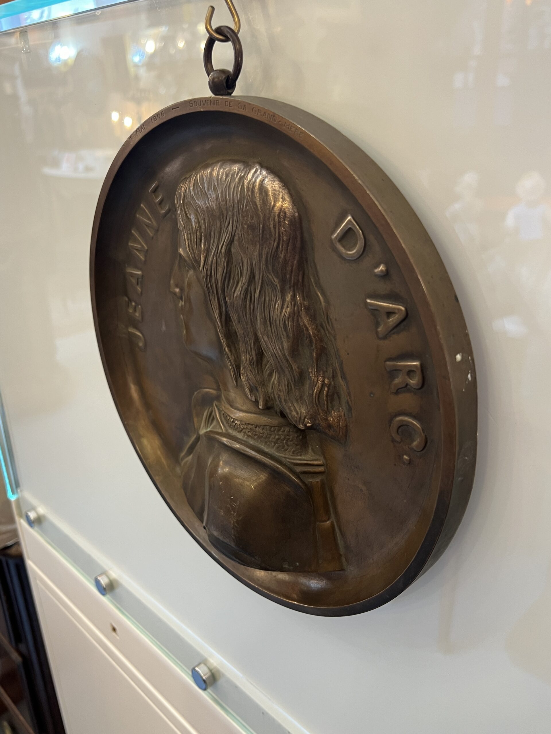 Les dimensions imposantes du médaillon, avec un diamètre de 27,8 cm, en font une pièce impressionnante qui attire le regard et invite à la contemplation. Chaque détail, minutieusement sculpté, contribue à rendre hommage à la figure légendaire de Jeanne d’Arc. Sa posture noble et son regard déterminé reflètent son courage et sa foi inébranlable, faisant de ce médaillon bien plus qu’une simple représentation artistique, mais un symbole puissant de résilience et de dévouement.