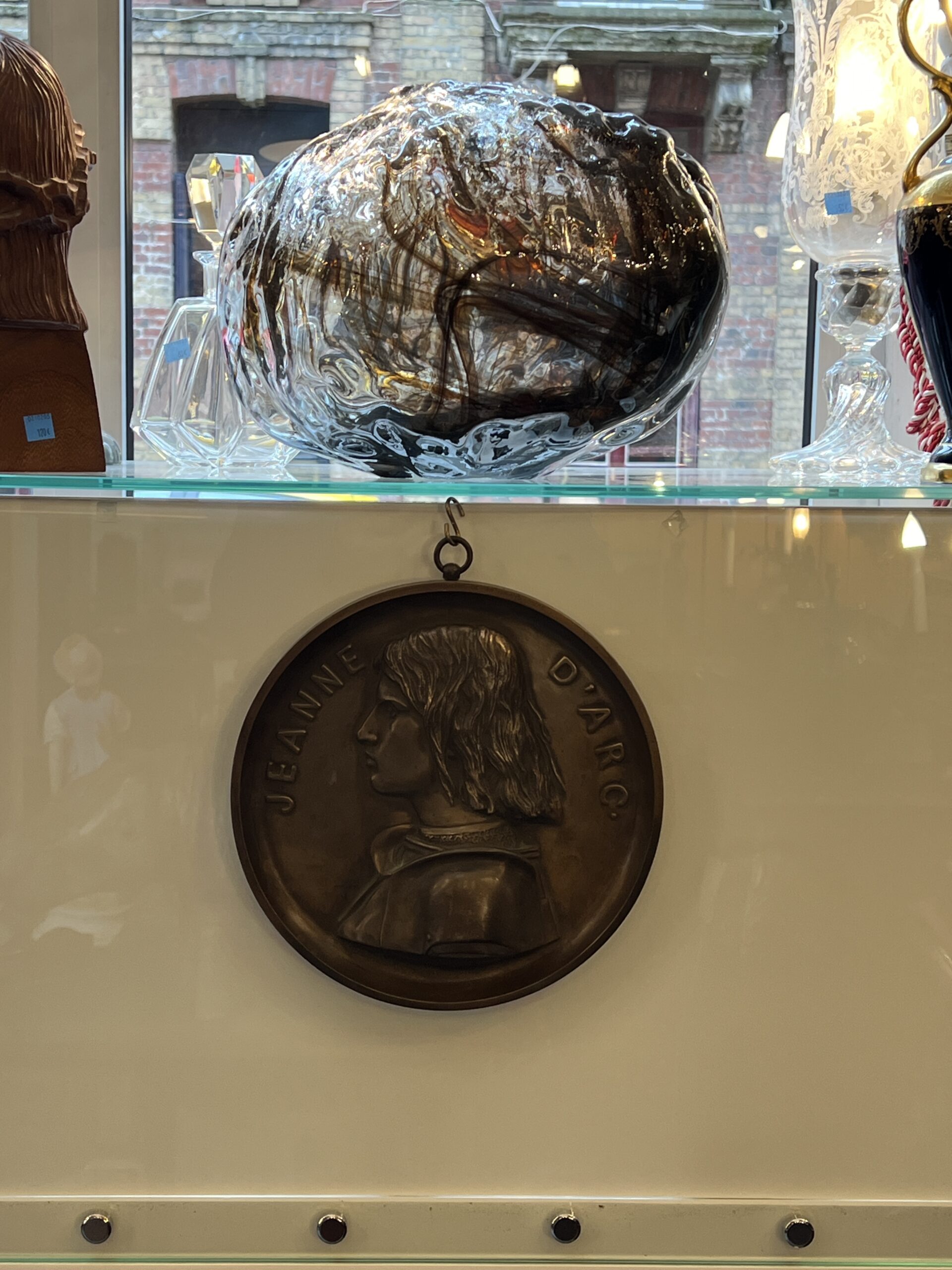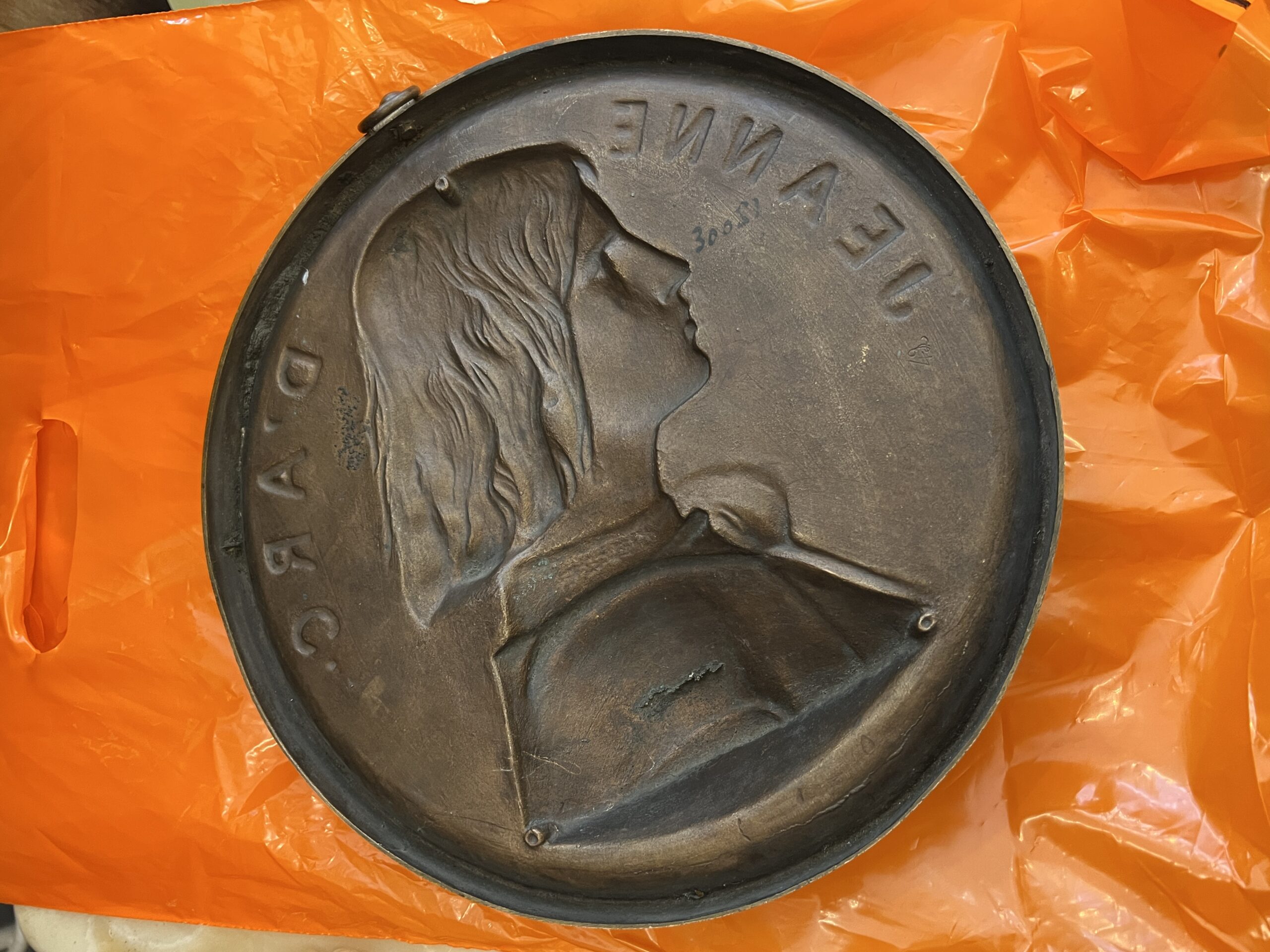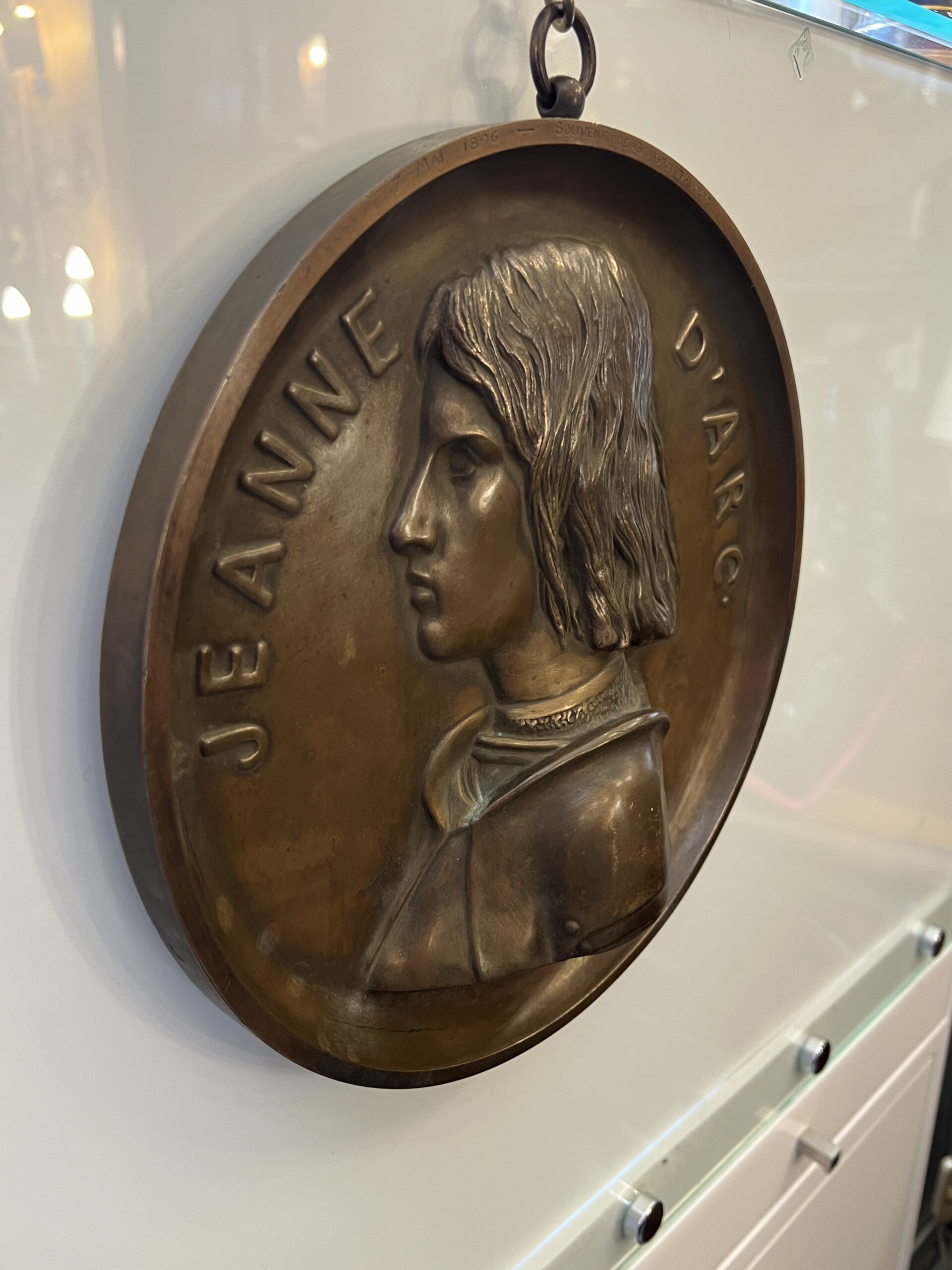 Grand médaillon en bronze représentant Jeanne d’Arc, par Henri CHAPU / Barbedienne