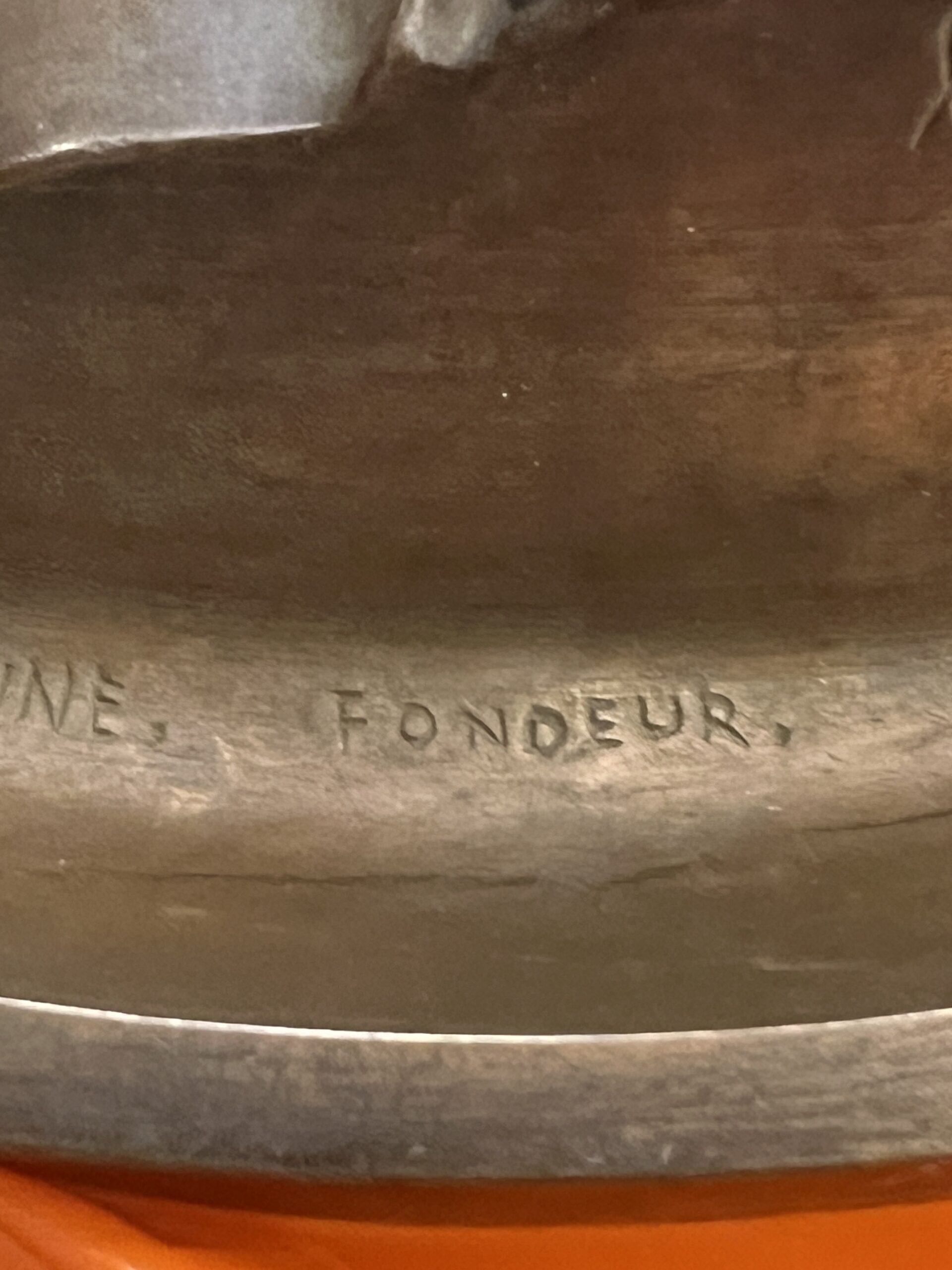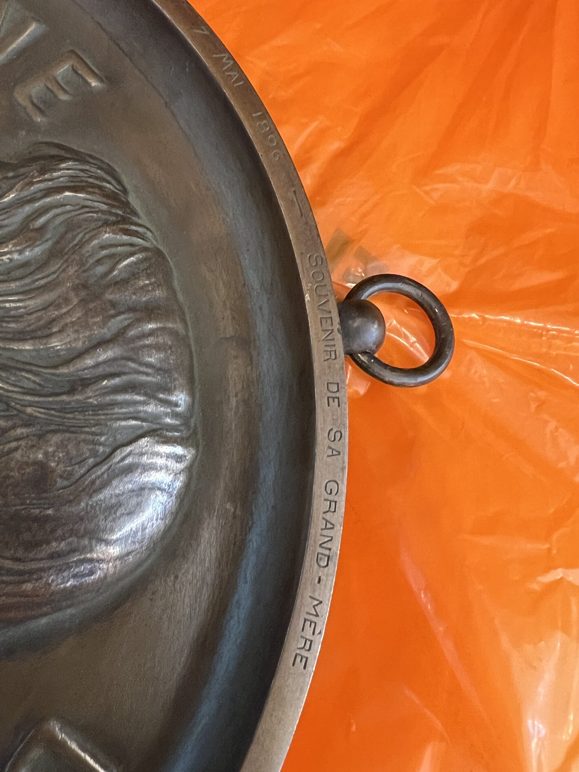 Malgré son âge, ce médaillon est en excellent état, témoignant de la qualité de son artisanat et de la valeur accordée à son entretien au fil des ans. La signature discrète de l’artiste sur la troncature de l’épaule ajoute une touche d’authenticité et de prestige à cette pièce remarquable.