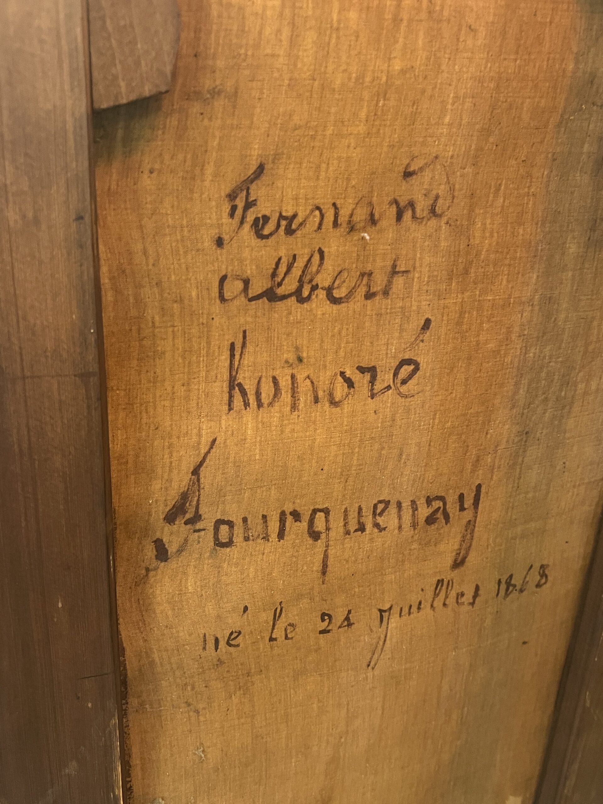 L’inscription complète – « Ferdinand Albert Honoré Fourquenay, né le 24 juillet 1868 » – témoigne du soin porté à identifier le jeune modèle.
