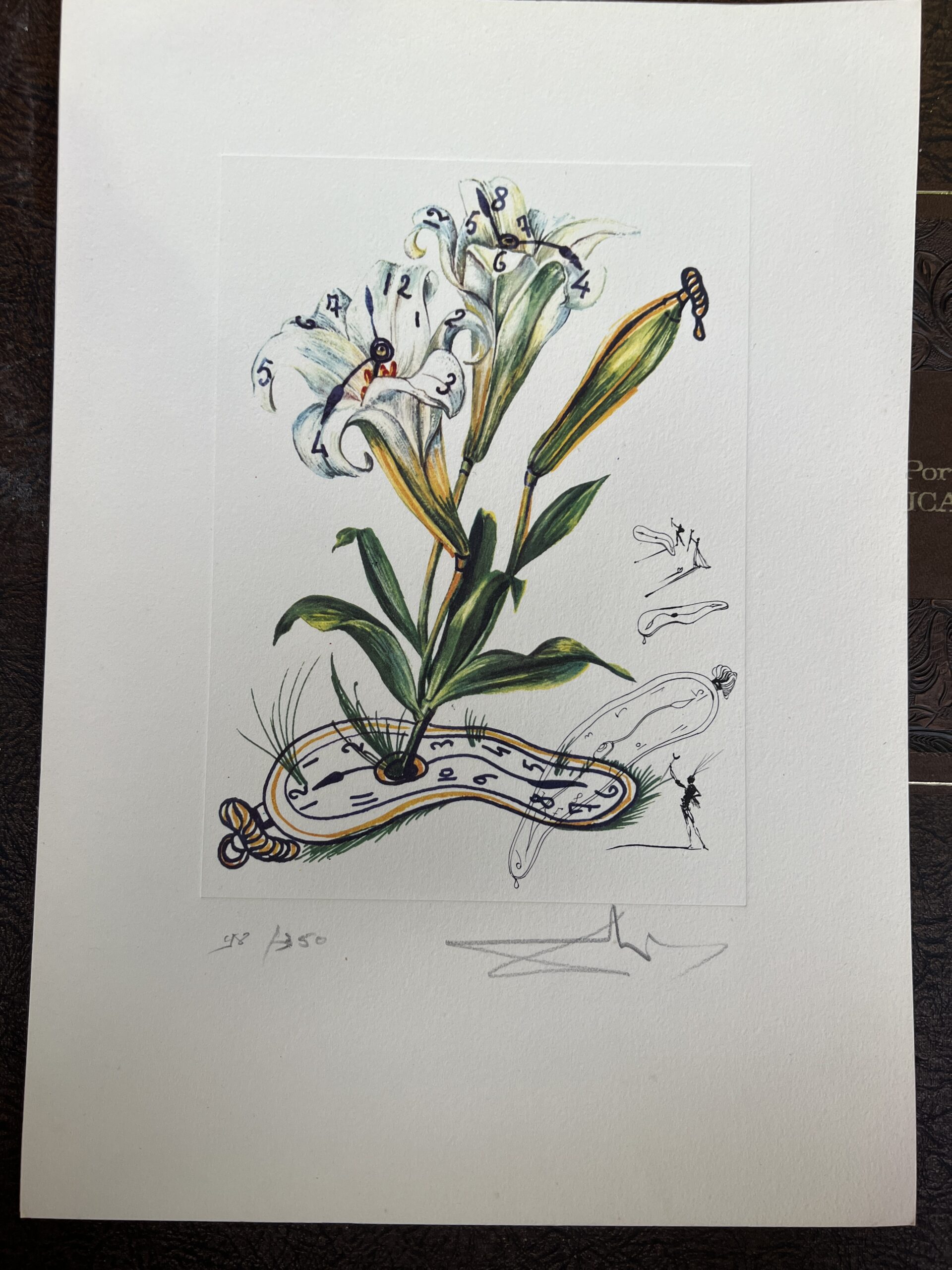 Gravure couleur d’après DALI, fleur et montre, signé et numéroté
