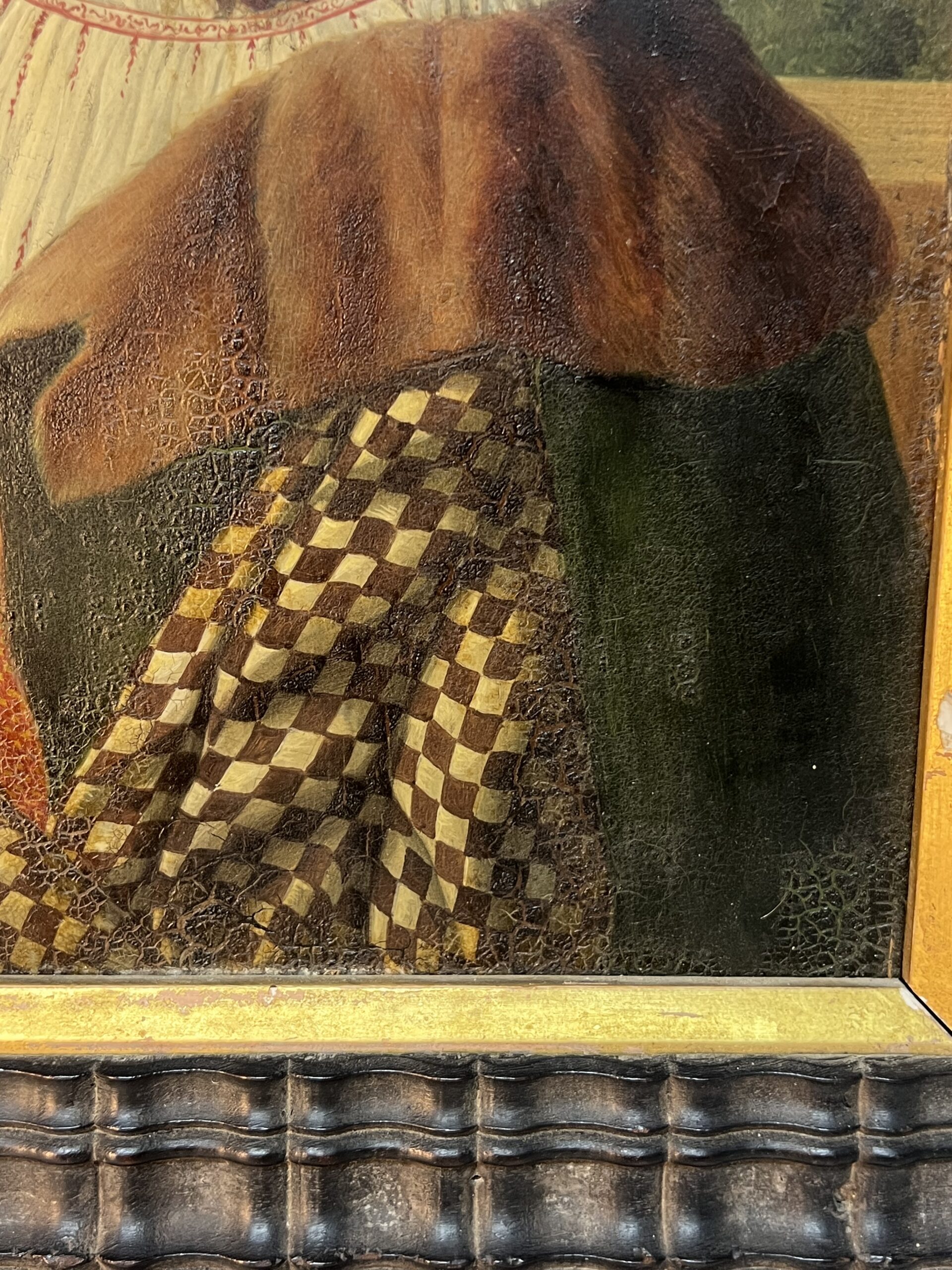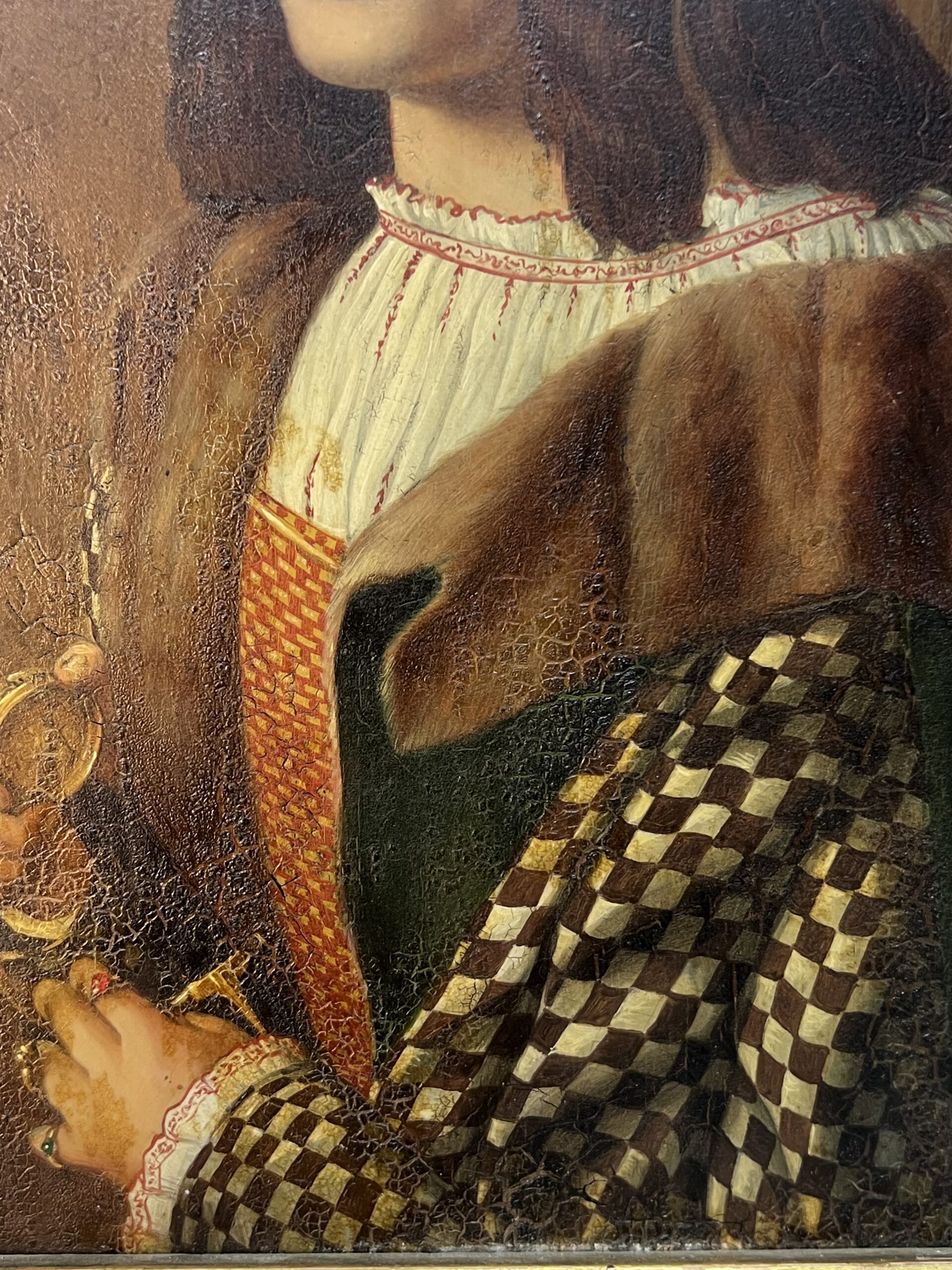 L’artiste anonyme du XIXe siècle a manifestement étudié les techniques et le style de Quentin Metsys, un peintre flamand de renom de la Renaissance. Metsys était célèbre pour ses portraits précis et détaillés, ainsi que pour sa capacité à capturer les expressions et les personnalités de ses sujets. Cette influence est évidente dans la représentation du gentilhomme, où chaque détail est soigneusement exécuté pour transmettre la dignité et la puissance du modèle.