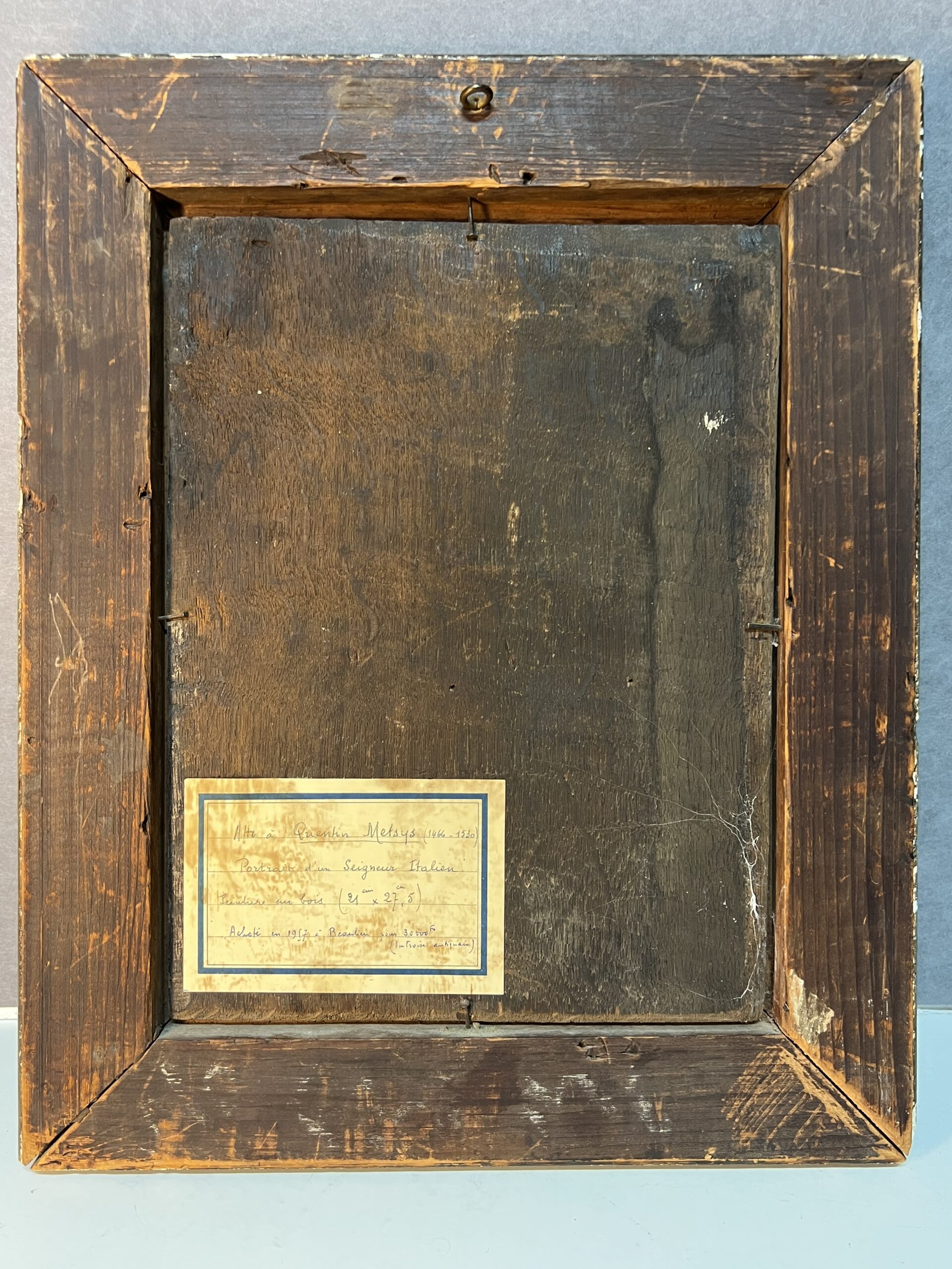 En conclusion, “Huile sur panneau XIXe siècle, Gentilhomme, suiveur de Quentin Metsys” est une œuvre qui combine habilement l’imitation artistique avec l’expression personnelle. À travers cette peinture, l’artiste du XIXe siècle rend hommage à l’héritage de Quentin Metsys tout en insufflant à l’œuvre sa propre vision du monde en mutation du XIXe siècle.