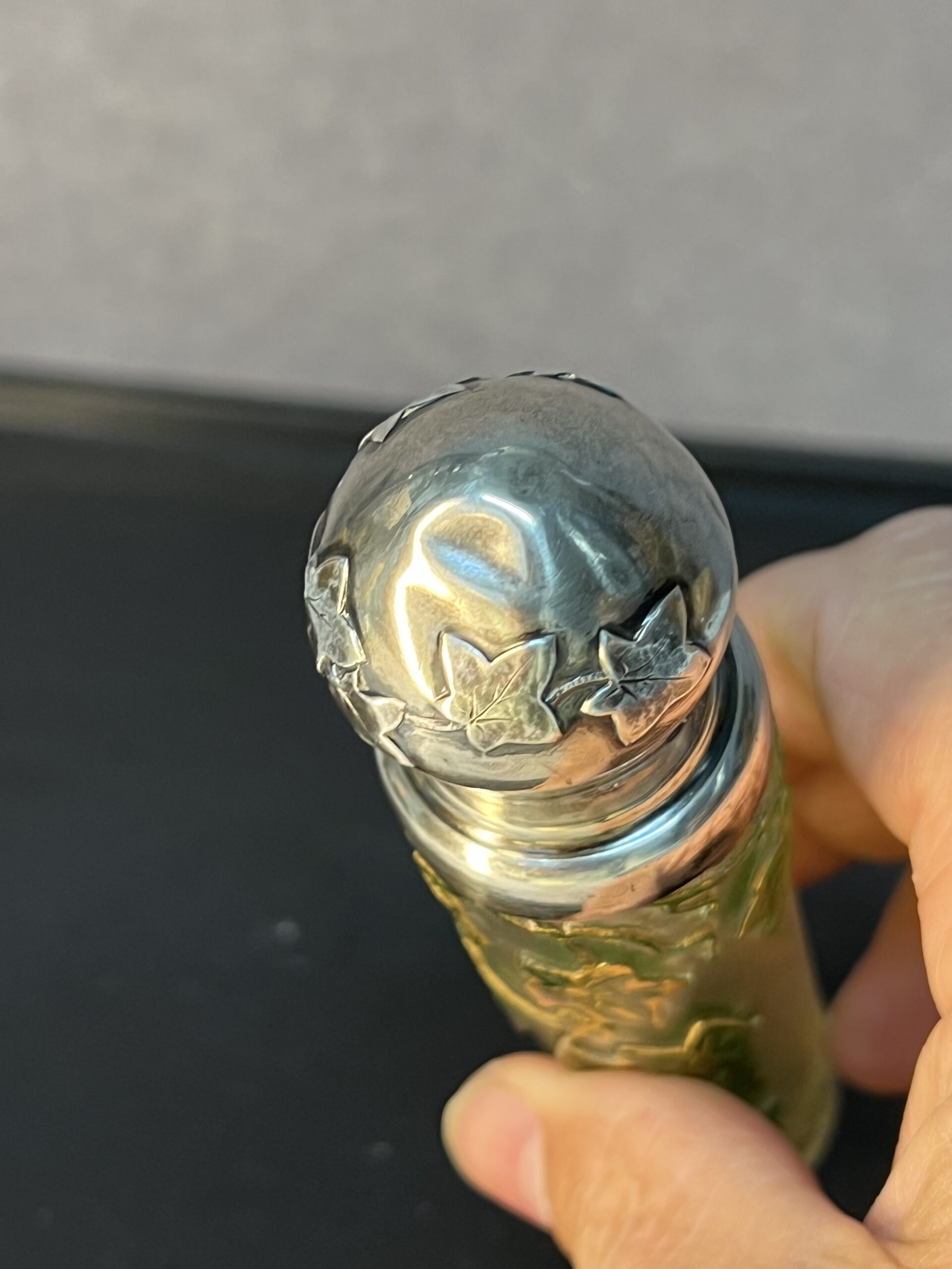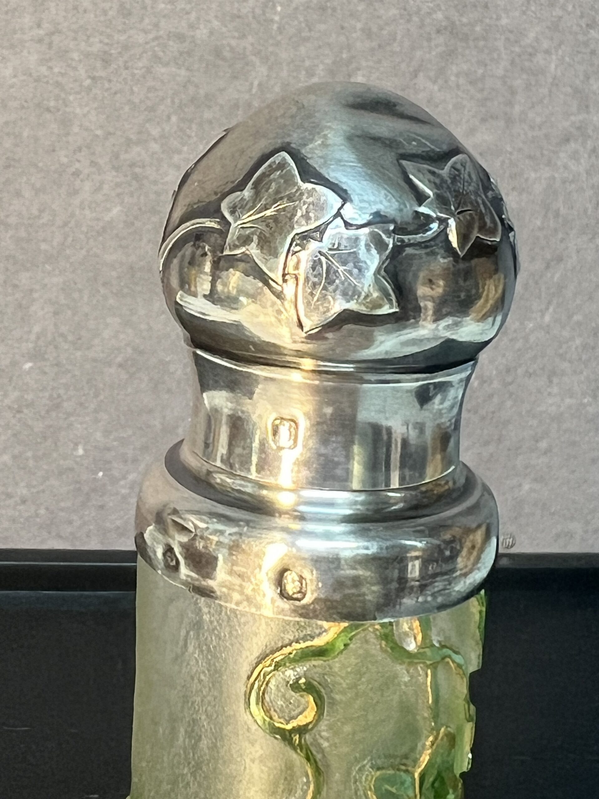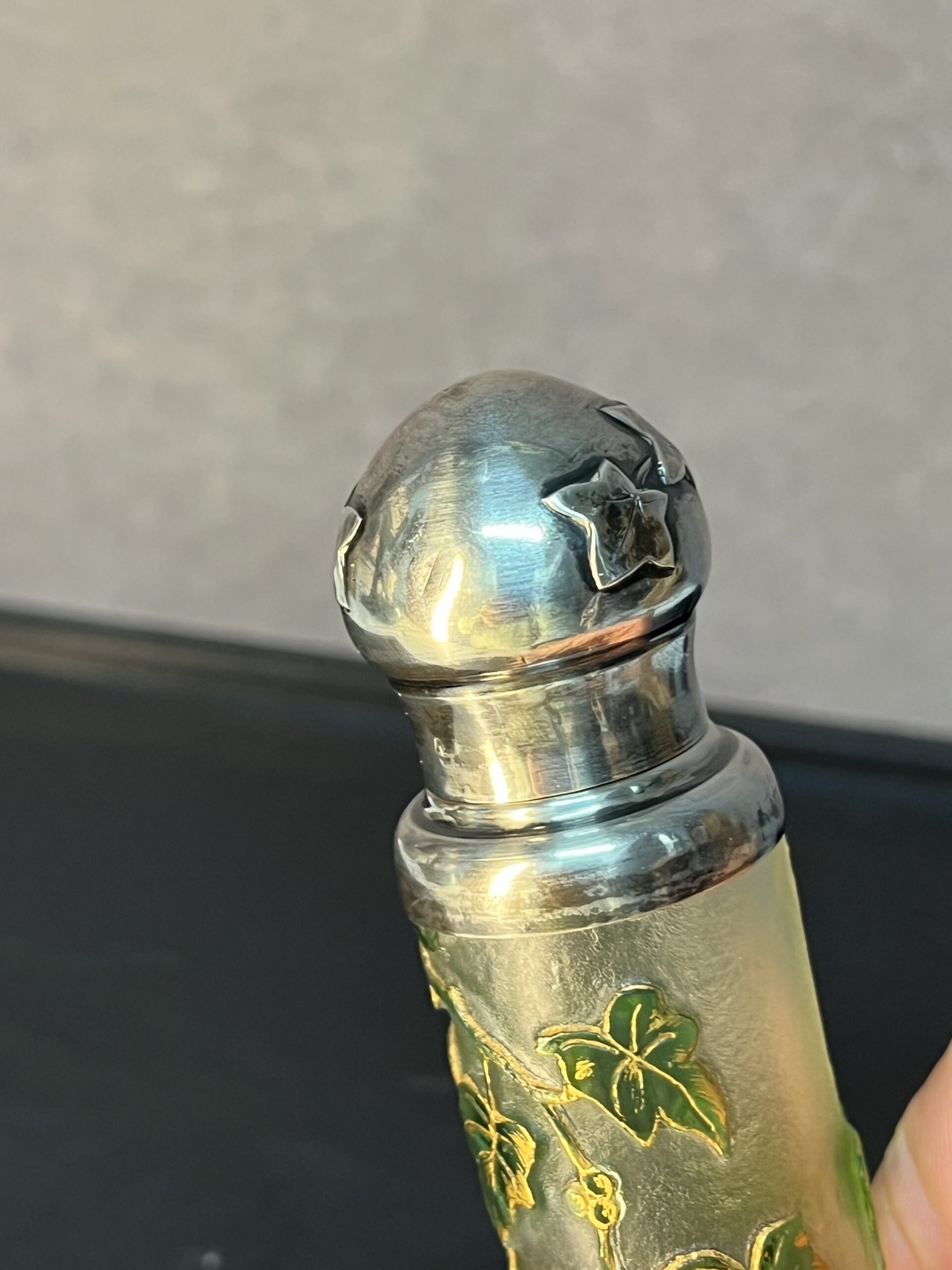 En résumé, le flacon à parfum en pâte de verre de Daum, avec son éclatante couleur verte et son décor de feuillages, est bien plus qu’un simple objet de beauté. C’est une œuvre d’art emblématique, un symbole de l’excellence artisanale et un témoignage de l’héritage riche et prestigieux de la maison Daum et de la ville de Nancy.