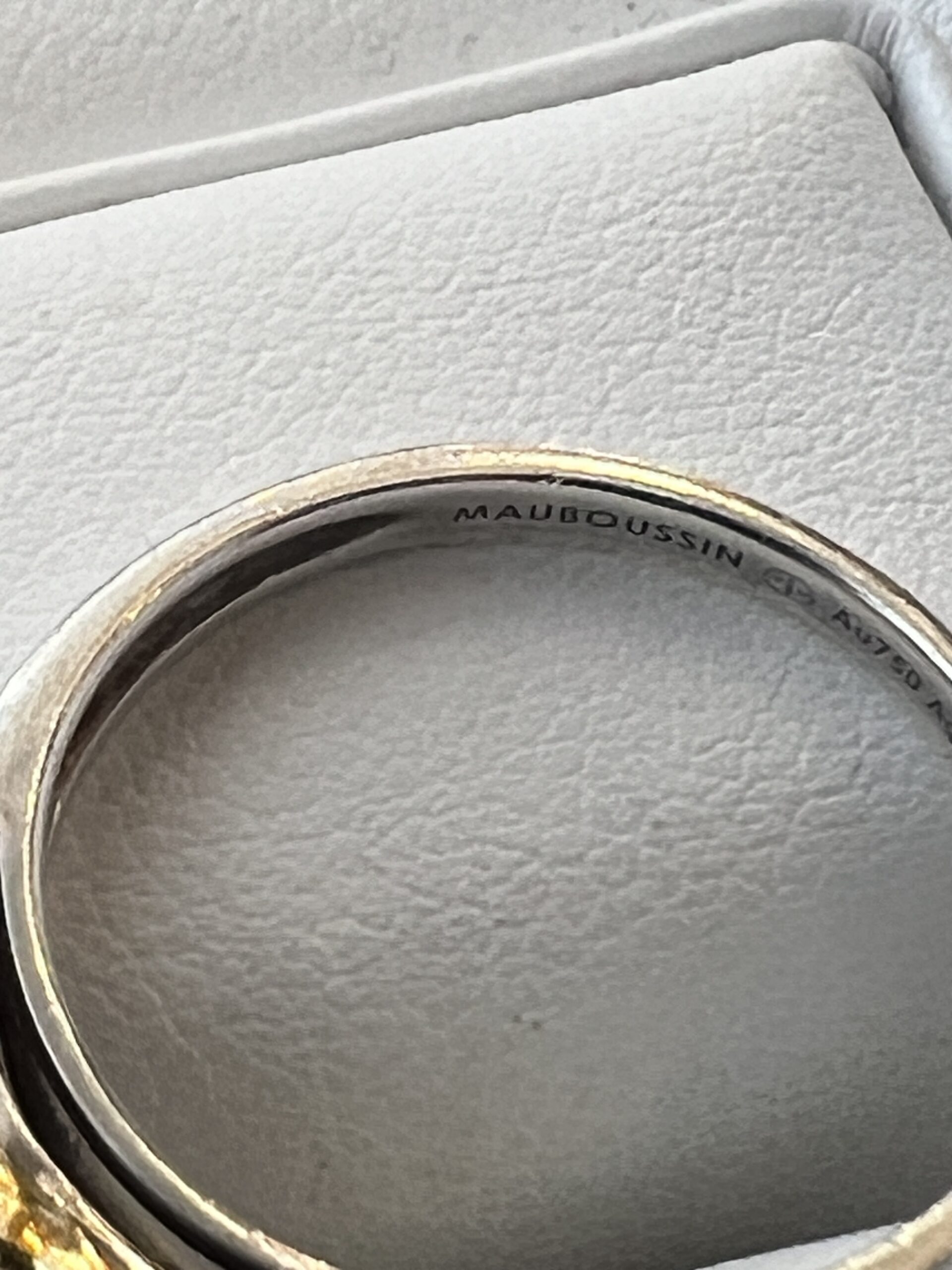 Jolie bague de la maison Mauboussin en argent, or et diamant