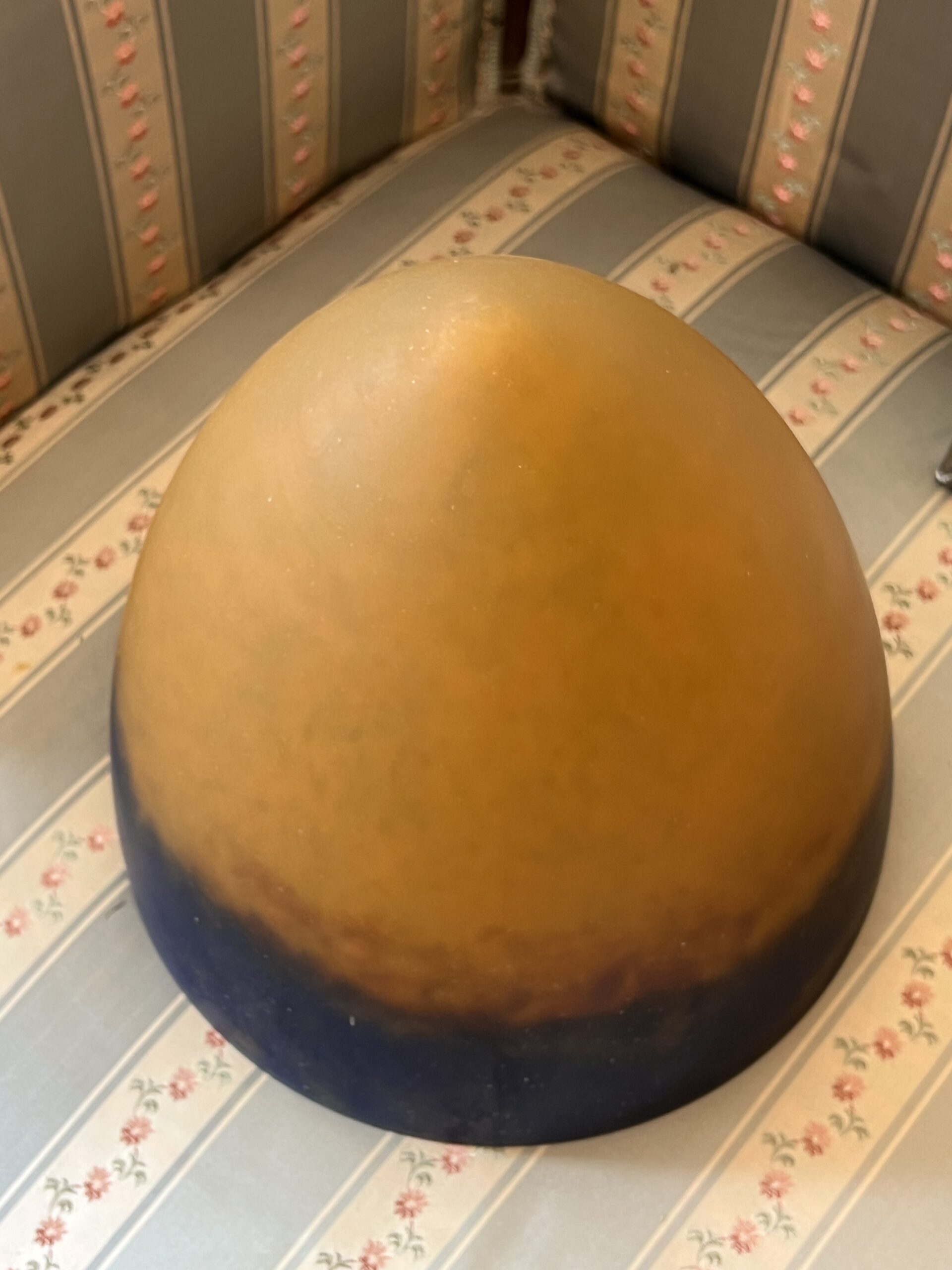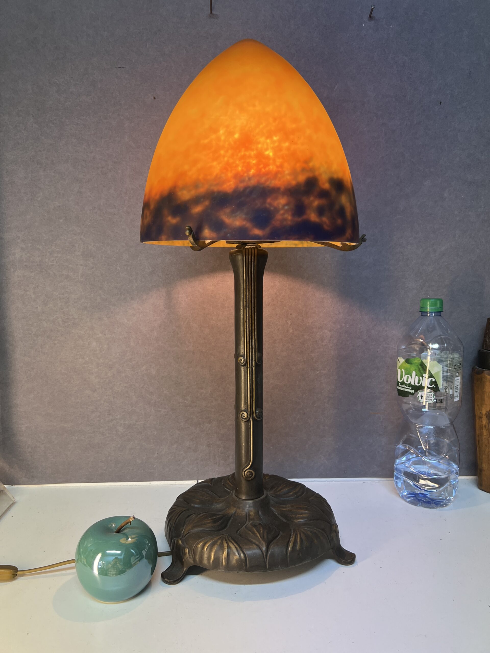 En conclusion, la lampe à poser de type champignon avec son piétement en bronze à patine brune et son abat-jour en verre nuancé de orange et de bleu incarne parfaitement l’alliance entre l’art et la fonctionnalité. C’est une pièce qui ne manquera pas de susciter l’admiration et d’illuminer votre espace de vie avec style et élégance.