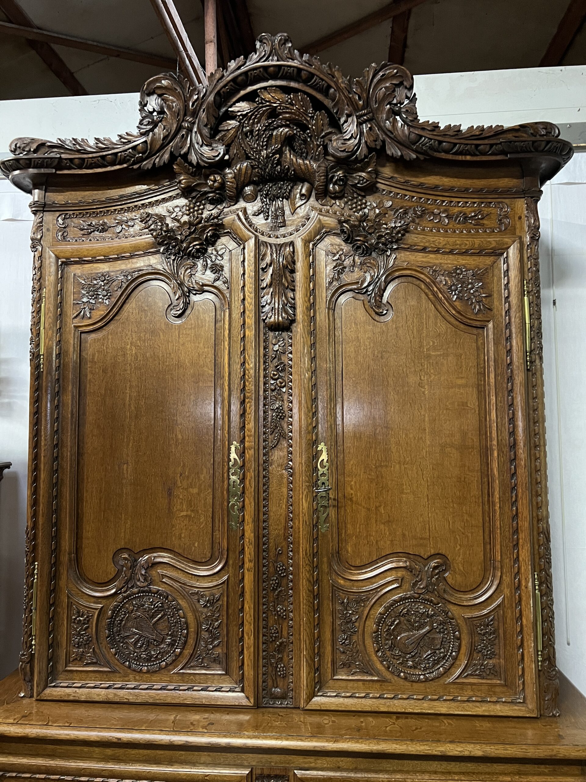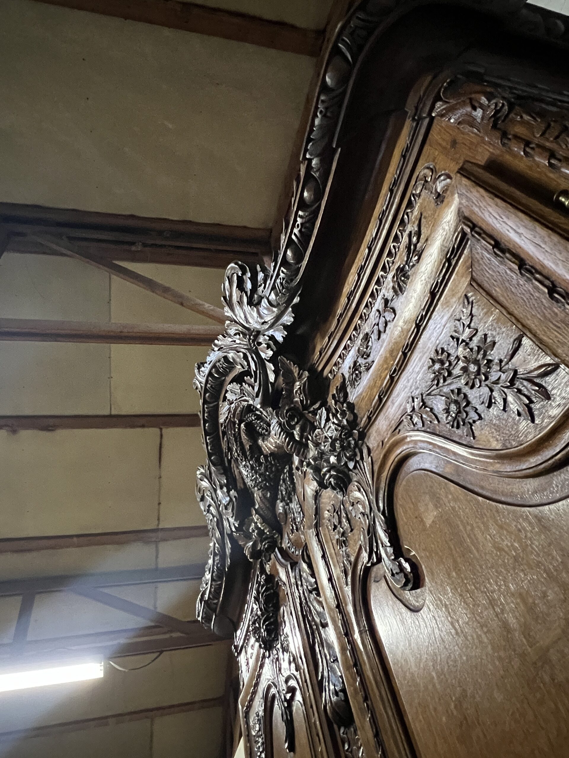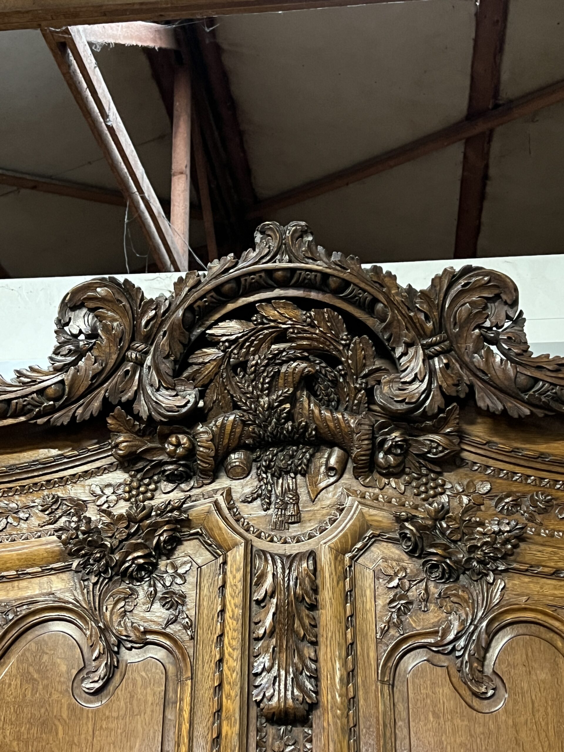 L’armoire de mariage de Fécamp, en Normandie, est bien plus qu’un simple meuble en chêne sculpté. C’est une pièce d’histoire, de prestige et de splendeur qui incarne toute l’élégance et le raffinement de son époque. Construite avec du chêne blond, elle se distingue par sa magnificence et ses détails exquis, dont les trois roses sculptées qui lui confèrent une aura particulière.