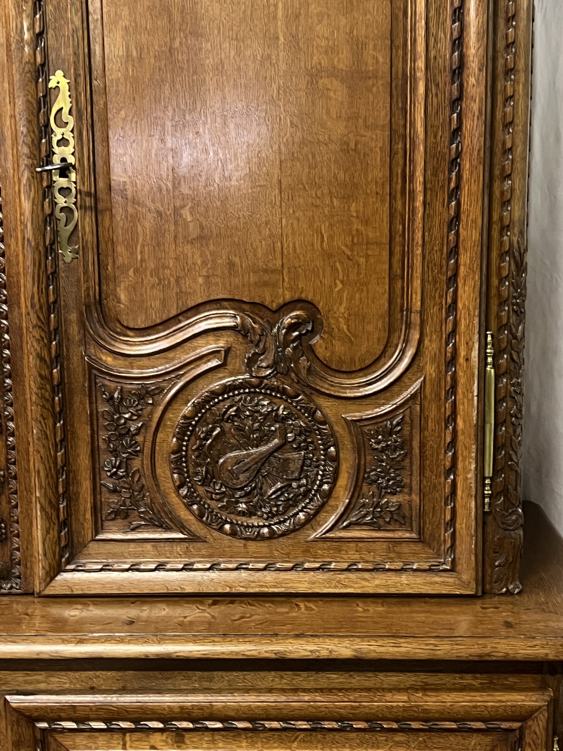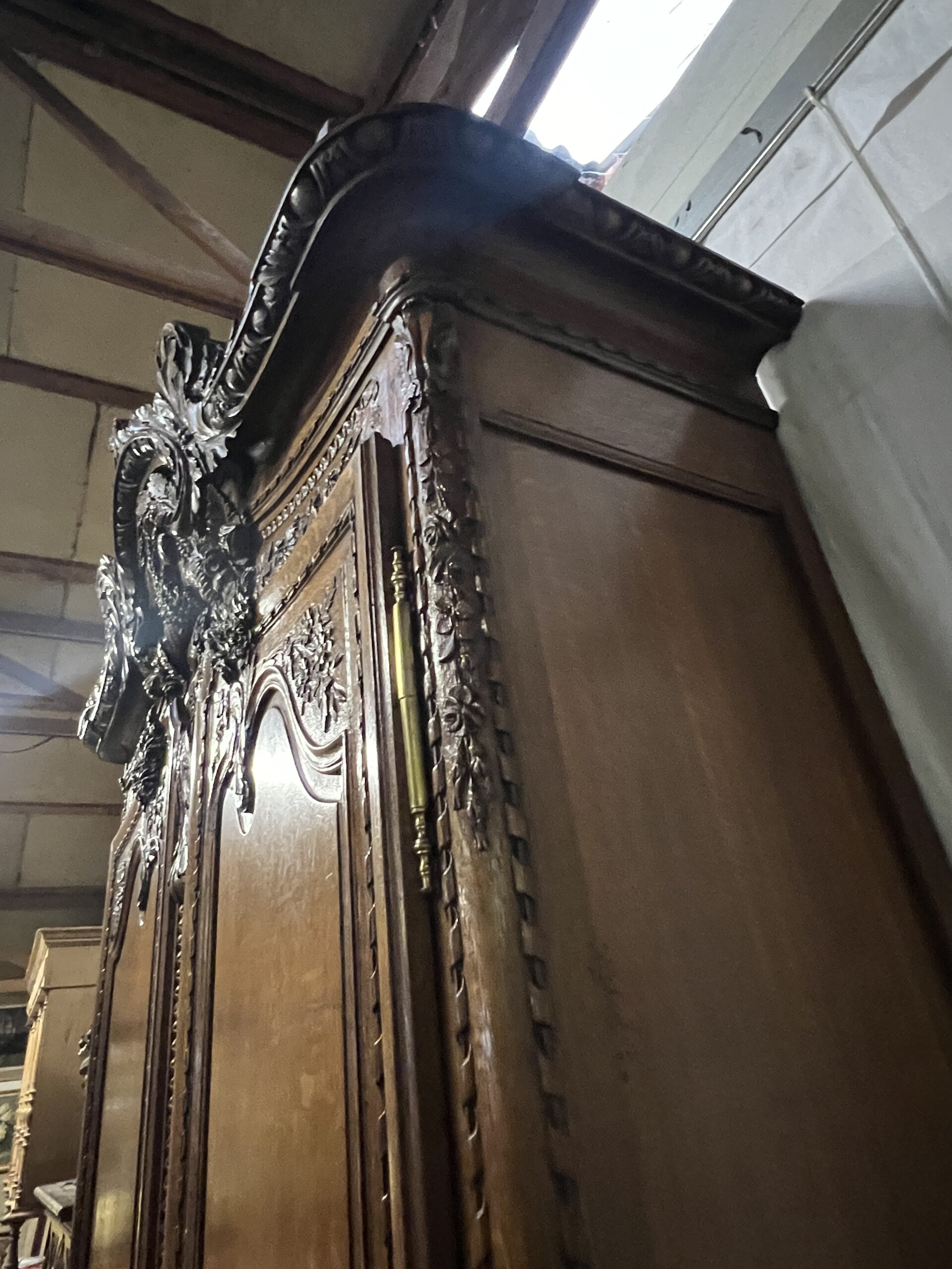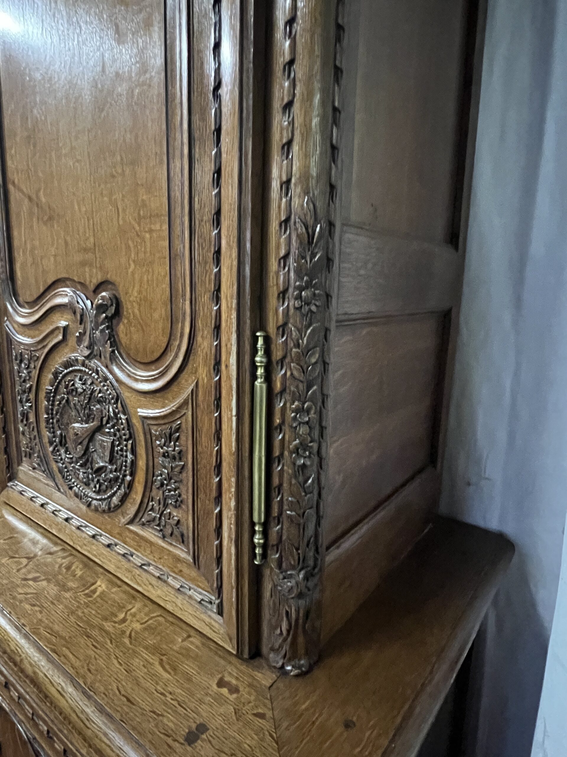 Chaque détail de cette armoire raconte une histoire, témoigne d’une époque révolue où le savoir-faire artisanal était célébré et où le mobilier était bien plus qu’une simple commodité. Elle est le reflet d’une époque de faste et d’opulence, mais aussi le symbole intemporel d’une esthétique exquise et d’un art de vivre élégant. En admirant cette armoire, on plonge dans l’âme même de la Normandie, terre de traditions et de raffinement, où le passé et le présent se rejoignent dans un éclat de beauté immuable.