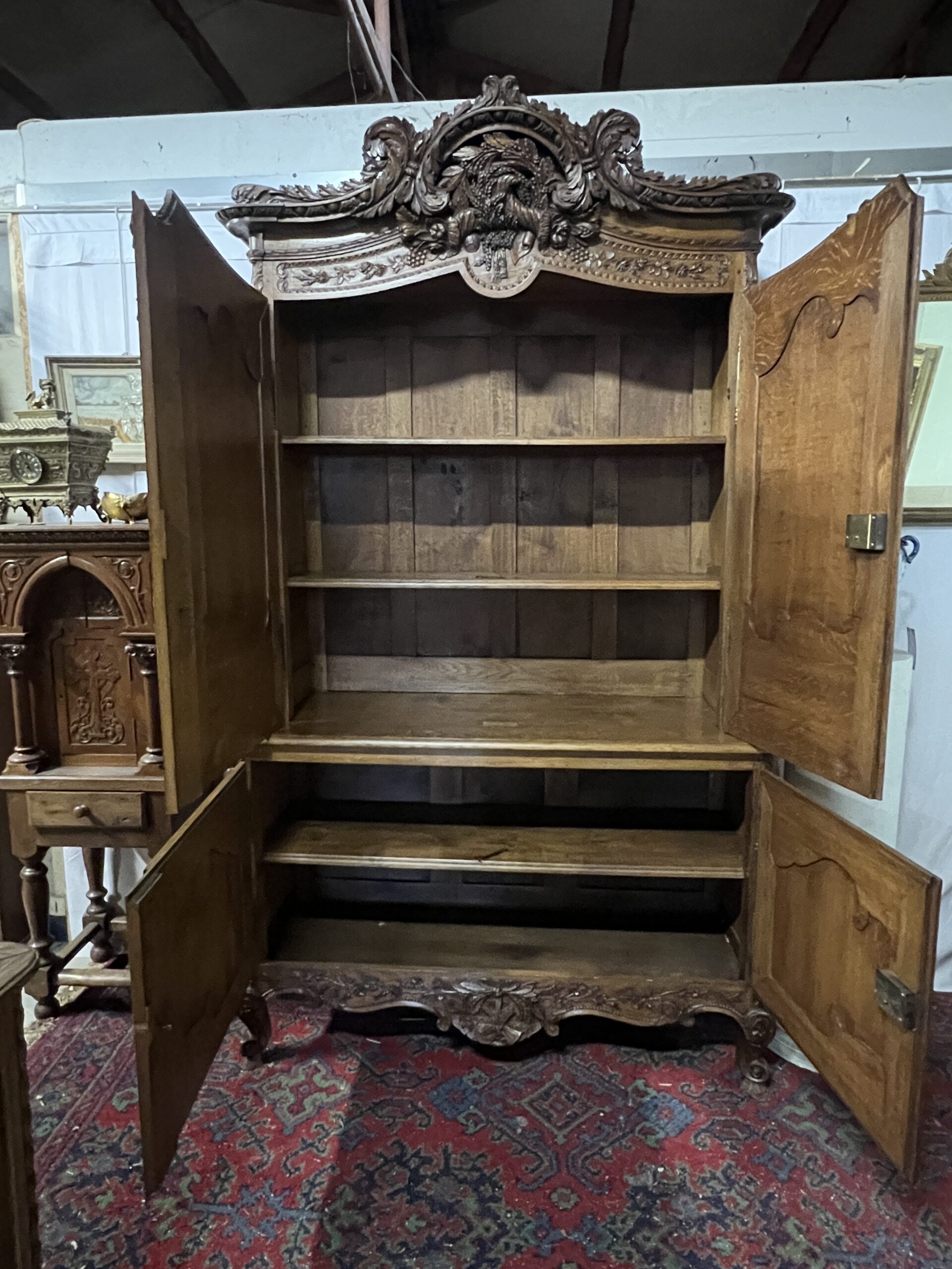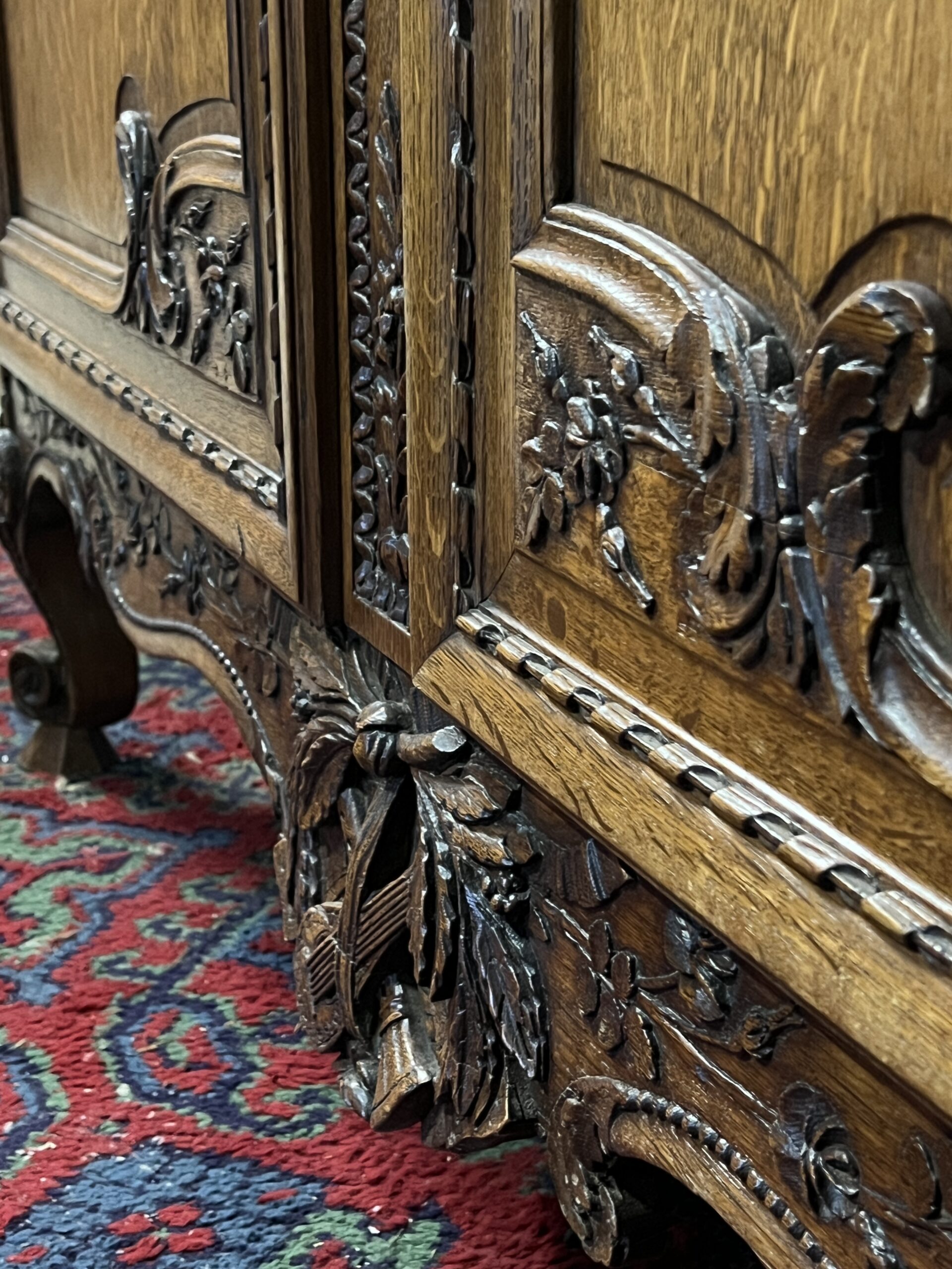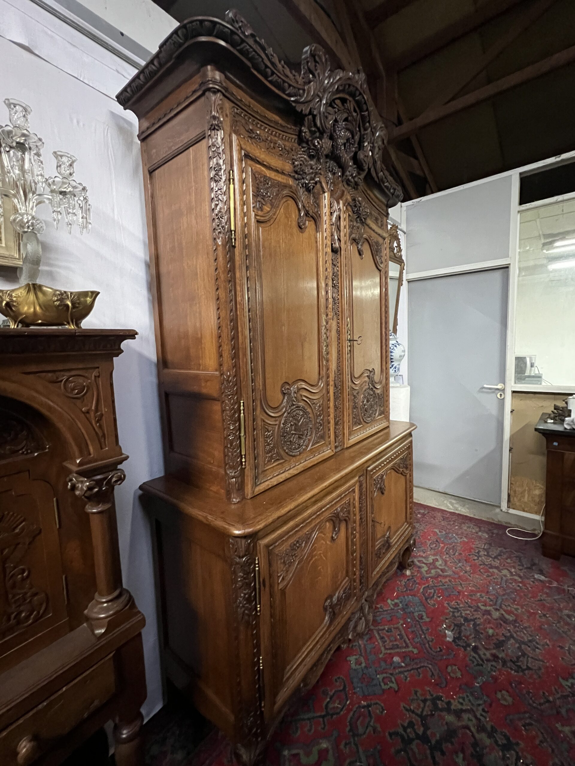 Chaque détail de cette armoire raconte une histoire, témoigne d’une époque révolue où le savoir-faire artisanal était célébré et où le mobilier était bien plus qu’une simple commodité. Elle est le reflet d’une époque de faste et d’opulence, mais aussi le symbole intemporel d’une esthétique exquise et d’un art de vivre élégant. En admirant cette armoire, on plonge dans l’âme même de la Normandie, terre de traditions et de raffinement, où le passé et le présent se rejoignent dans un éclat de beauté immuable.