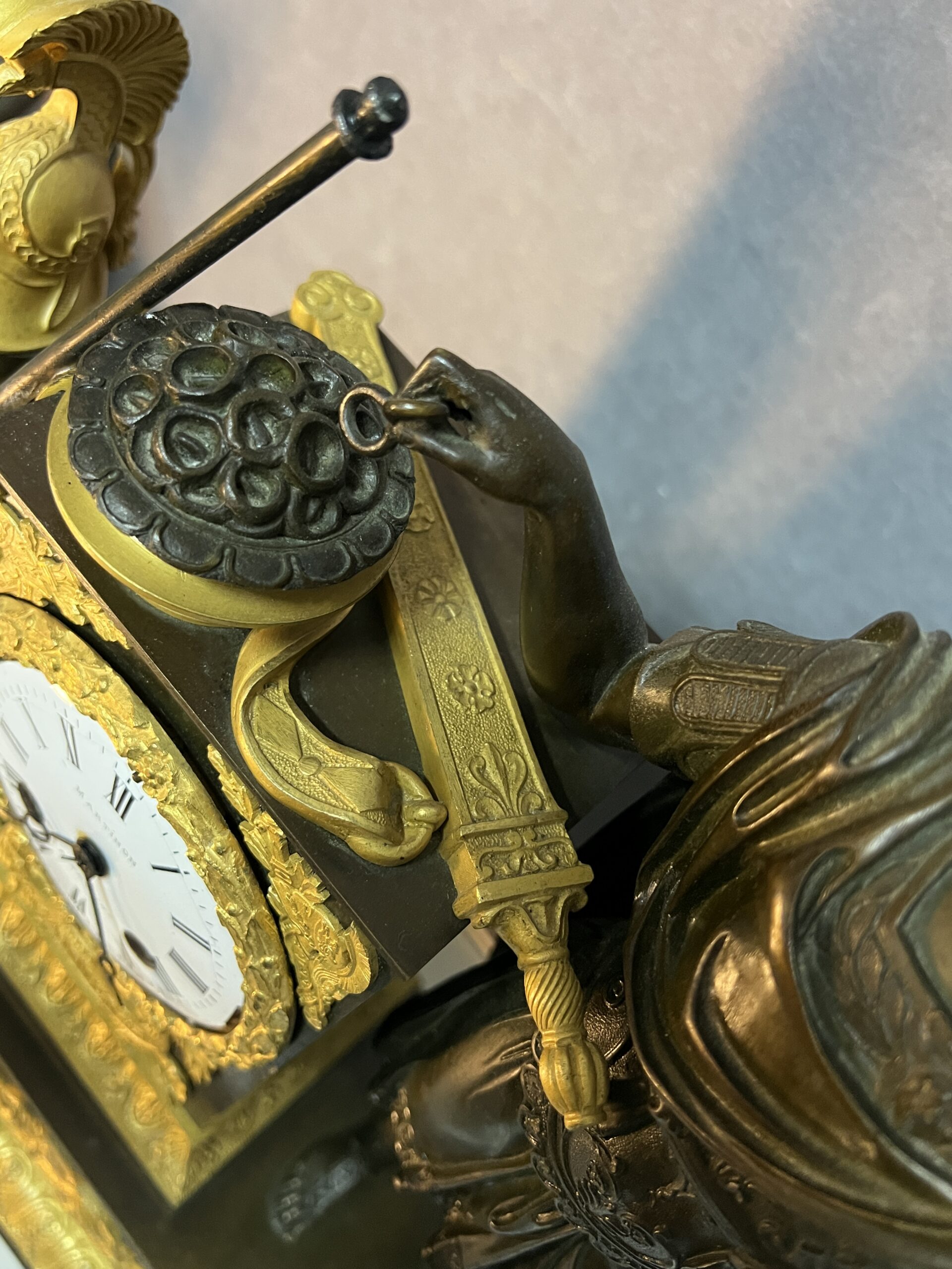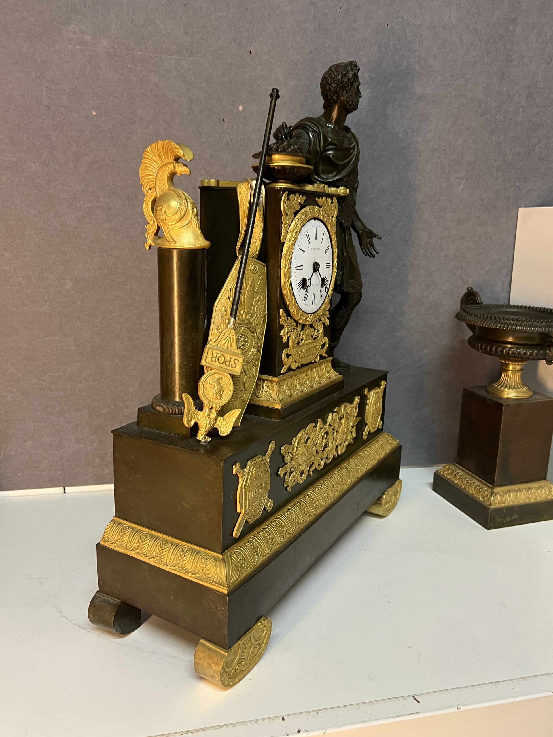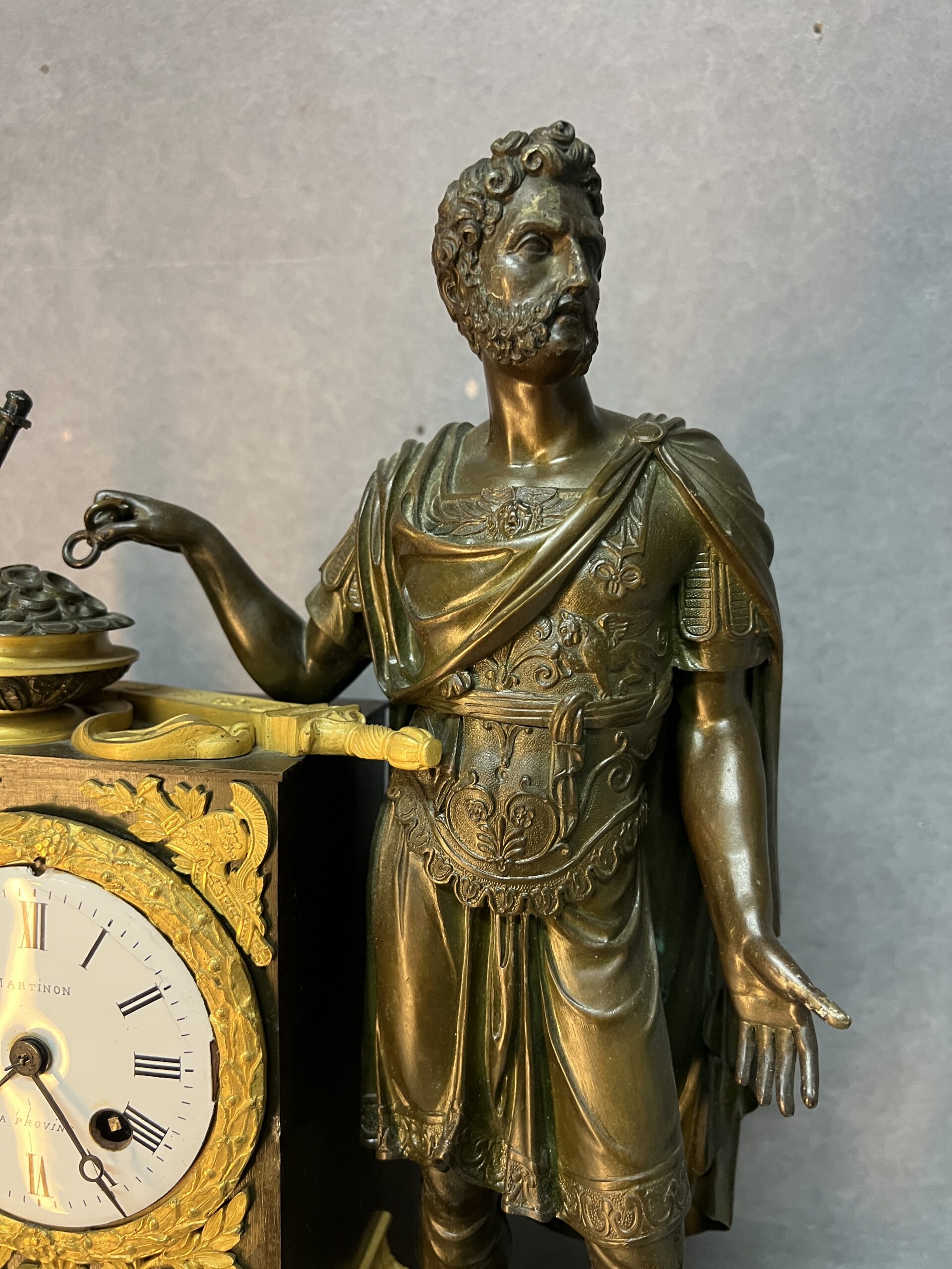 Ces éléments rappellent les grands conflits de l’Antiquité et apportent une dimension historique et narrative à la pendule.