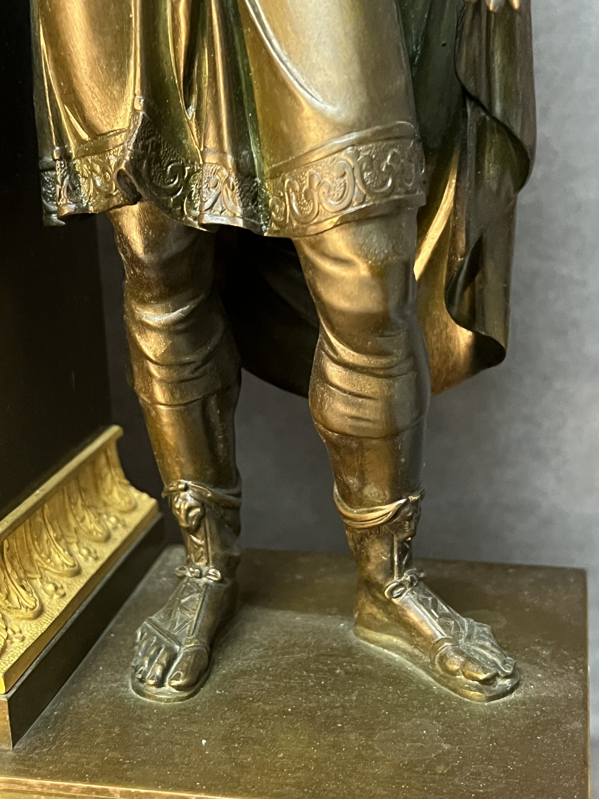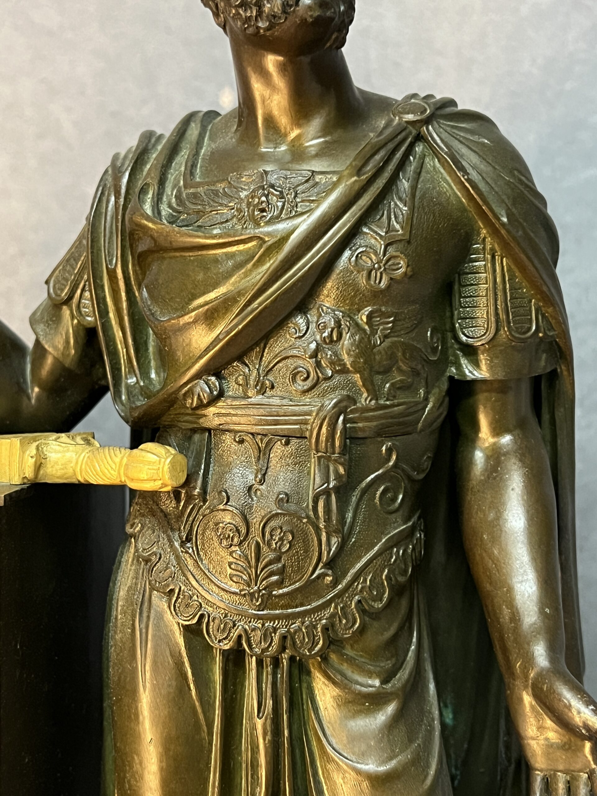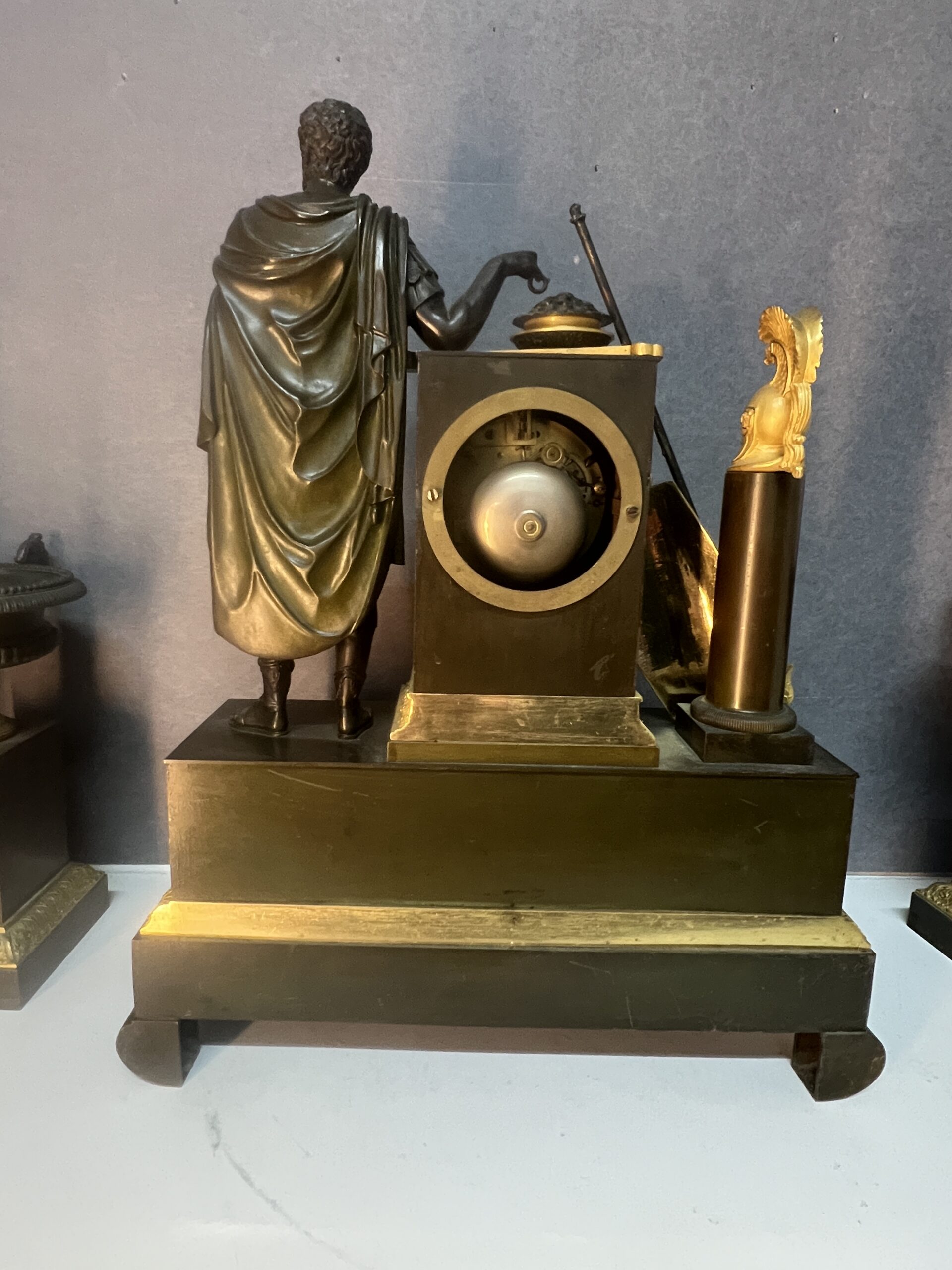 Ces éléments rappellent les grands conflits de l’Antiquité et apportent une dimension historique et narrative à la pendule.