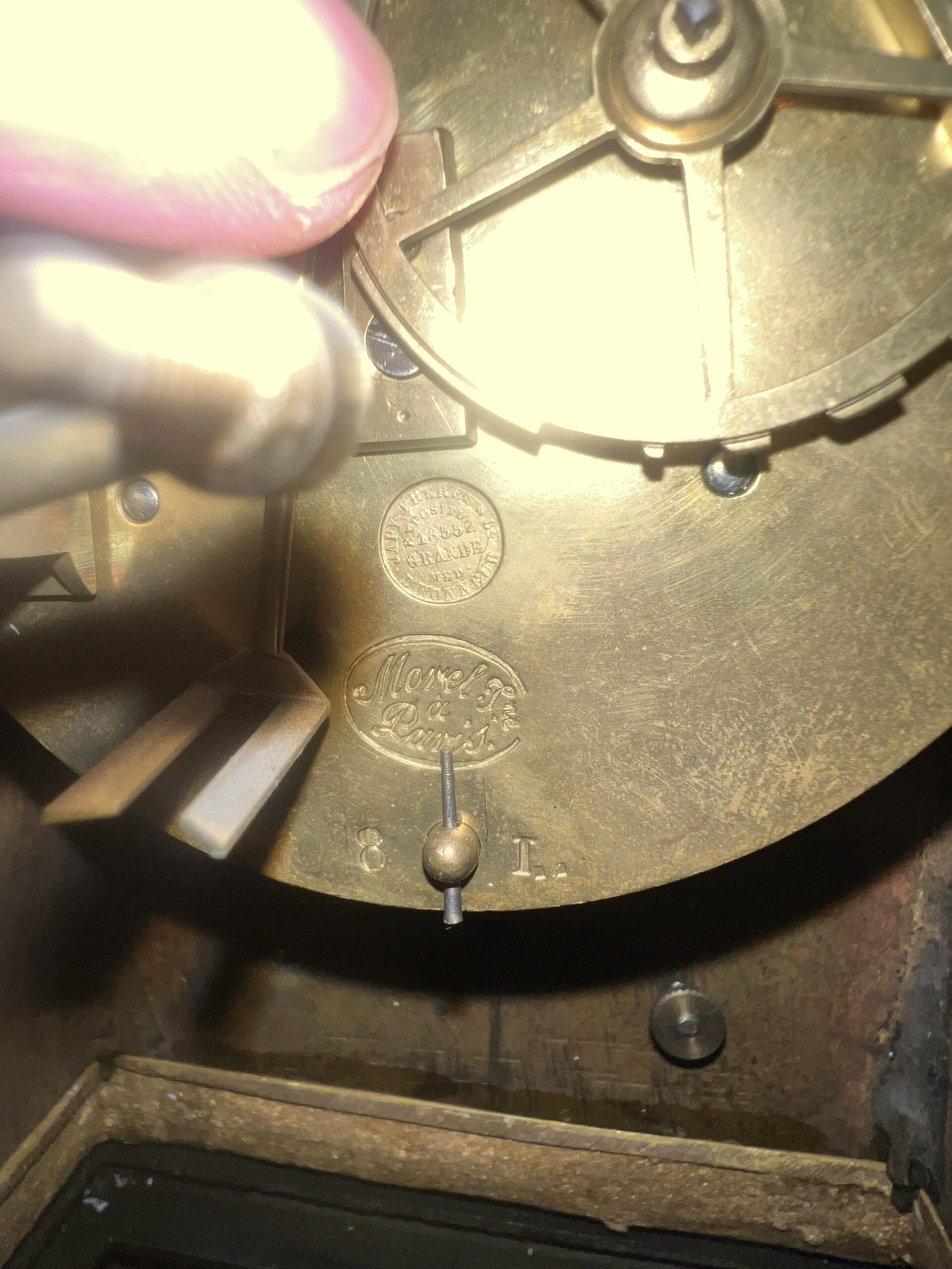 Il est signé « Morel à Paris », ce qui atteste de son origine prestigieuse et de son mécanisme soigné, cependant la languette supportant le balancier est a changer.