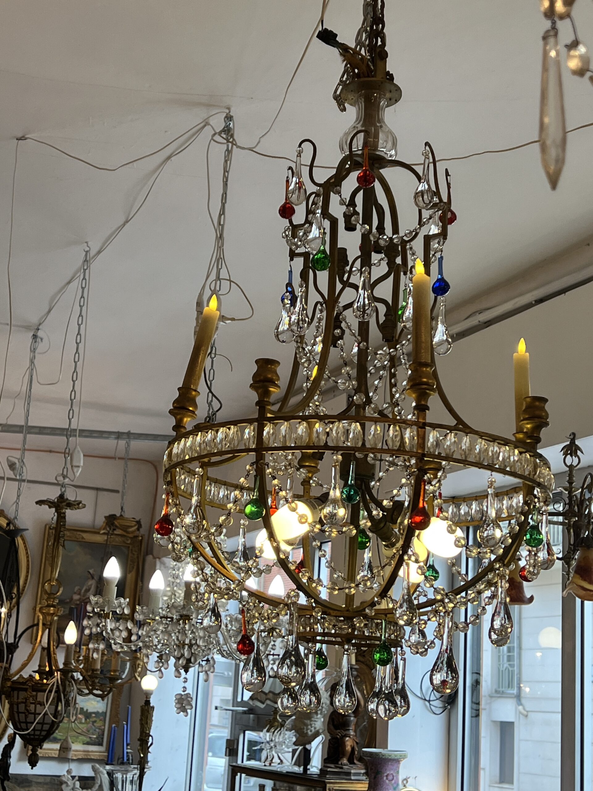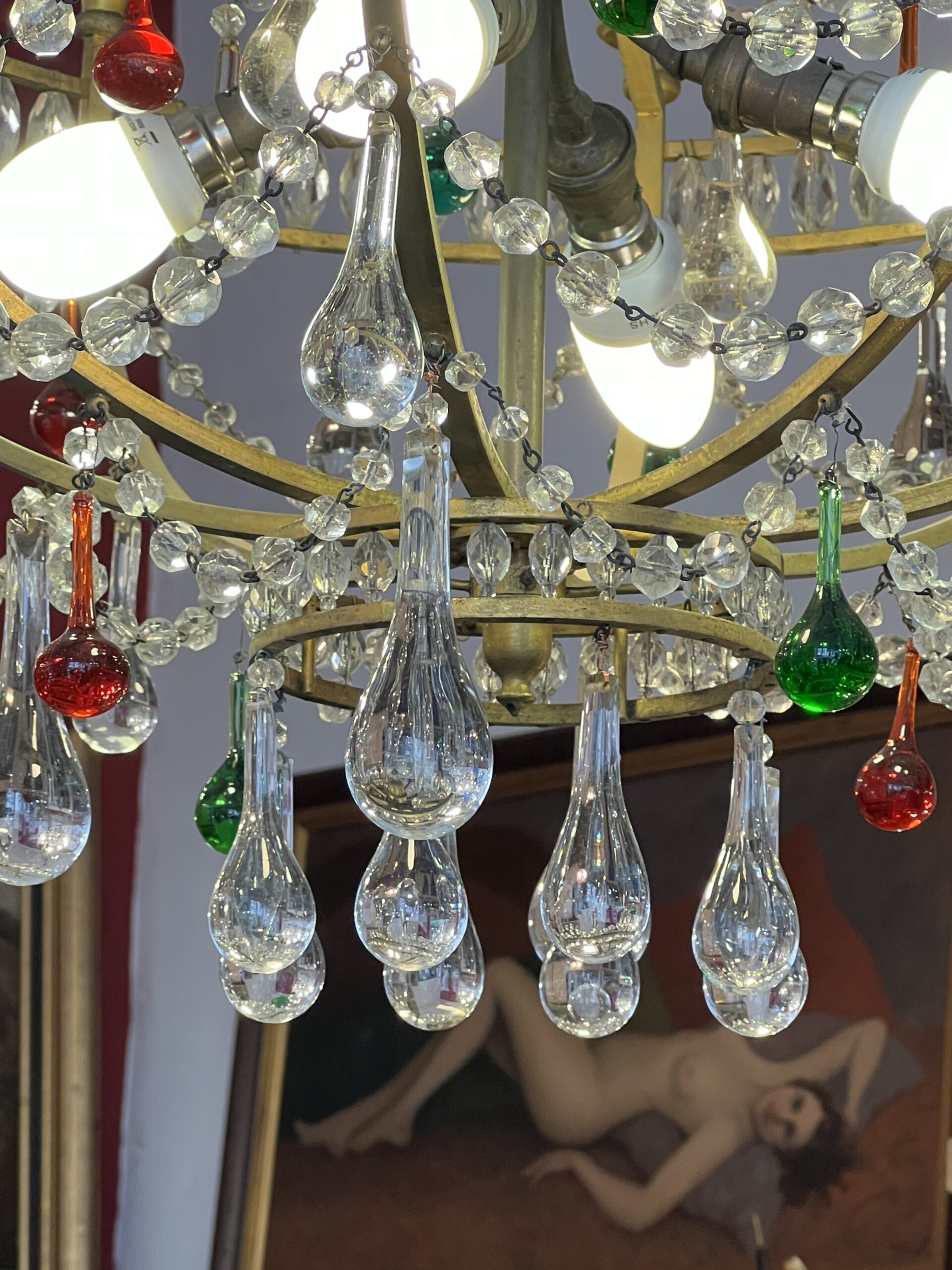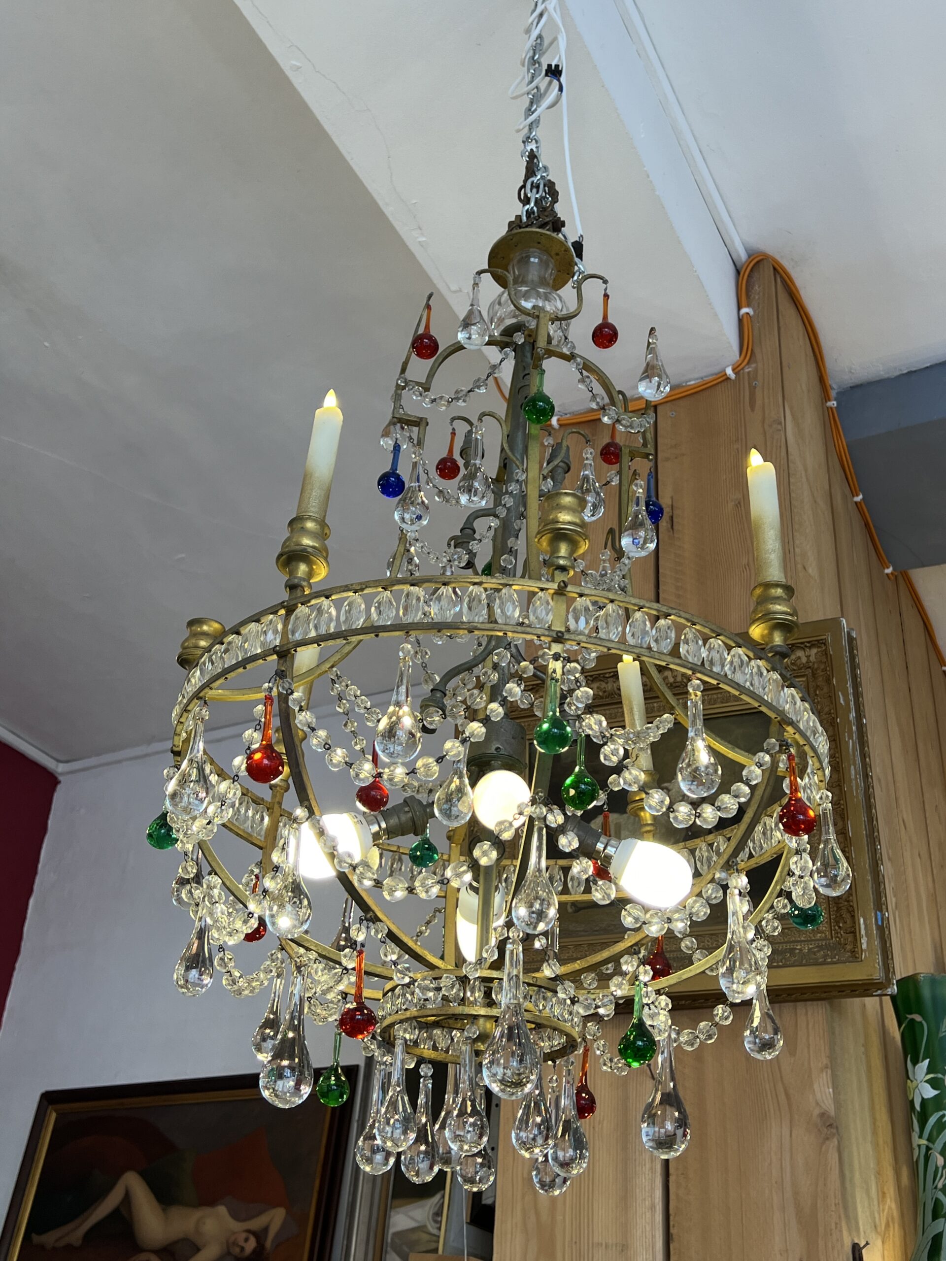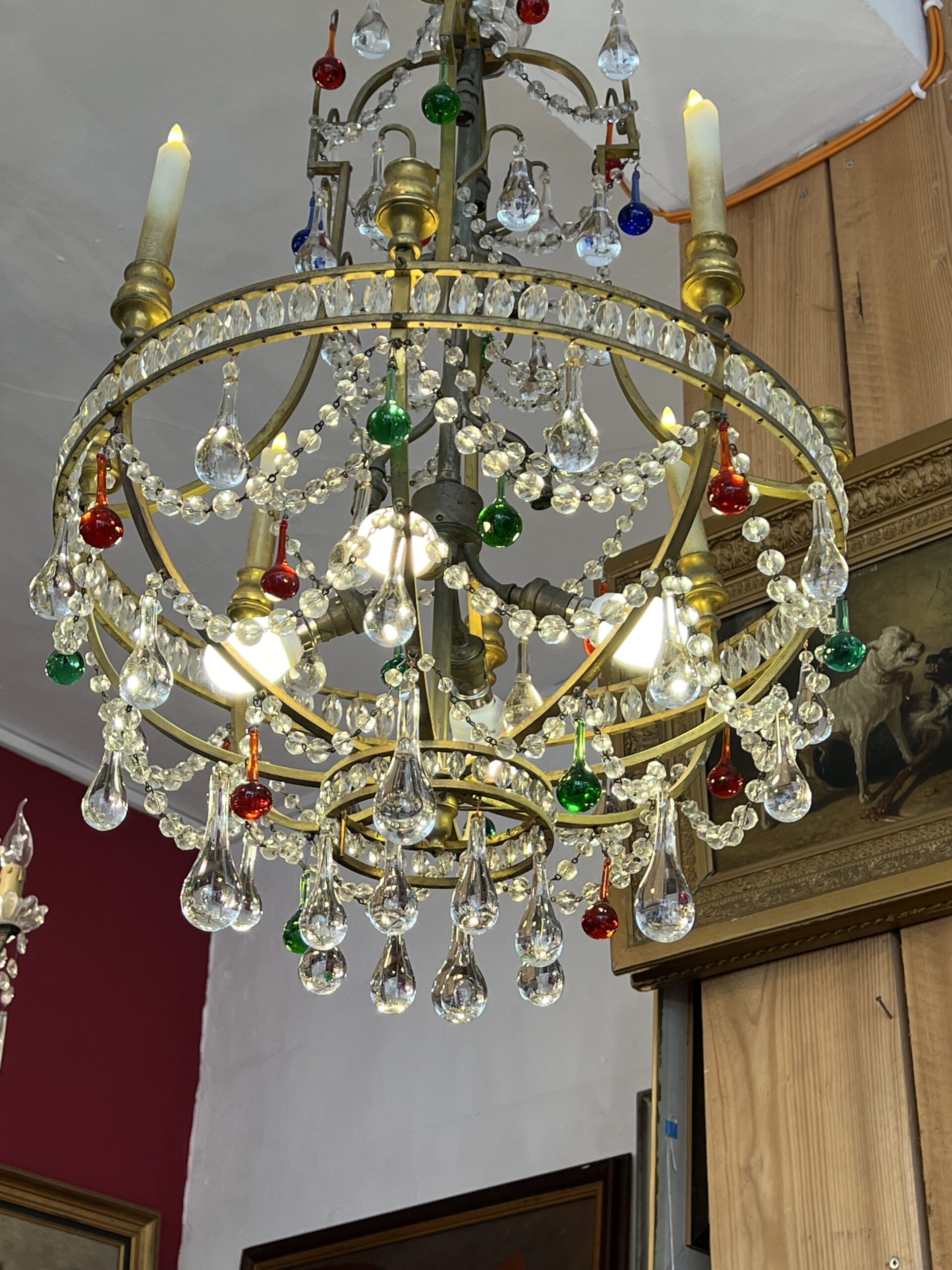 Magnifique lustre à corbeille et pendeloques à Goutte d’eau de couleur