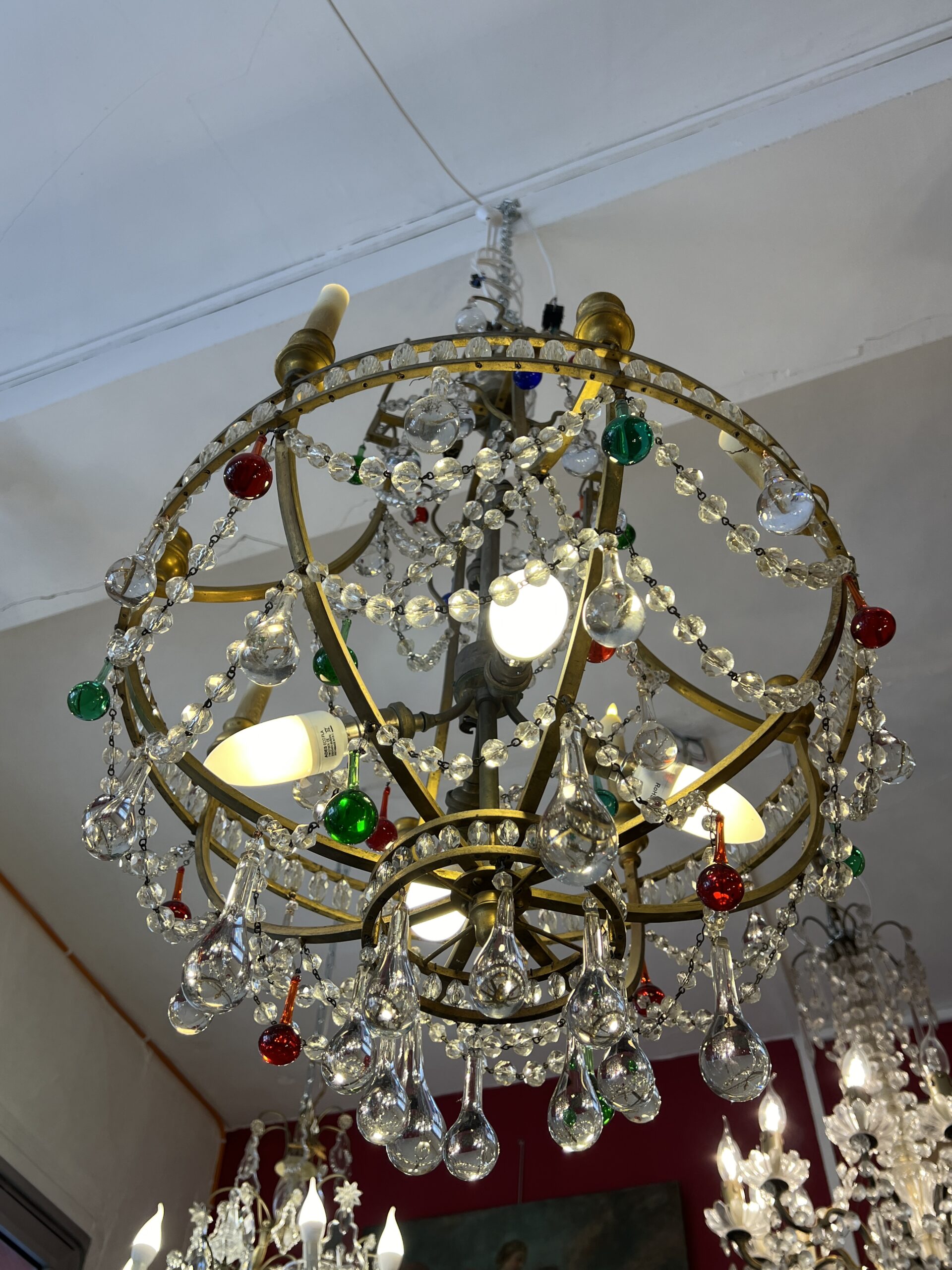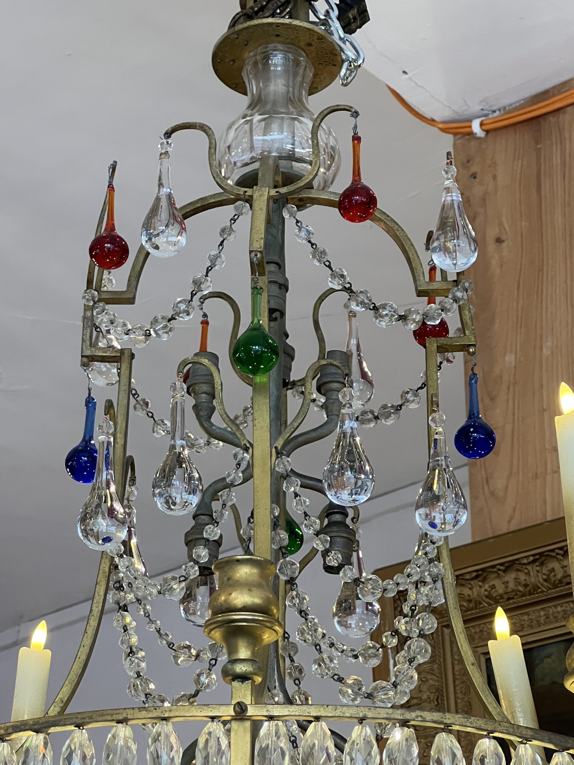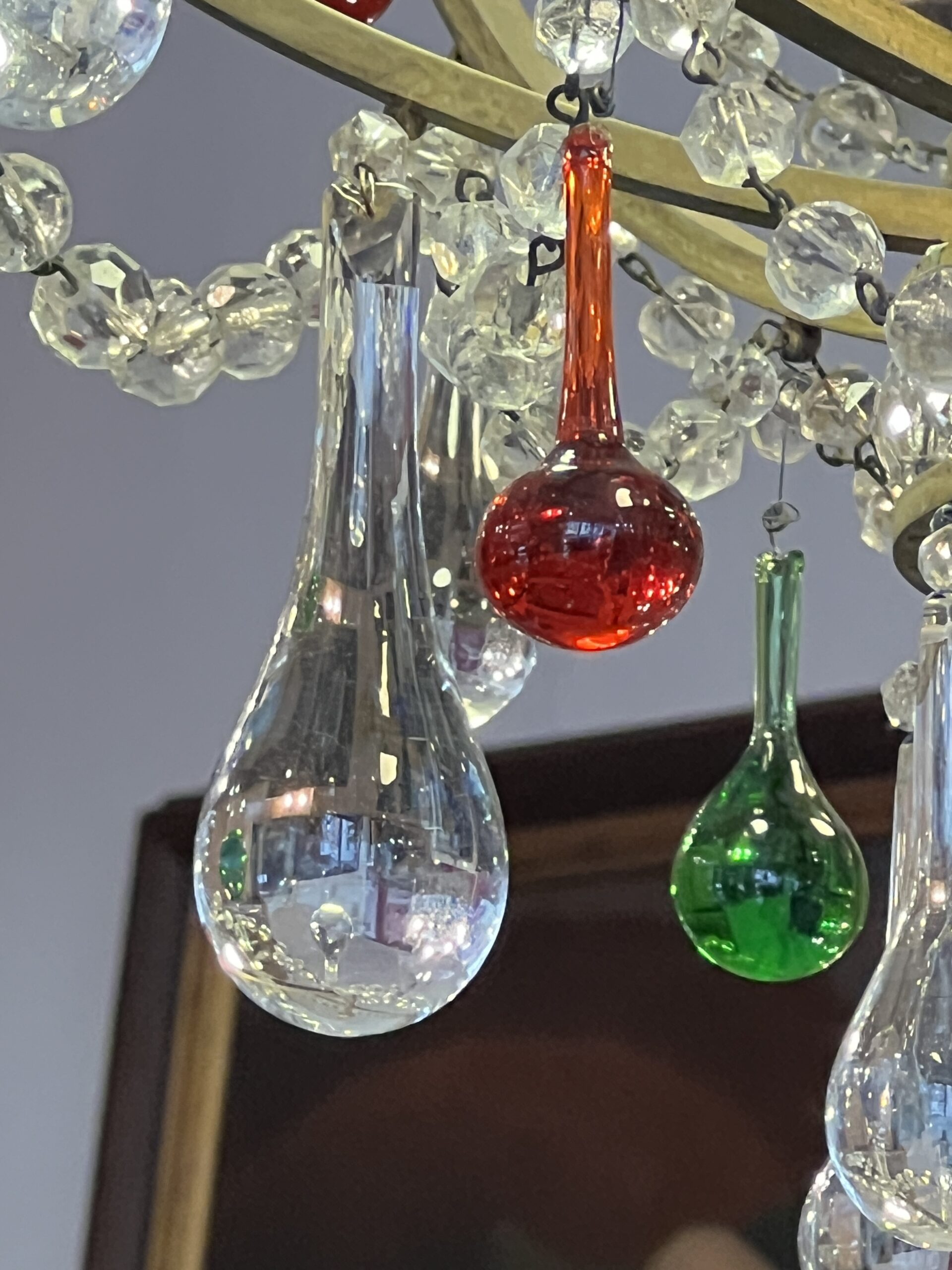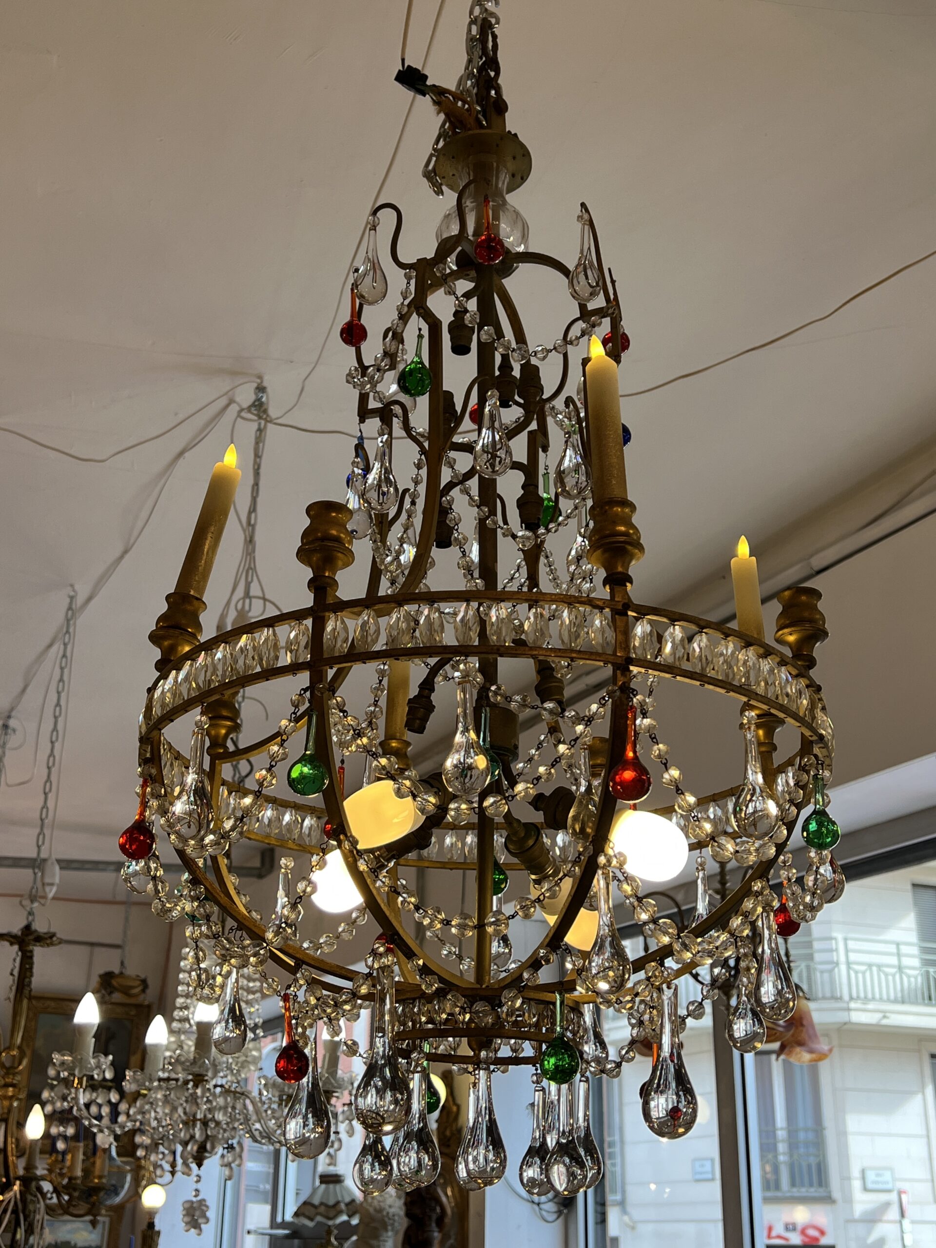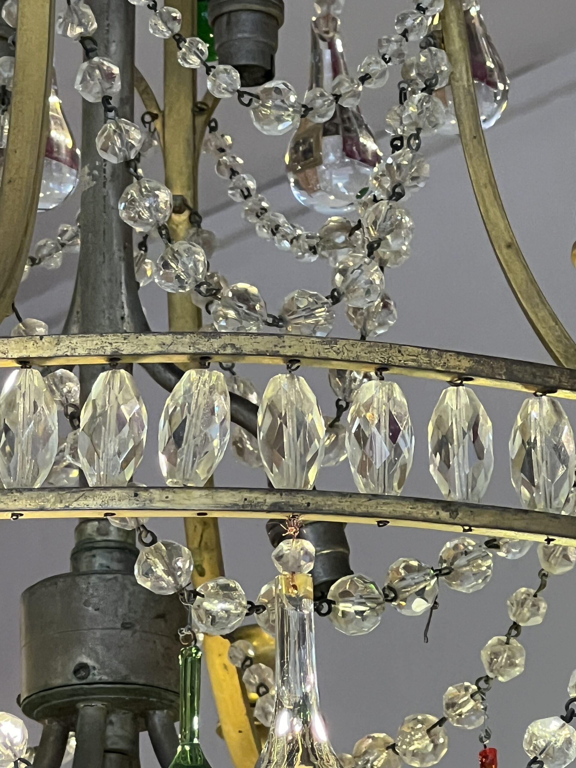 Magnifique lustre à corbeille et pendeloques à Goutte d’eau de couleur