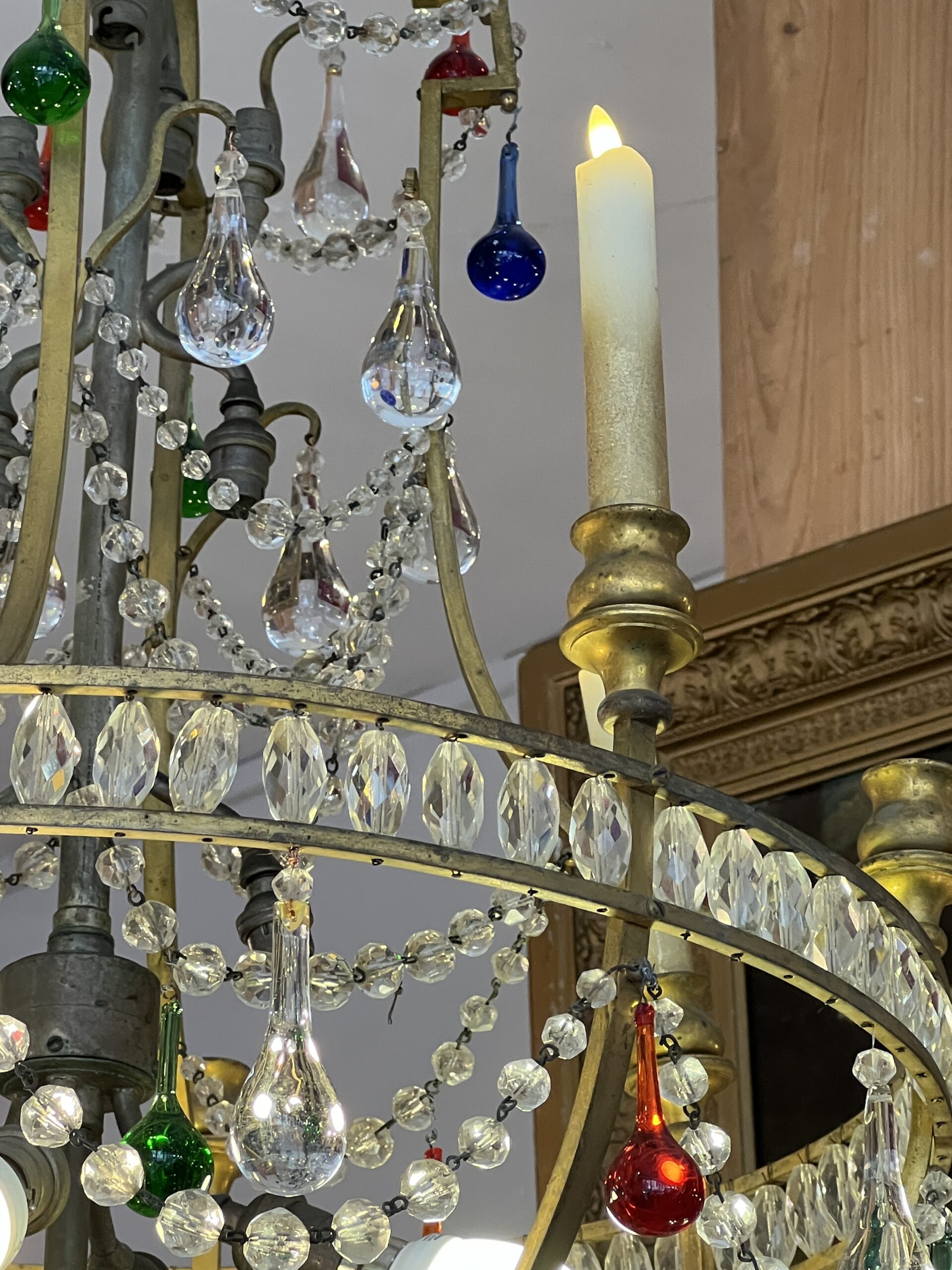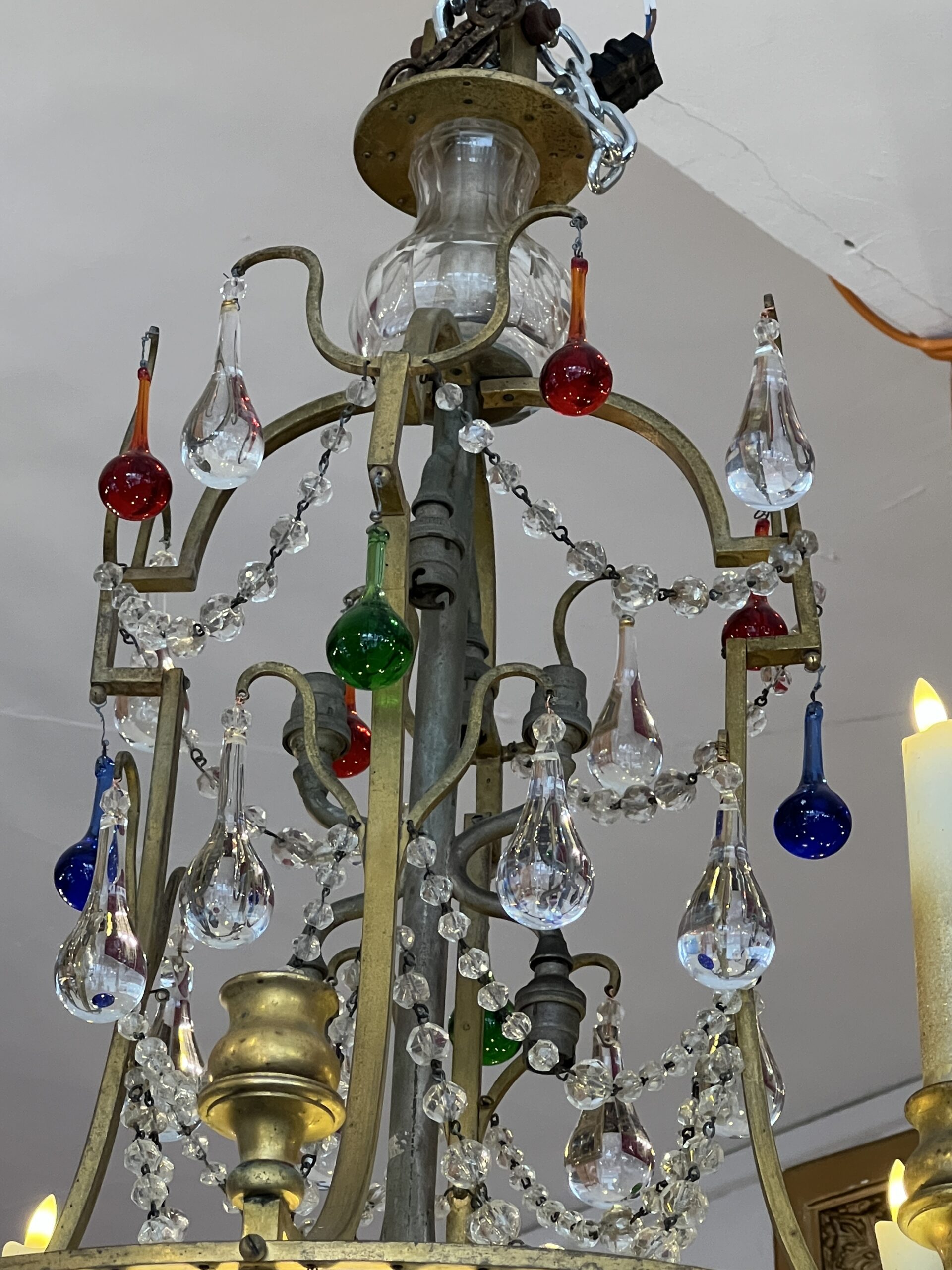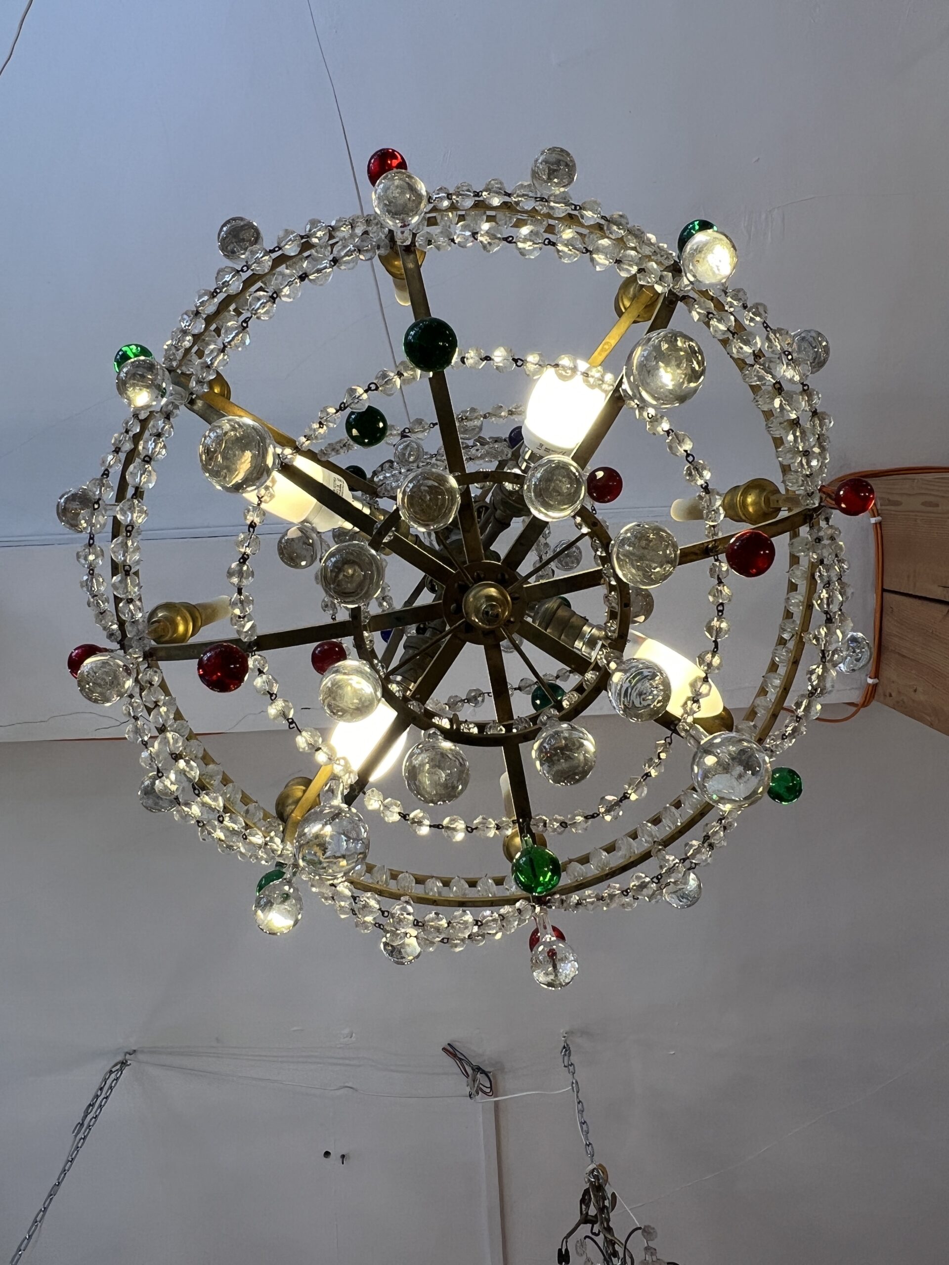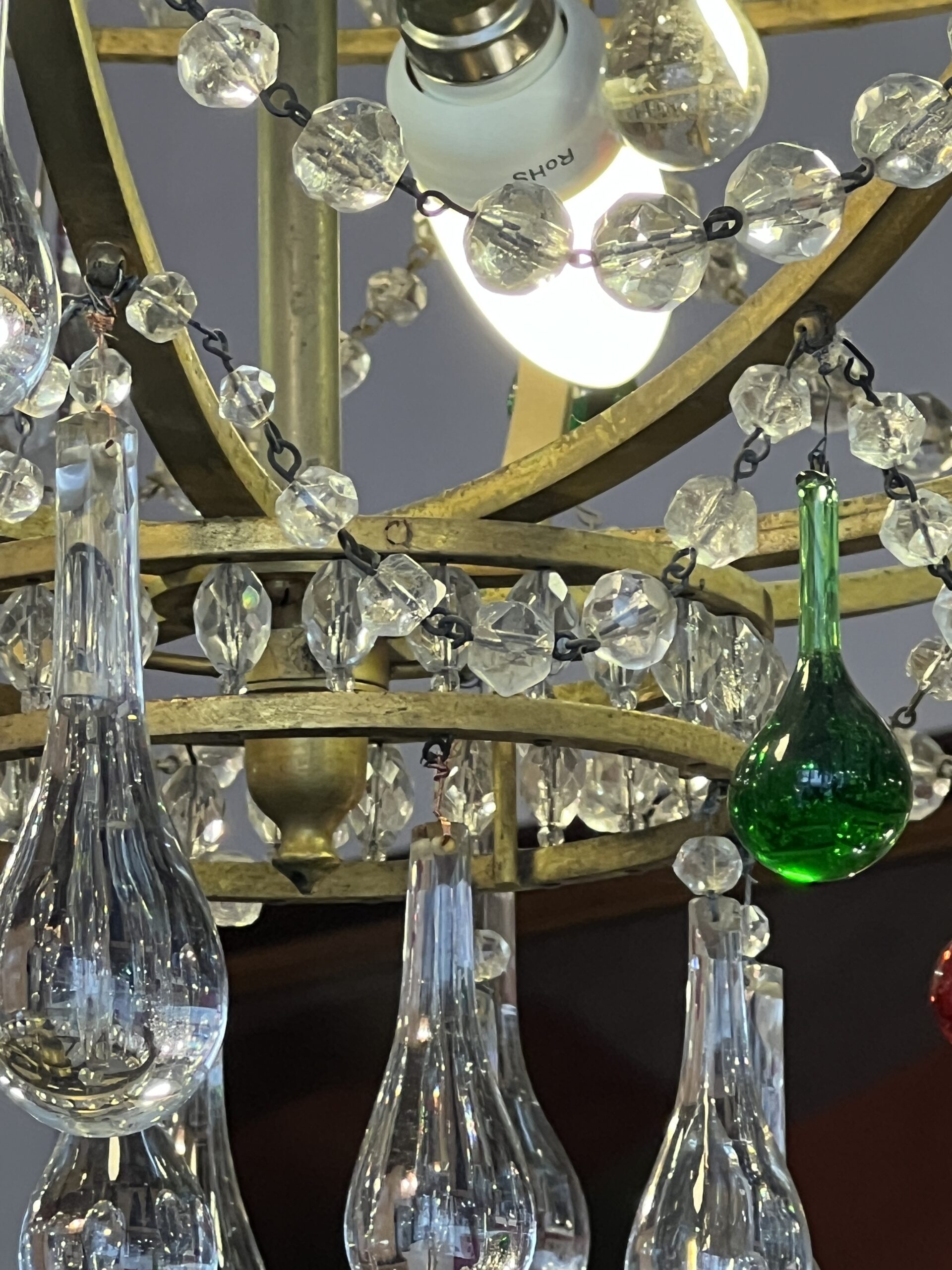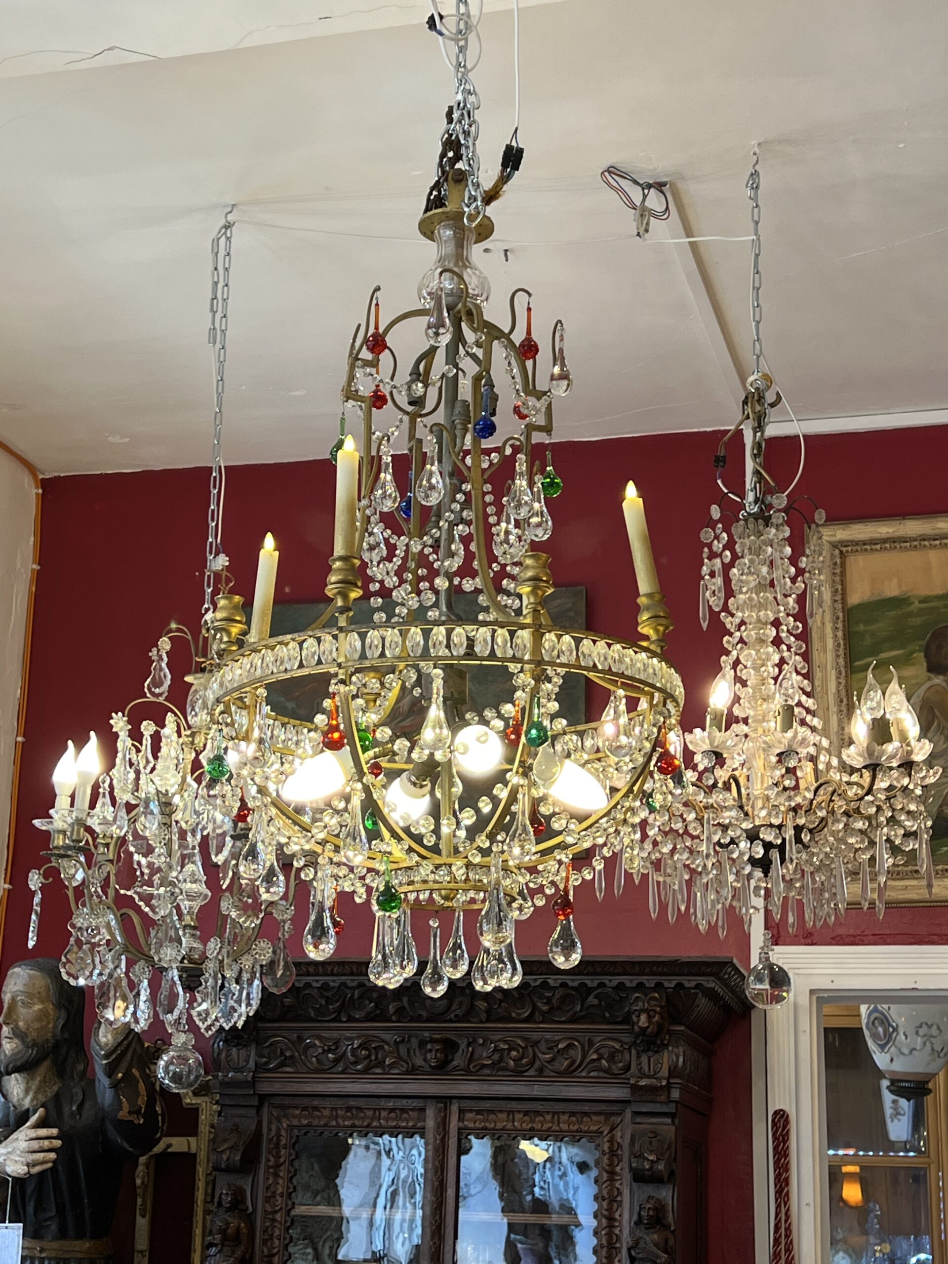 Magnifique lustre à corbeille et pendeloques à Goutte d’eau de couleur