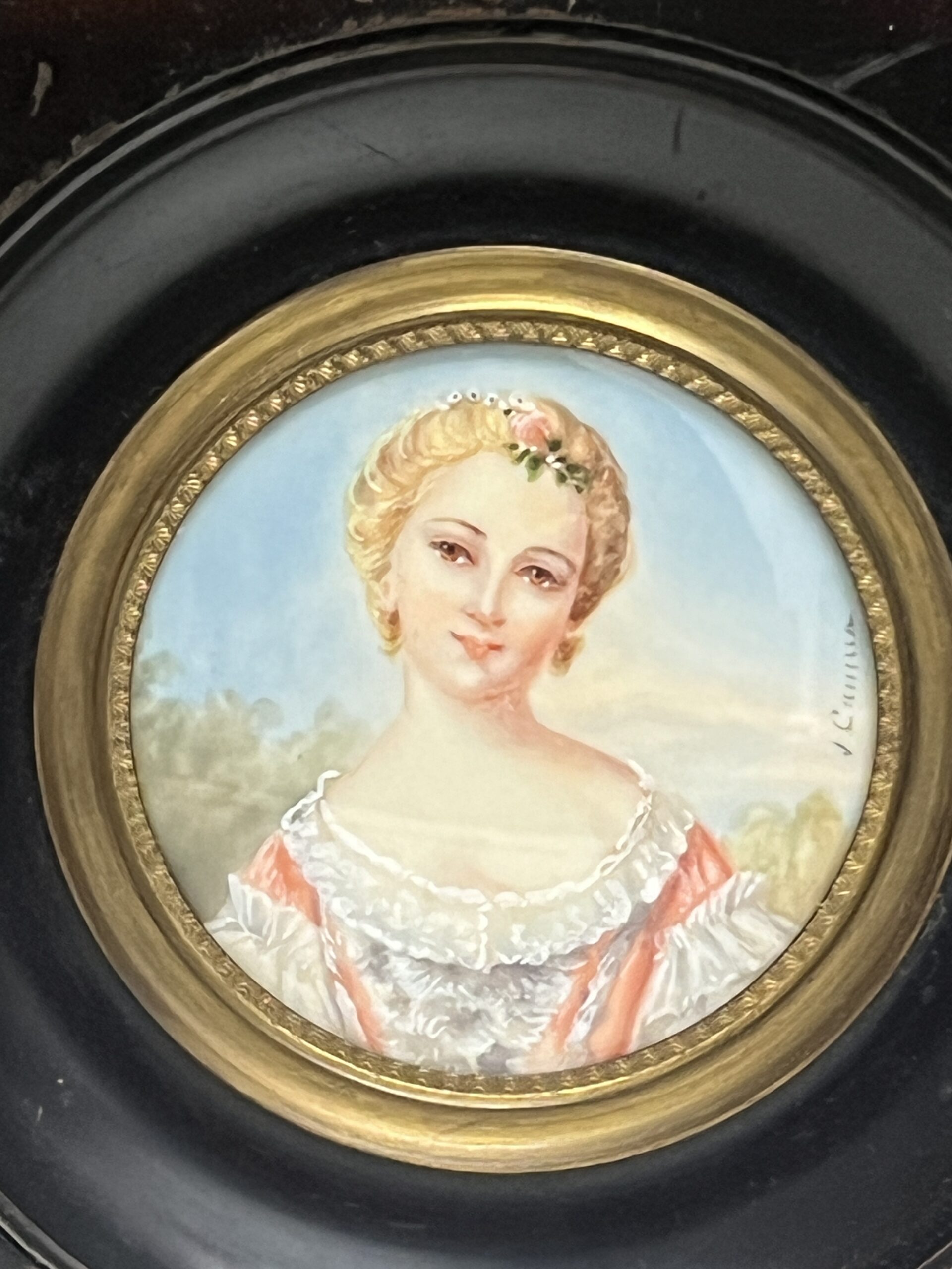 La miniature est également un exemple éloquent de la manière dont l’art peut capturer et conserver un moment précis de l’histoire sociale et culturelle. En possédant cette œuvre, on ne détient pas seulement une image d’une dame du XIXe siècle, mais aussi un fragment important de l’histoire artistique, celui d’une époque où le portrait miniature jouait un rôle clé dans la représentation intime des individus. La peinture de Cavana s’inscrit dans cette tradition, offrant une porte d’entrée unique dans l’intimité et le raffinement de ses contemporains. À travers ses œuvres, il perpétue non seulement la mémoire des personnages qu’il a peints, mais aussi un savoir-faire artistique ancré dans la tradition de la miniature, qui a traversé les siècles avec élégance et discrétion.