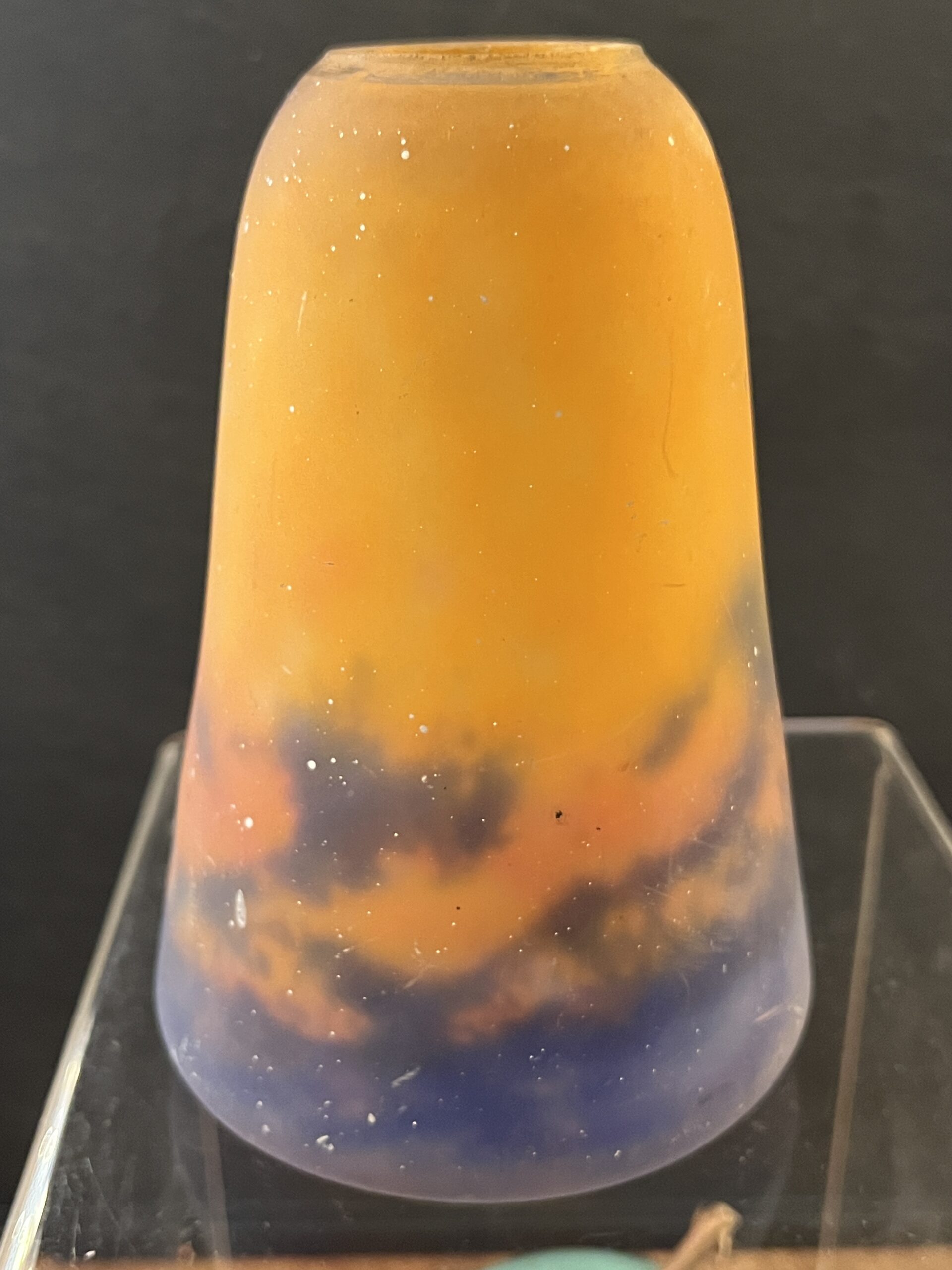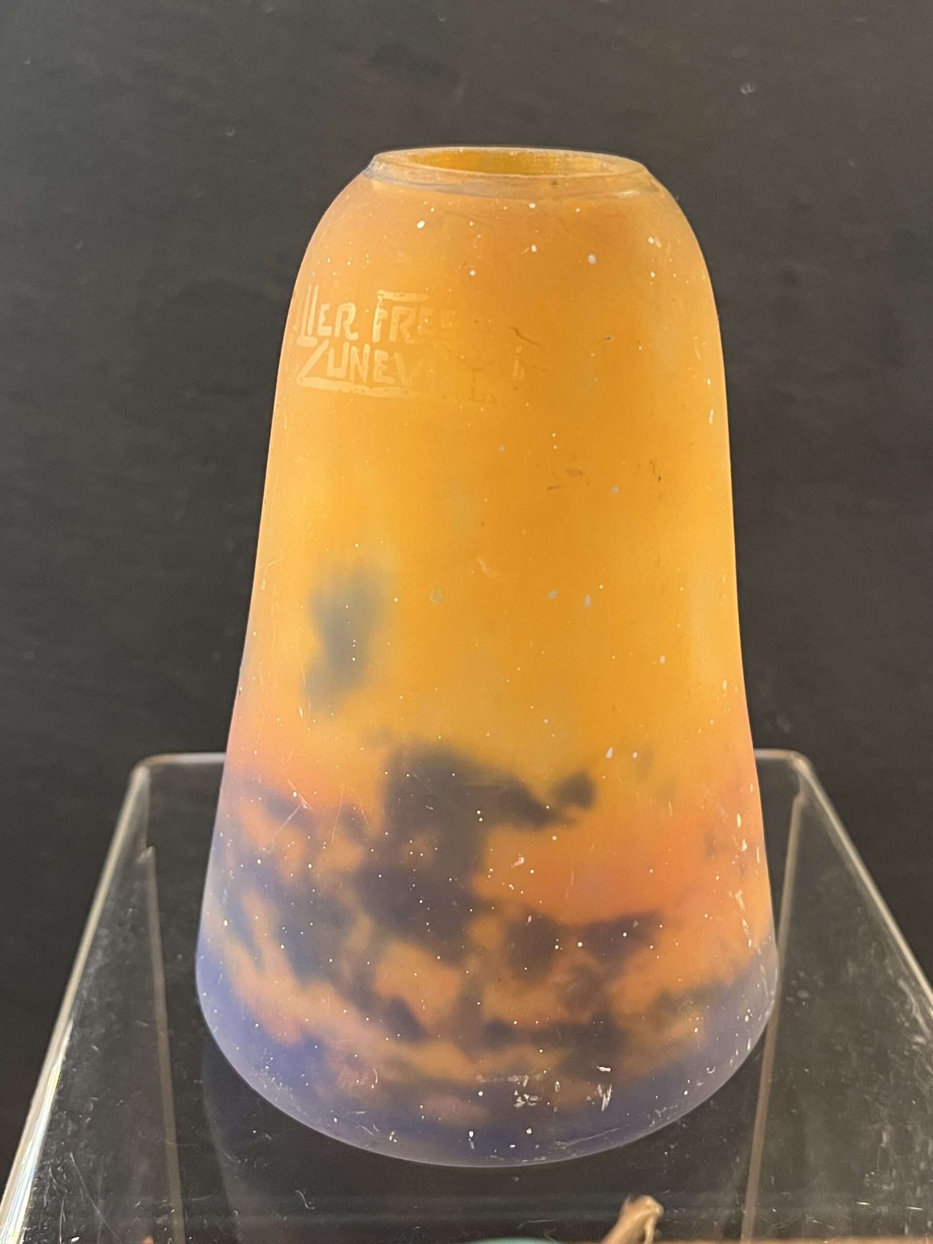 En somme, cette tulipe de lampe Muller Frères Lunéville incarne à la fois l’histoire, la beauté et l’artisanat d’une époque révolue. Elle est bien plus qu’un simple objet décoratif ; elle est un témoignage vivant du talent et de la créativité des maîtres verriers du passé, ainsi qu’une pièce unique à chérir et à admirer dans n’importe quel intérieur.