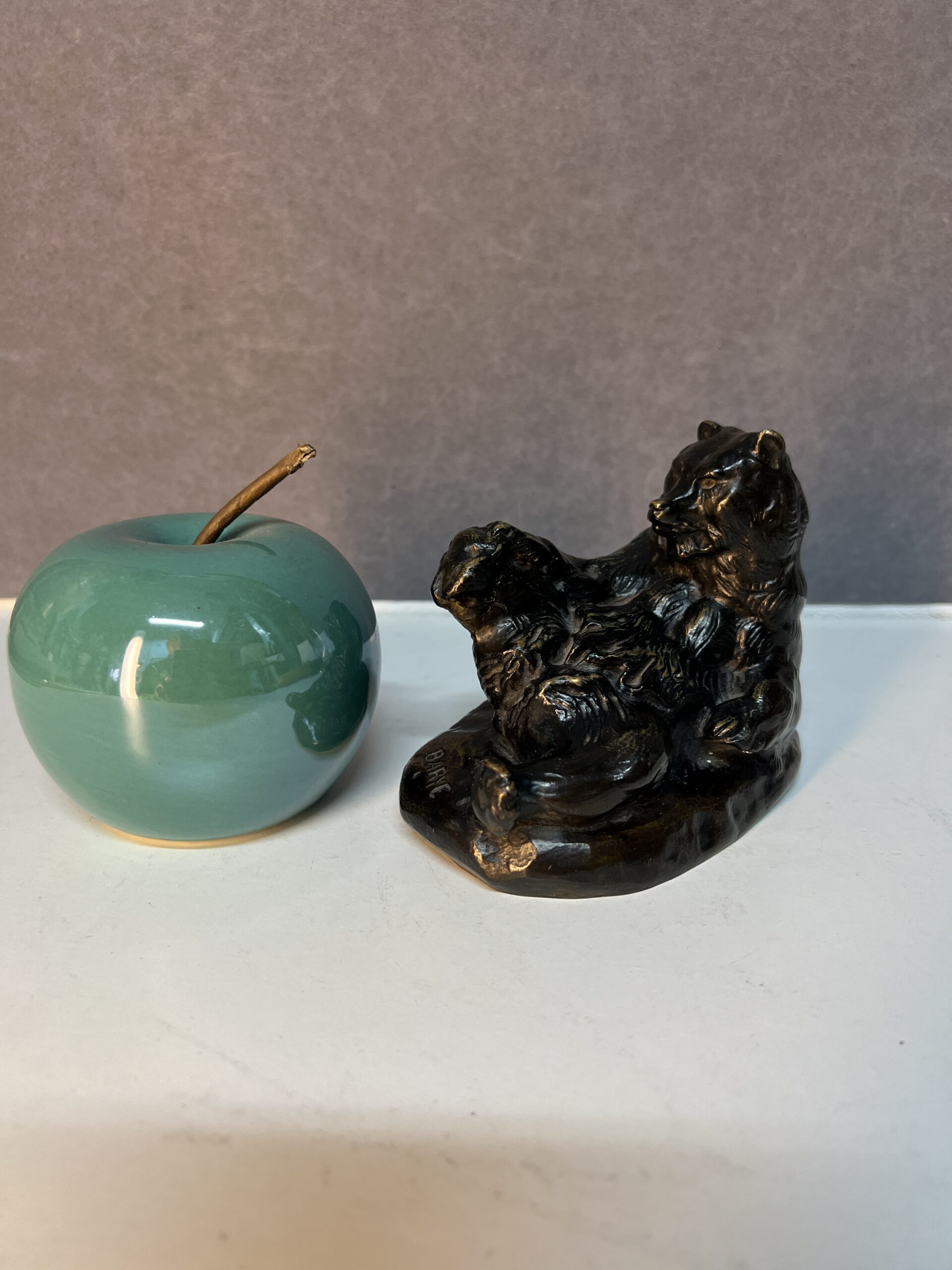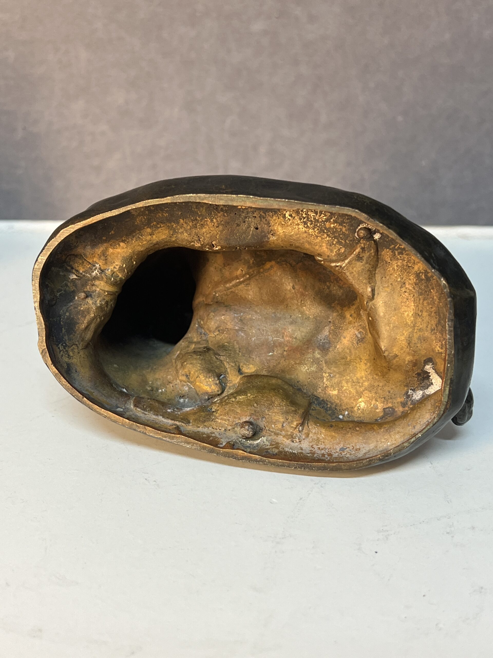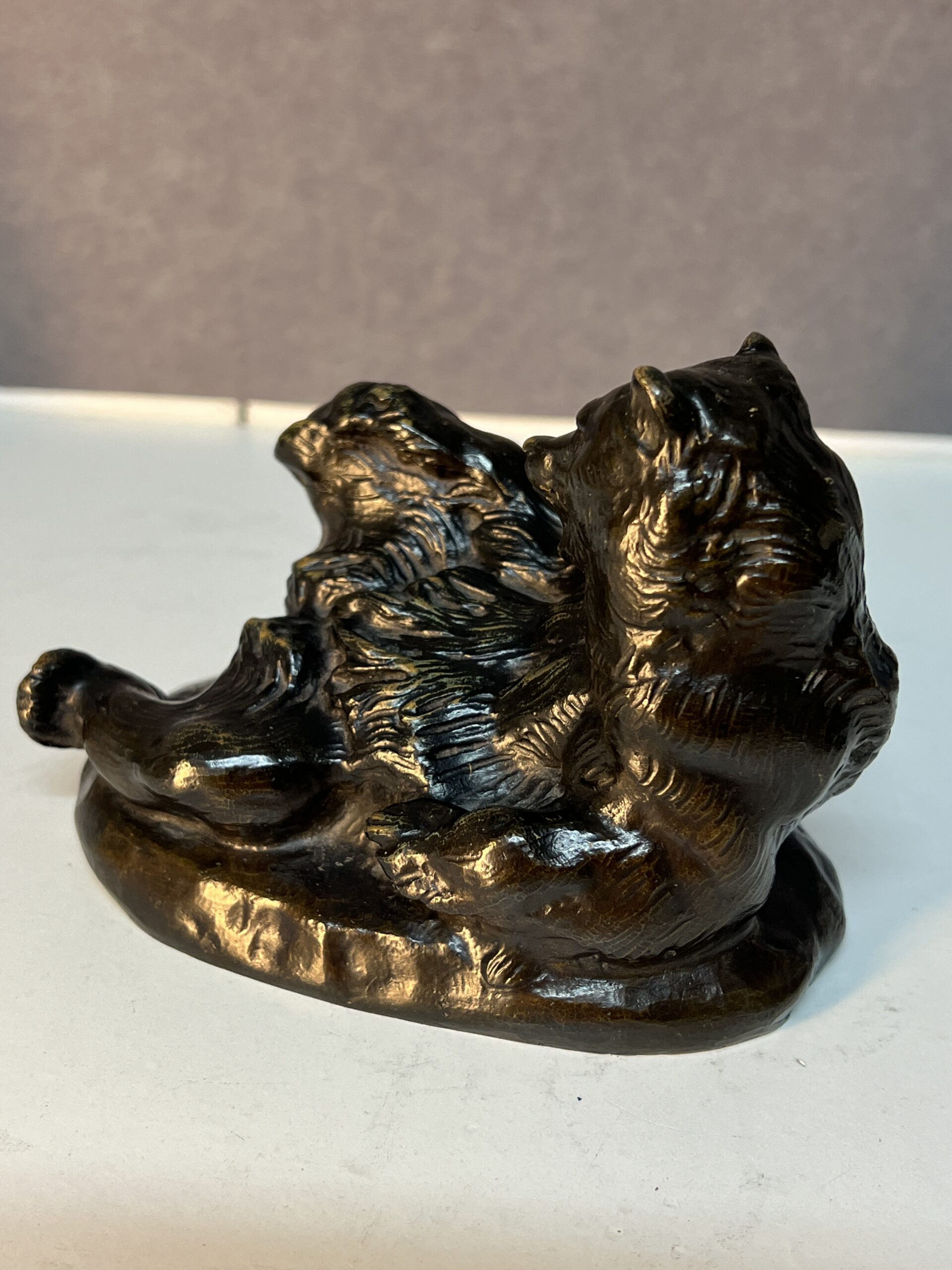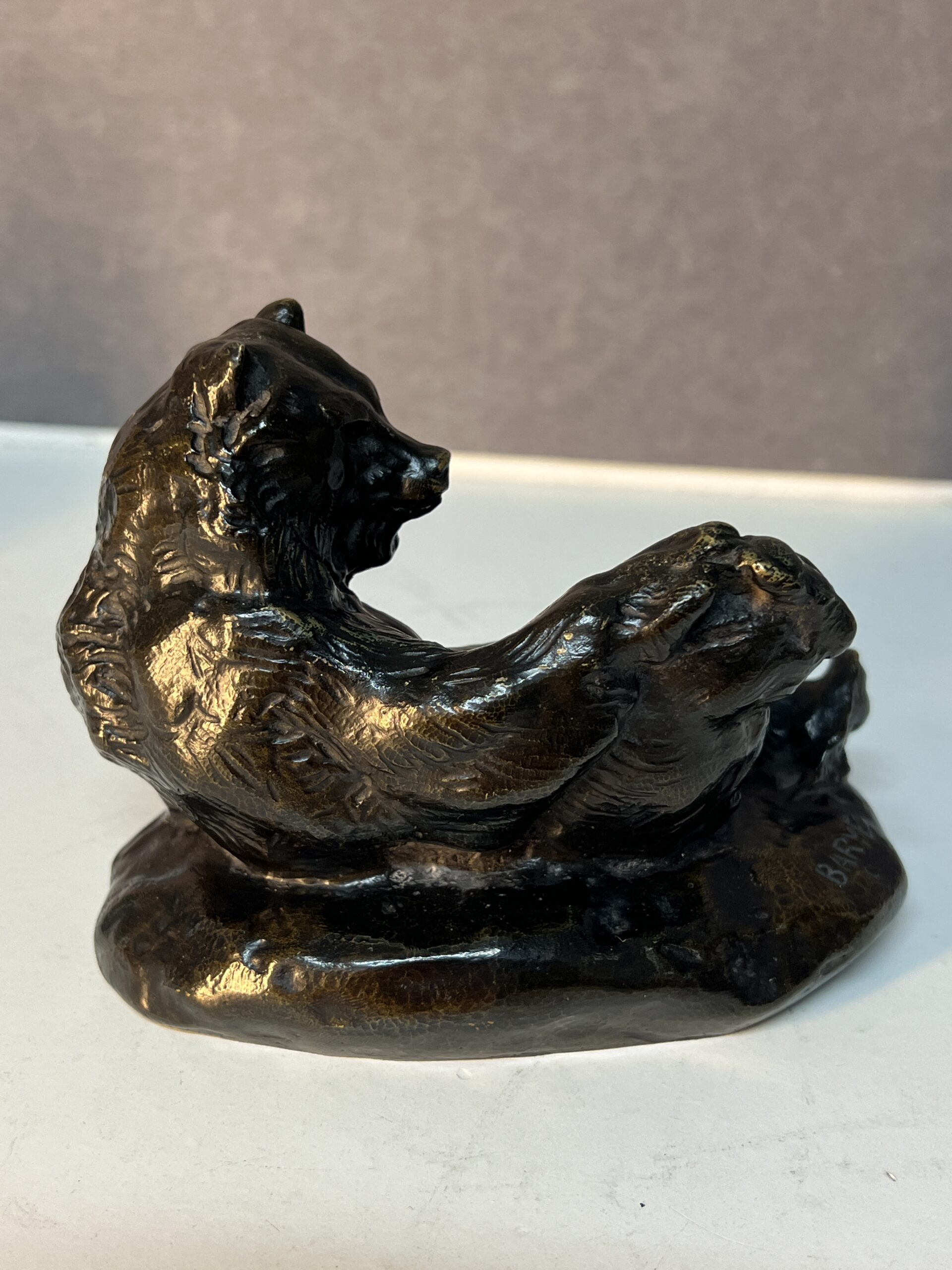 La patine brune appliquée à la surface du bronze confère à l’œuvre une richesse et une profondeur supplémentaires. Elle crée des nuances subtiles qui mettent en valeur les différentes textures de l’ours, des poils épais de son pelage aux coussinets rugueux de ses pattes. Cette patine donne également à la sculpture une apparence antique, lui conférant une aura intemporelle qui traverse les époques.