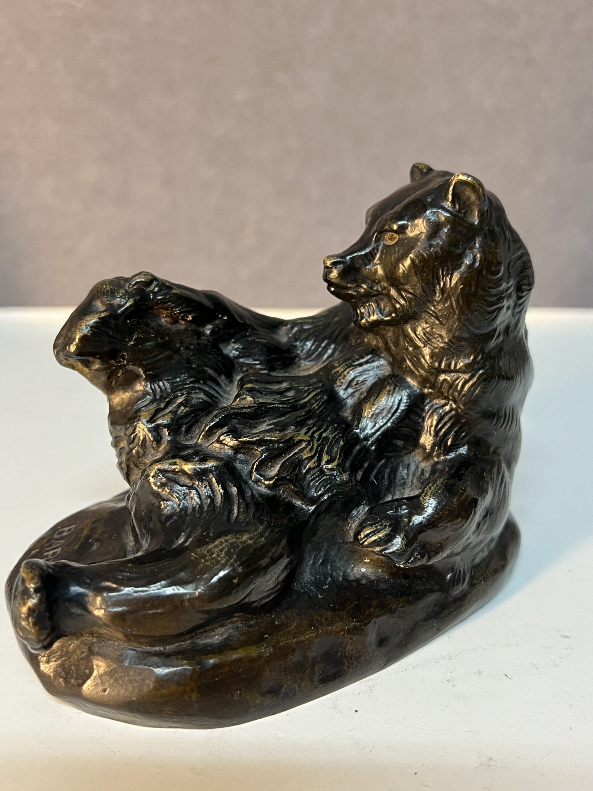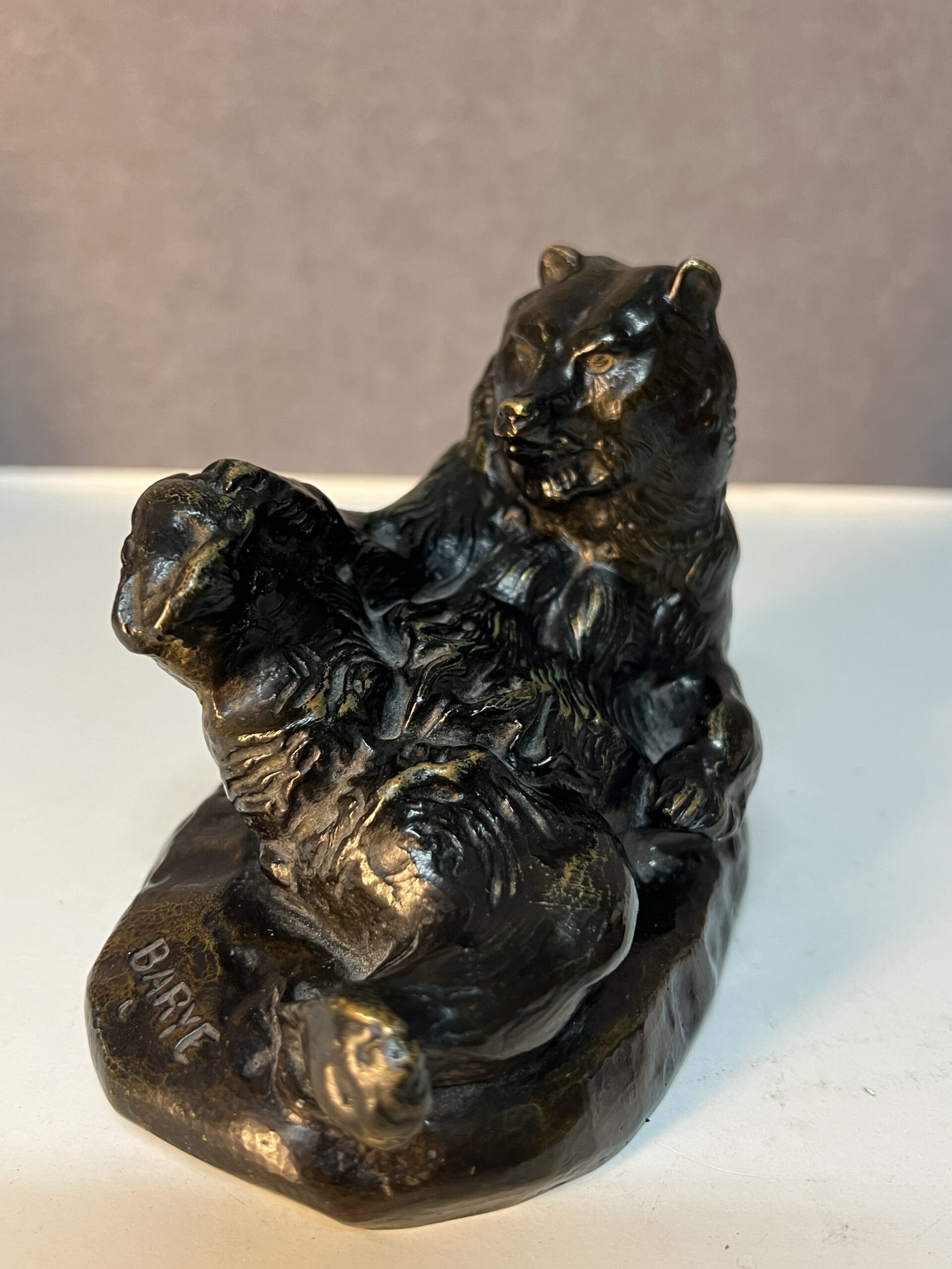 L’ours couché de Barye invite à la contemplation. Dans sa posture calme et détendue, l’animal semble prêt à s’endormir, mais ses sens restent en alerte, prêts à réagir au moindre danger. Cette dualité entre la tranquillité et la vigilance ajoute une dimension psychologique à l’œuvre, incitant le spectateur à réfléchir à la nature complexe de la vie sauvage.