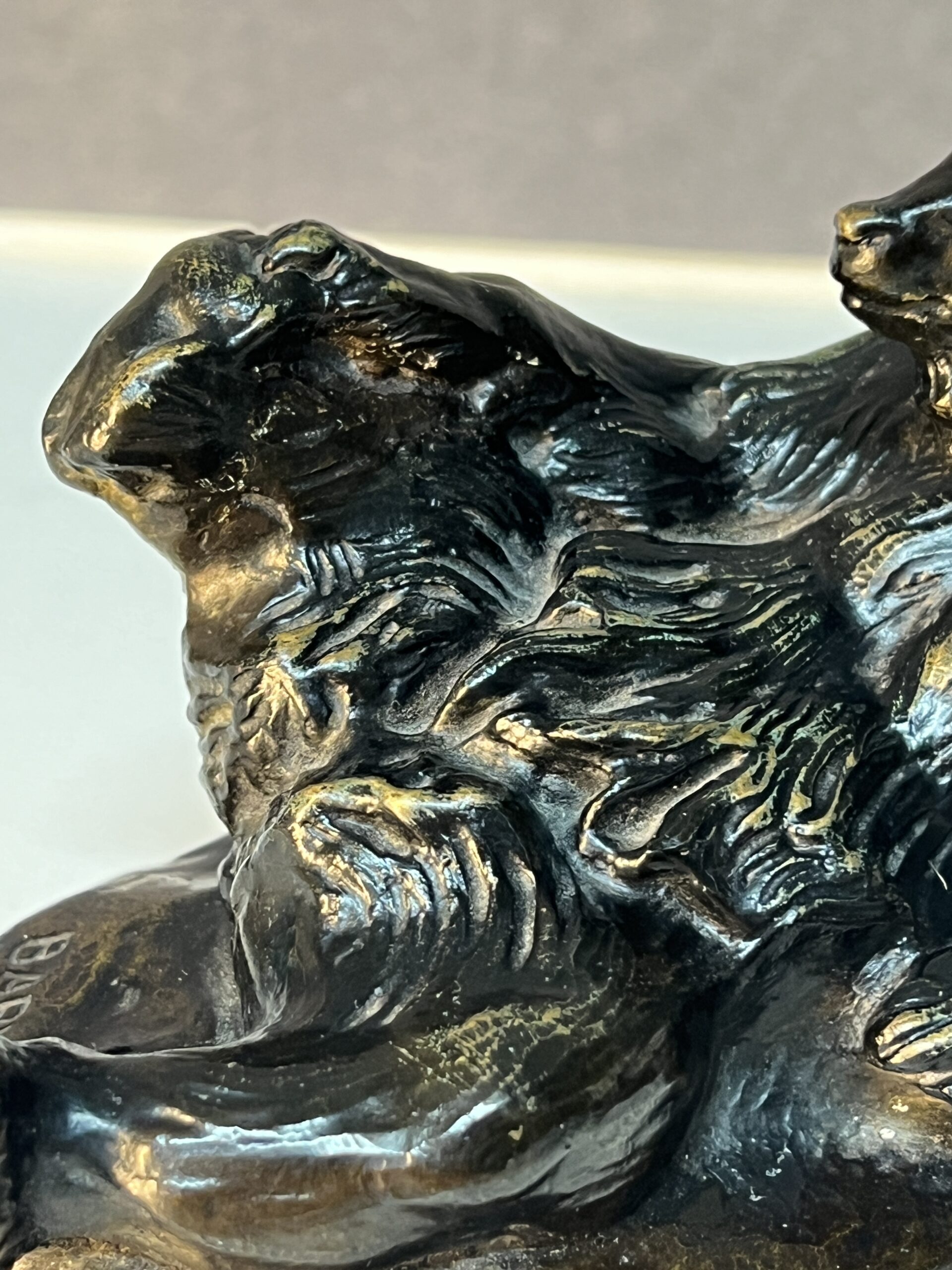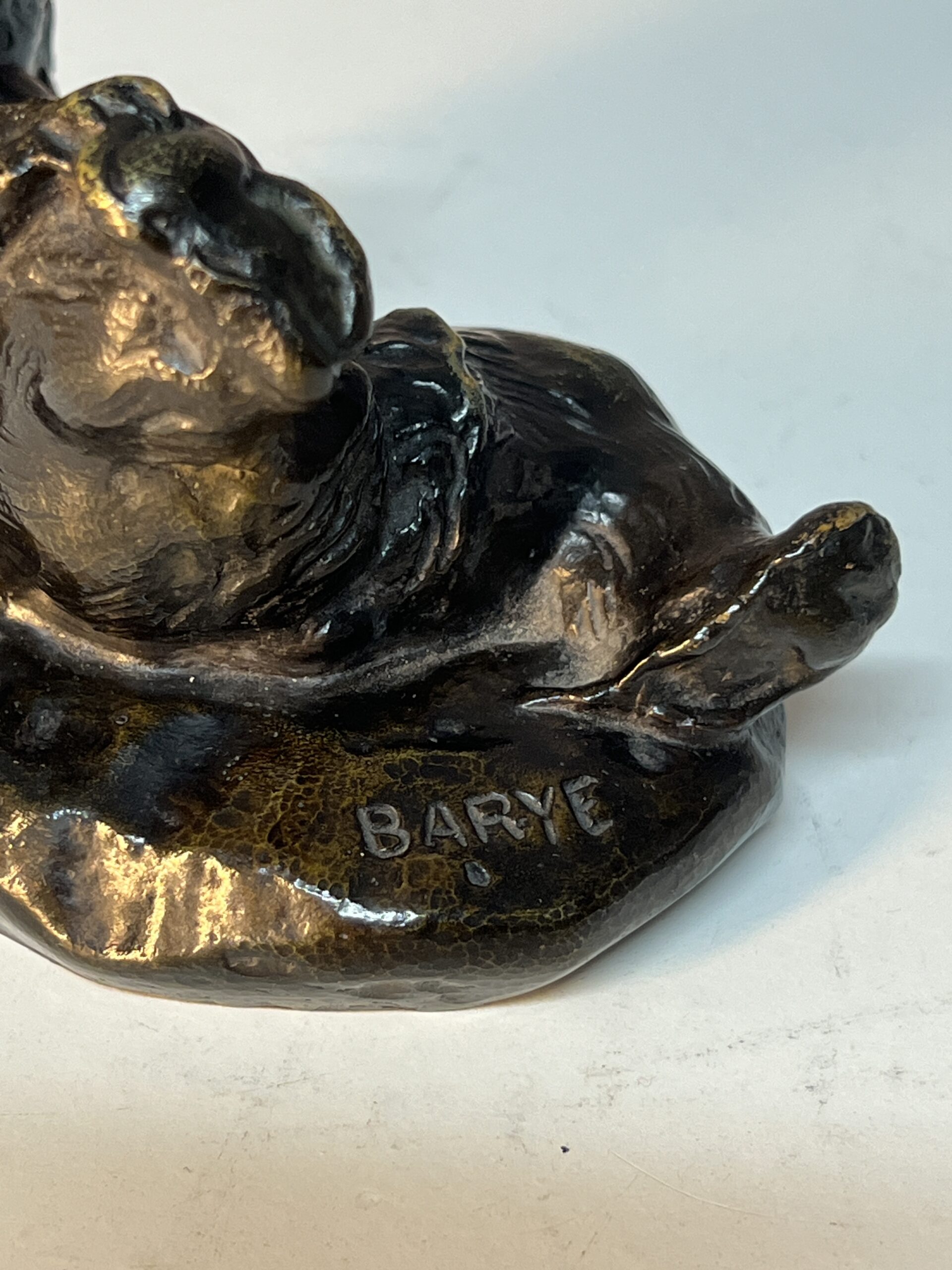 Antoine-Louis Barye, né en 1795, était un sculpteur renommé de son époque, reconnu pour son habileté à capturer l’anatomie et le mouvement des animaux dans ses œuvres. Son intérêt pour la zoologie et ses études approfondies des animaux sauvages ont influencé son travail, lui permettant de créer des sculptures qui semblent prendre vie sous ses mains expertes.