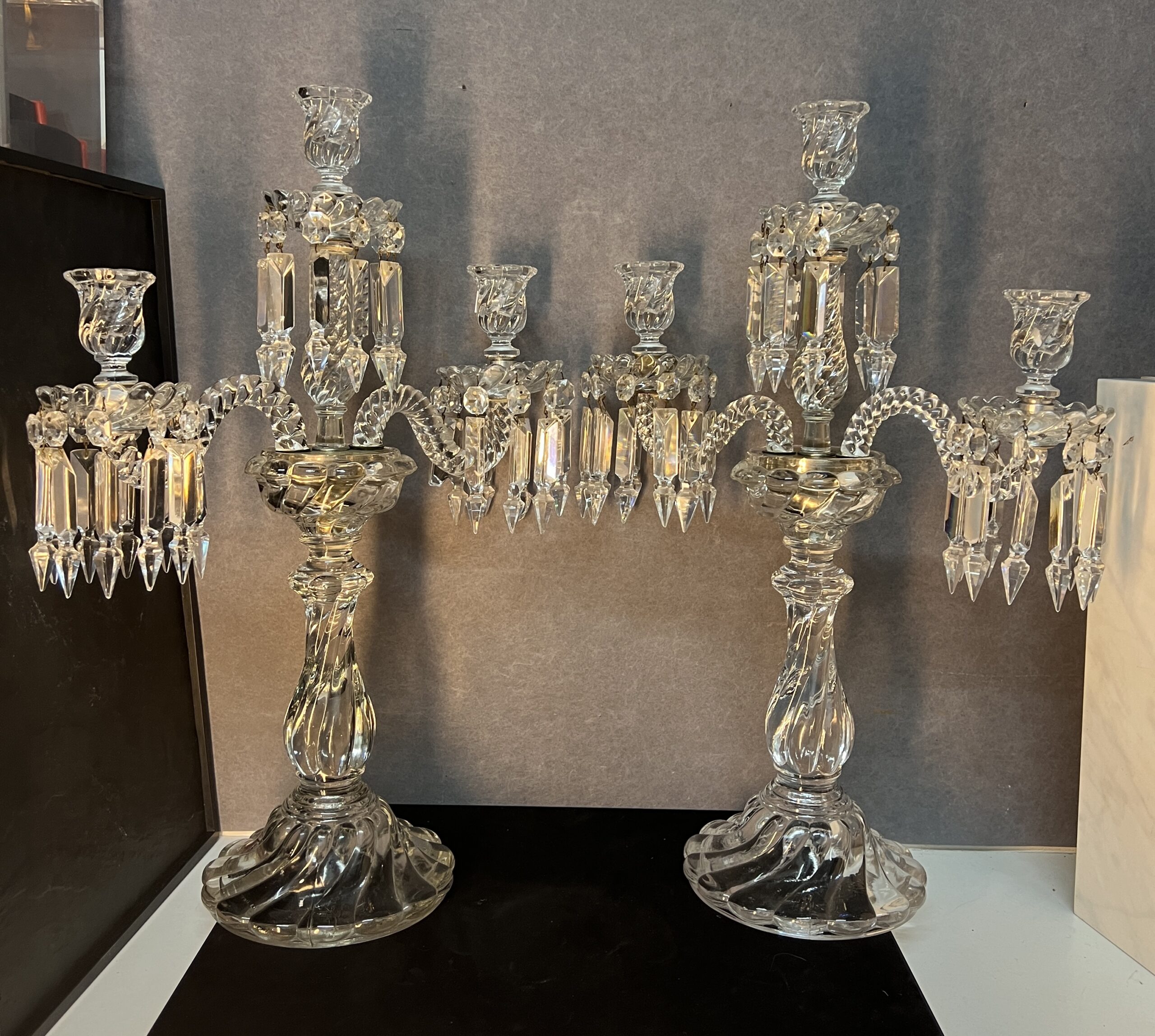 Paire de chandelier candélabre en cristal de Baccarat, Hauteur 56 cm