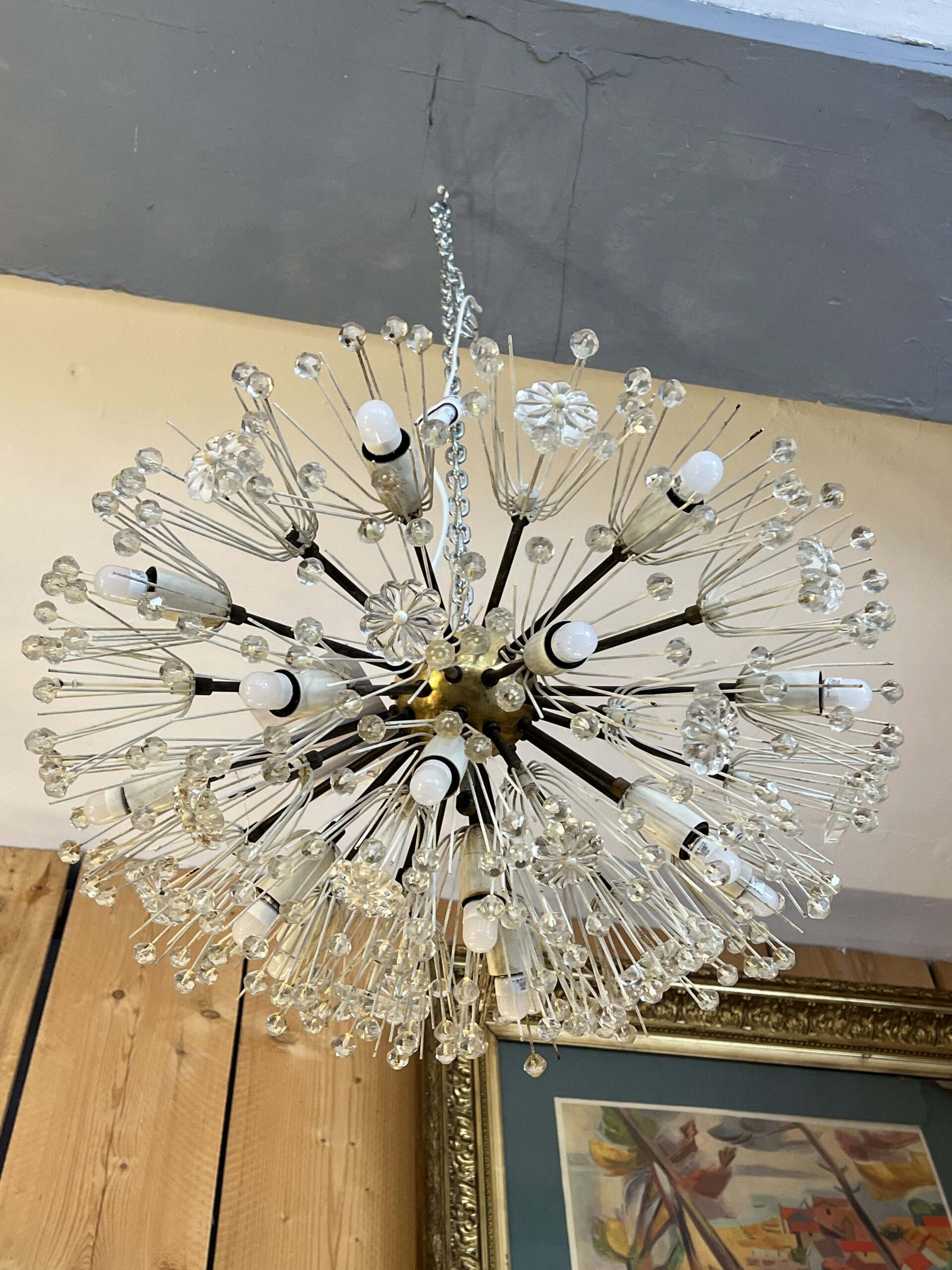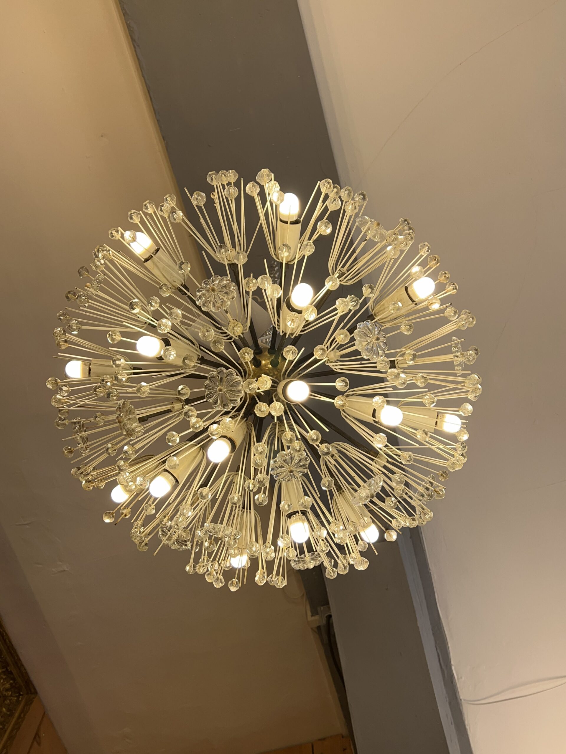 En résumé, ce plafonnier ou applique conçu par Emil Stejnar et fabriqué par Rupert Nikoll incarne à la perfection l’esthétique et l’ingéniosité du design des années 50/60. Sa taille imposante, ses matériaux de qualité, ses détails minutieux et son état impeccable en font une pièce de collection prisée par les amateurs de design rétro et les connaisseurs du style vintage.