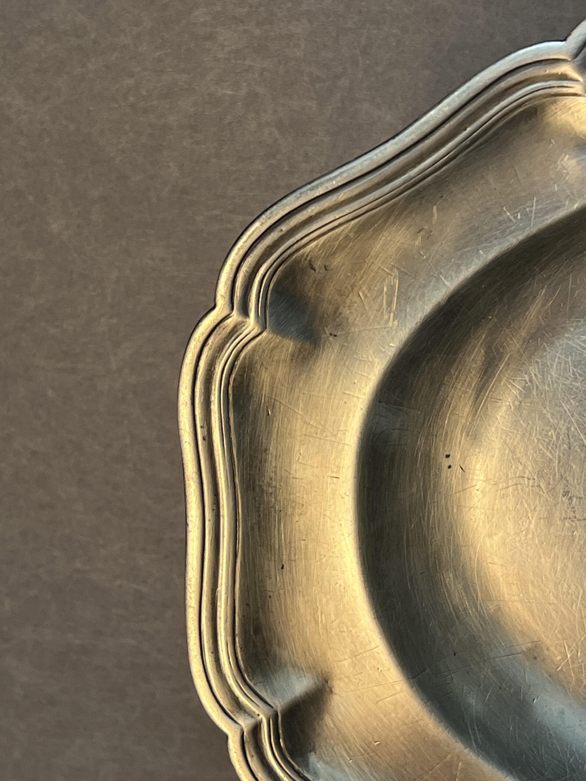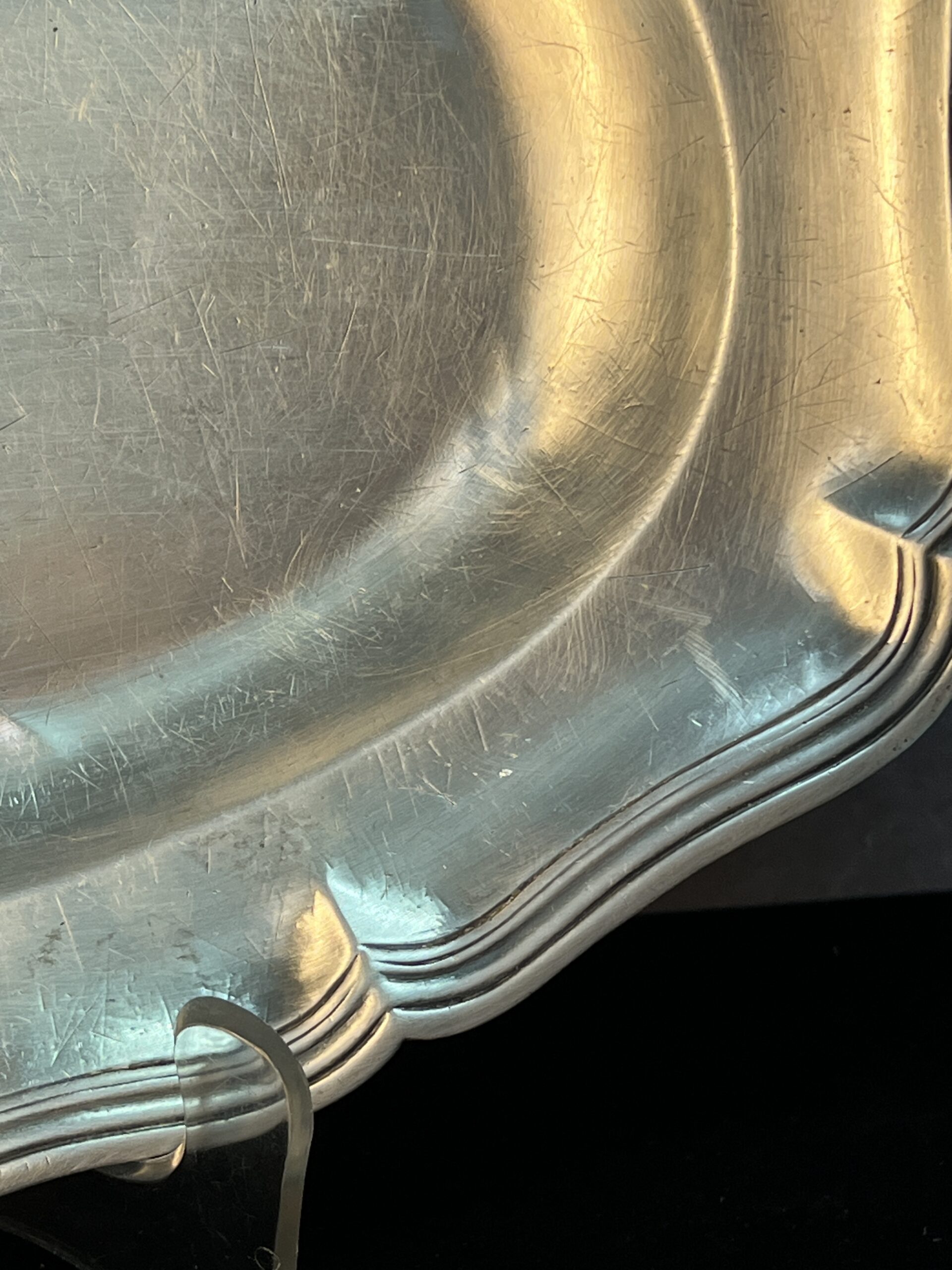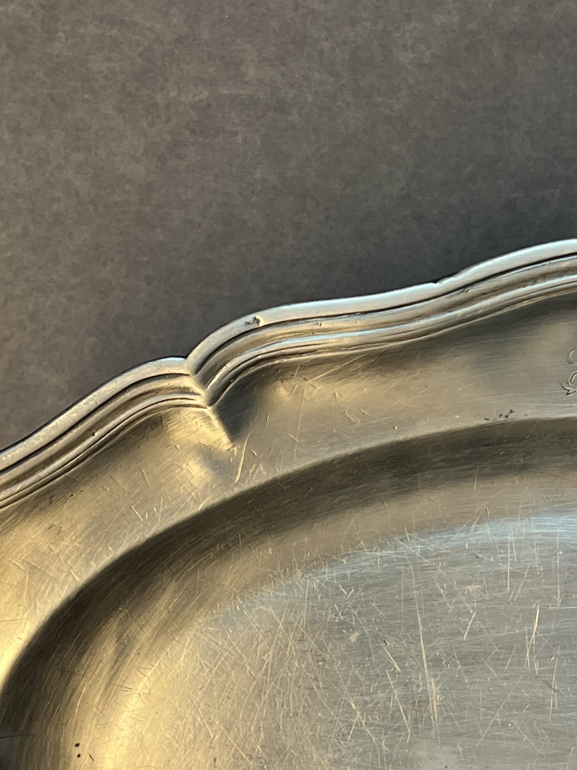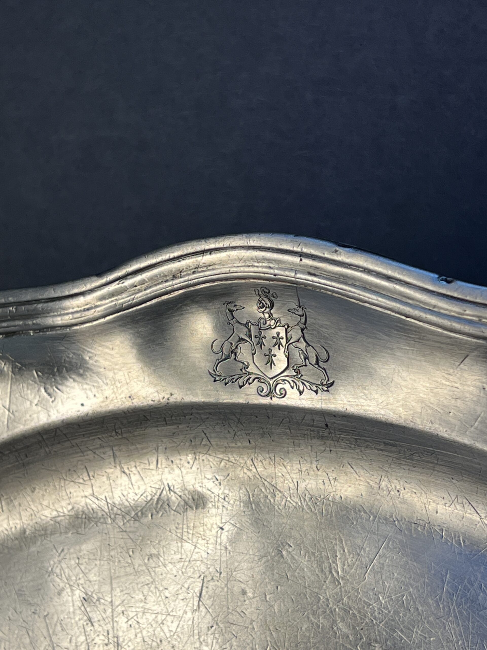 Je vous présente un objet d’exception, un très beau plat ancien en argent massif XVIIIe siècle.