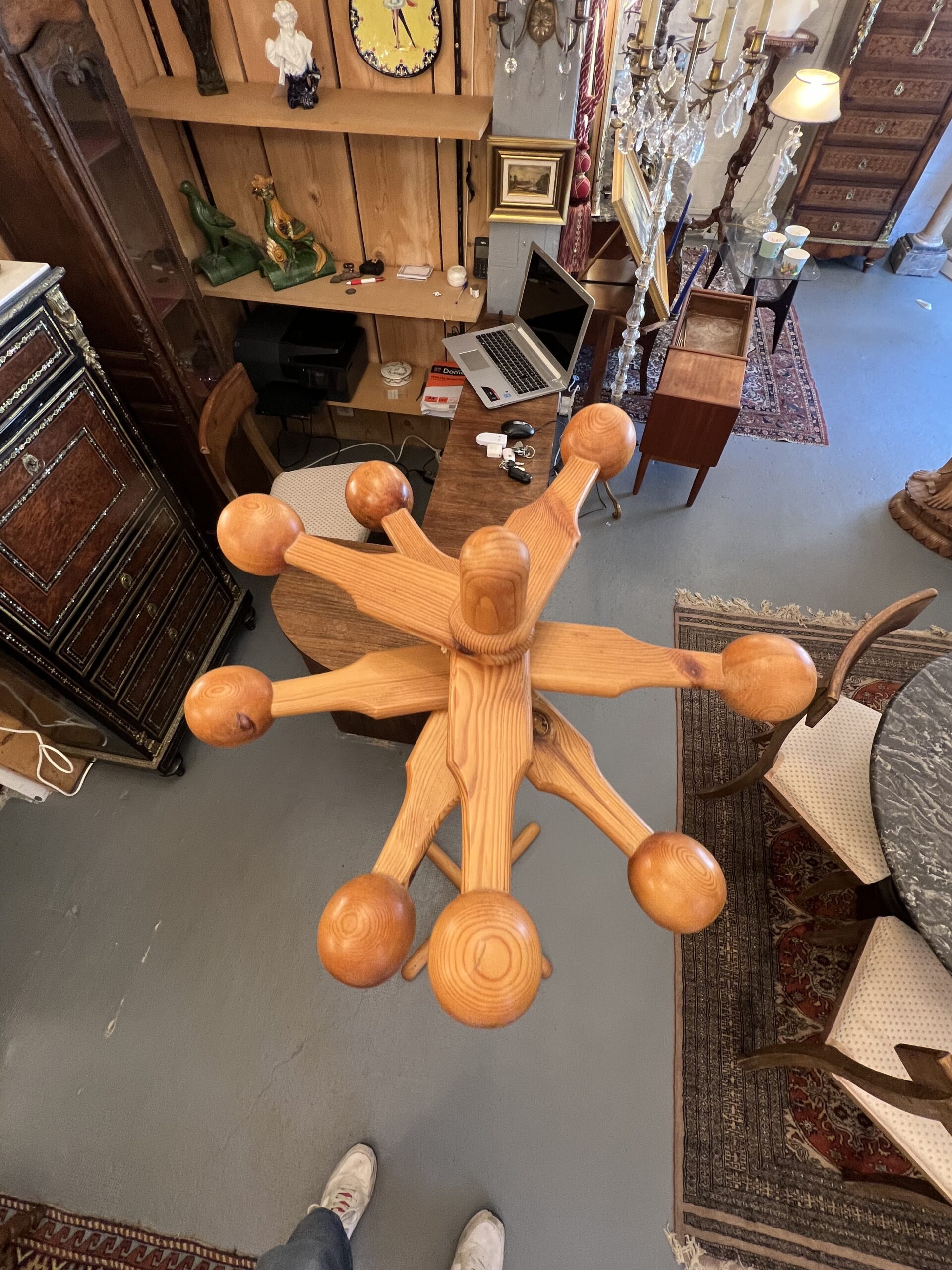 En somme, le porte-manteau en pin à patères hélicoïdales représente un exemple remarquable du génie créatif et de l’esthétique intemporelle du design scandinave des années 1960 et 1970. Son allure sculpturale, ses détails ingénieux et sa qualité artisanale en font un objet convoité par les amateurs de design du monde entier.