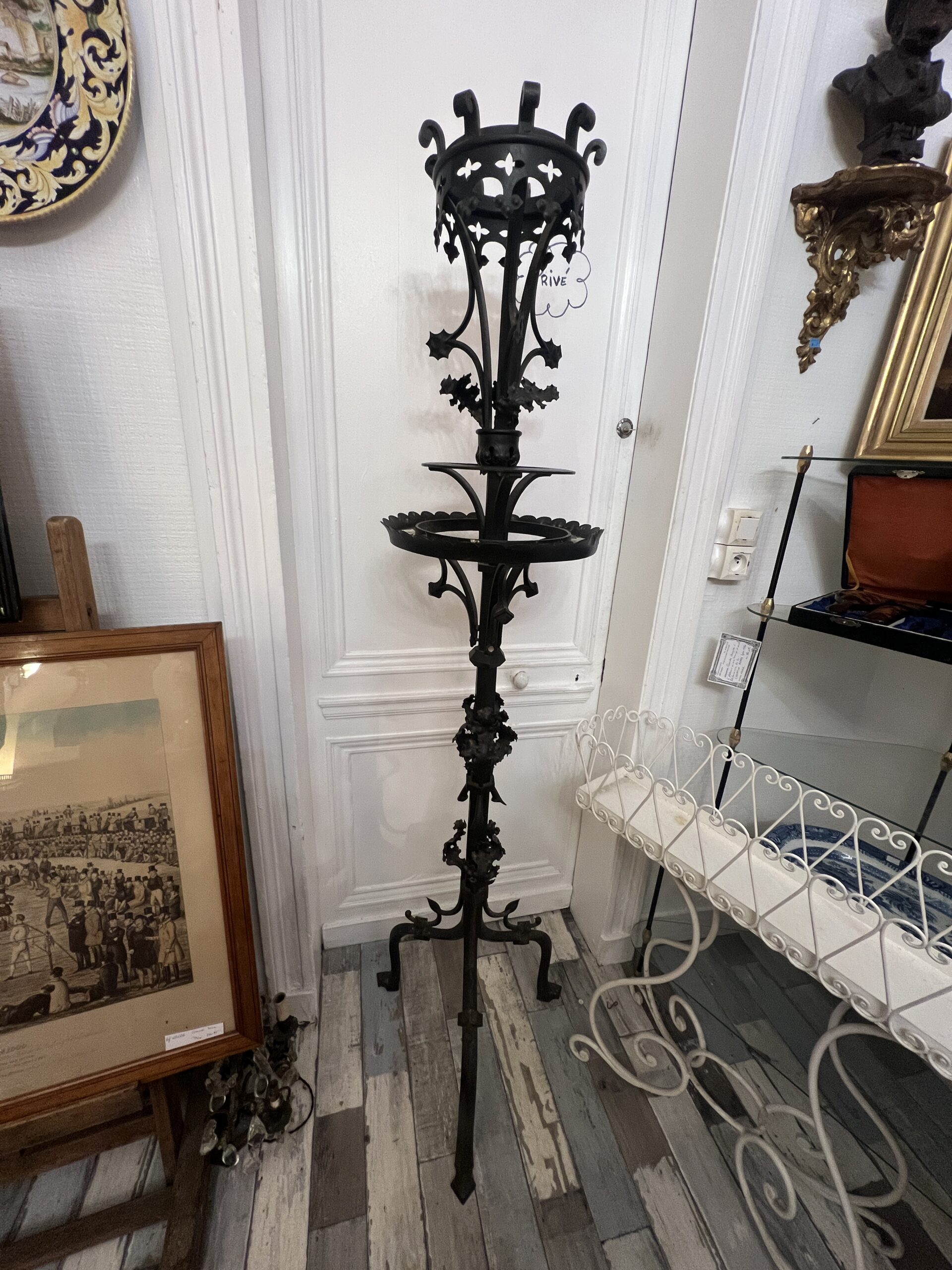 Rare grand porte bougies, en fer forgé XIXe siècle, religieux