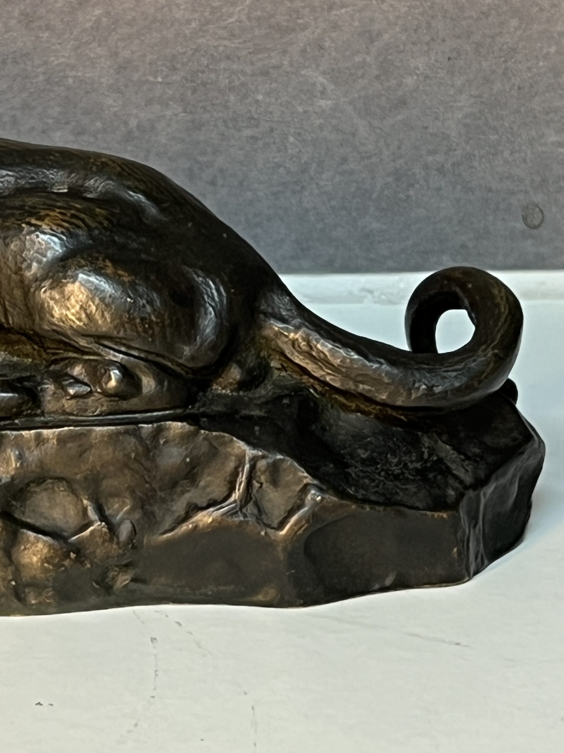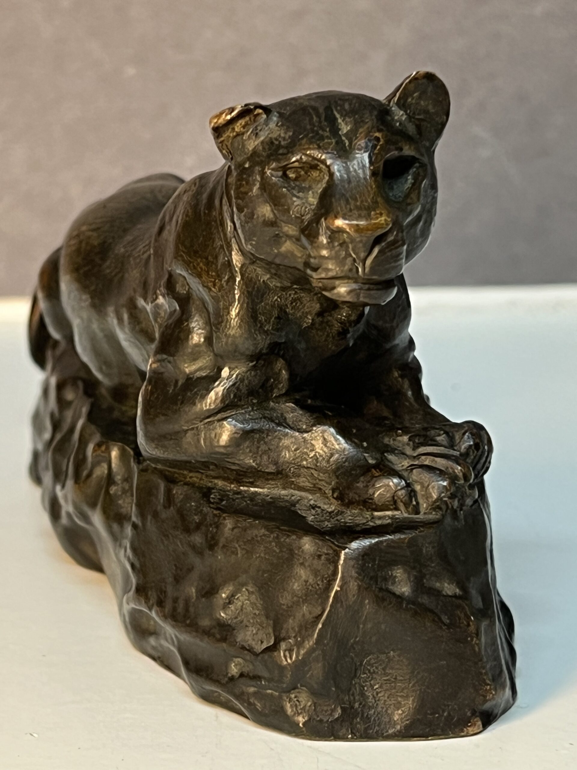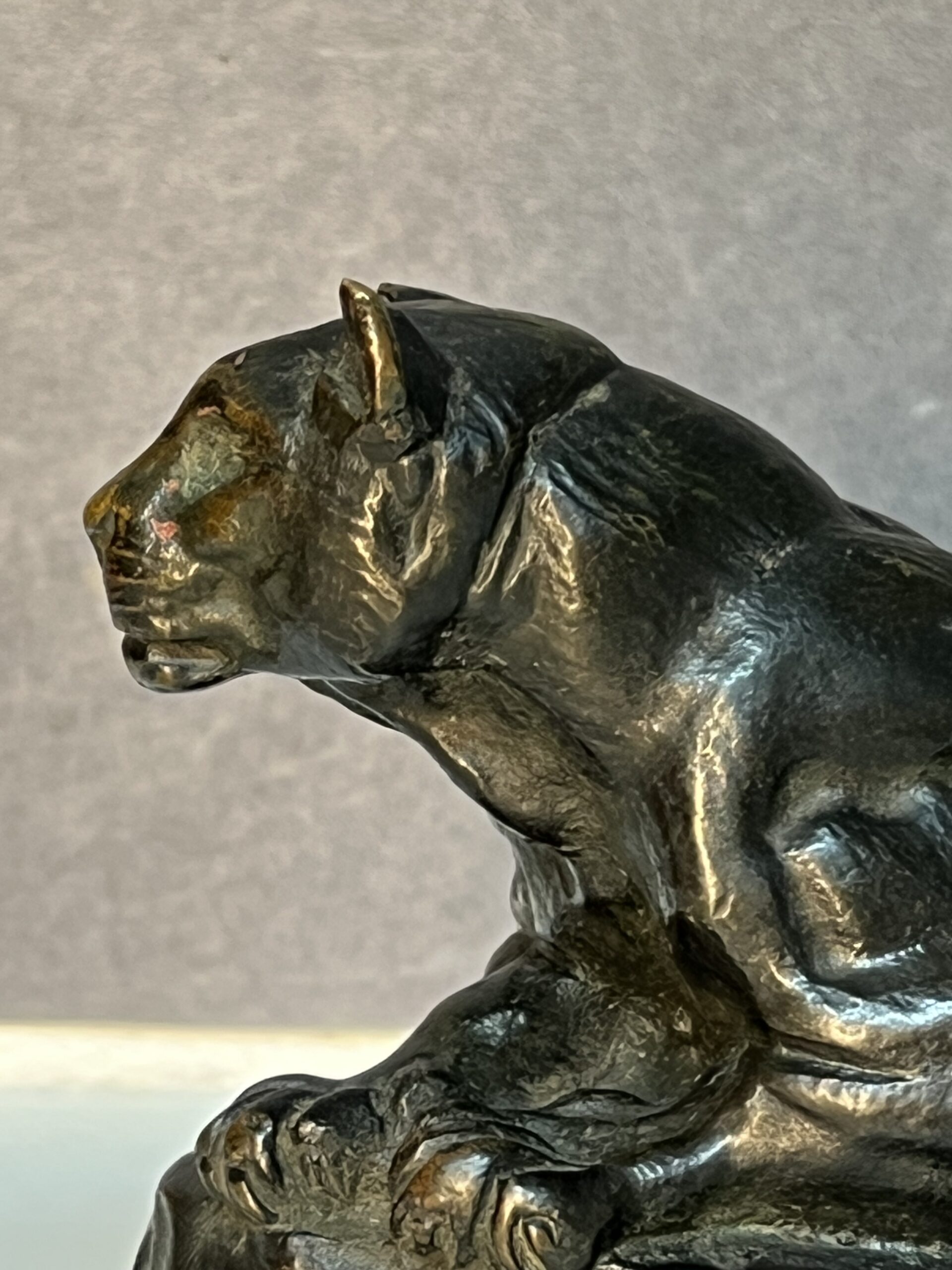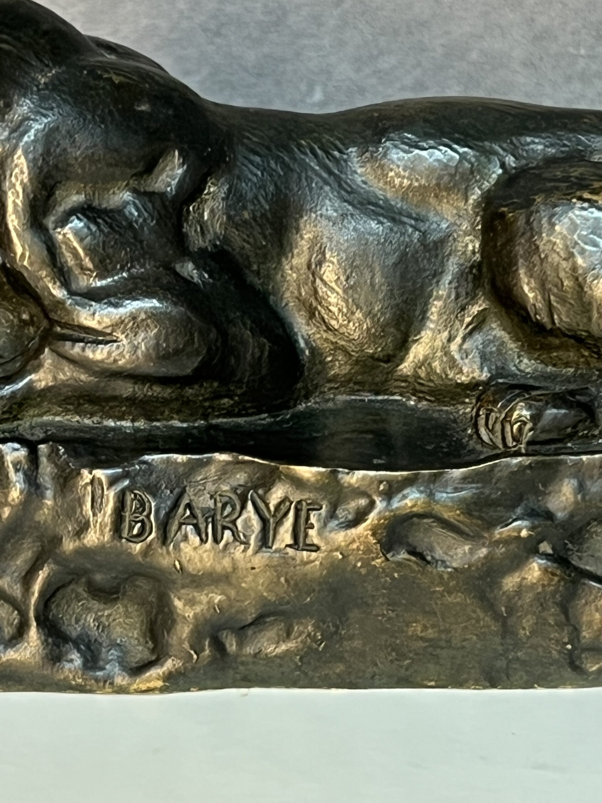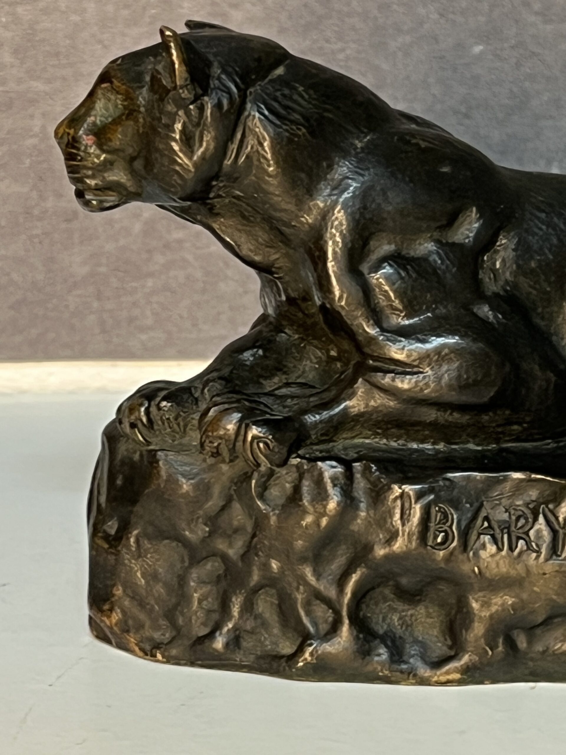 L’utilisation du bronze comme médium confère à l’œuvre une qualité intemporelle et une durabilité qui ont résisté à l’épreuve du temps. La richesse des détails et la qualité de l’exécution témoignent du savoir-faire exceptionnel de Barye en matière de sculpture. Chaque coup de ciseau semble être guidé par une profonde compréhension de l’anatomie et du comportement animal, permettant à l’œuvre de transcender les simples limites de la représentation artistique pour atteindre un niveau de vérité et d’authenticité émotionnelle.