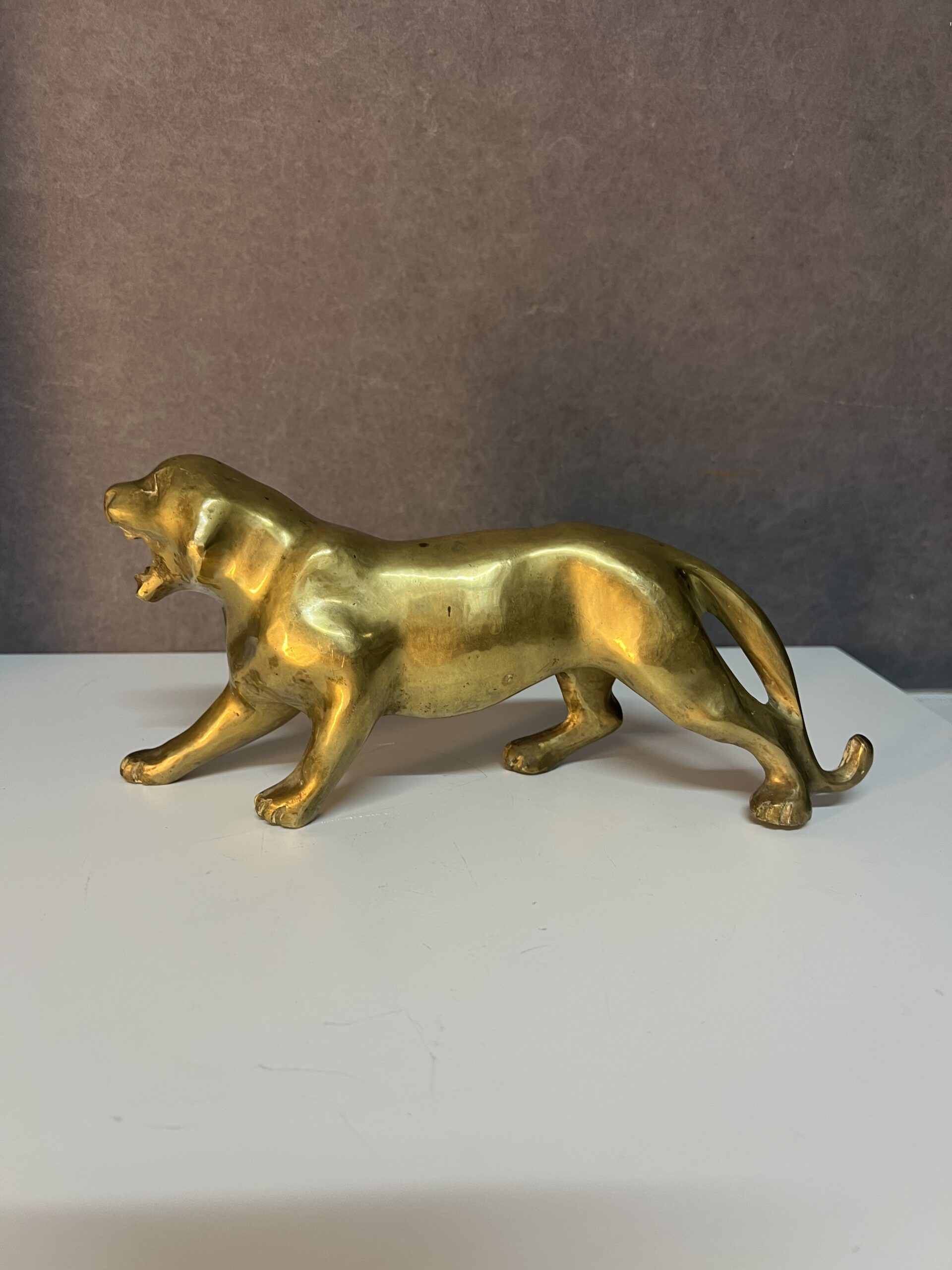 Idéal pour un cadeau d’exception ou pour enrichir une collection, ce tigre en laiton doré est une invitation à voyager à travers l’art et l’histoire.