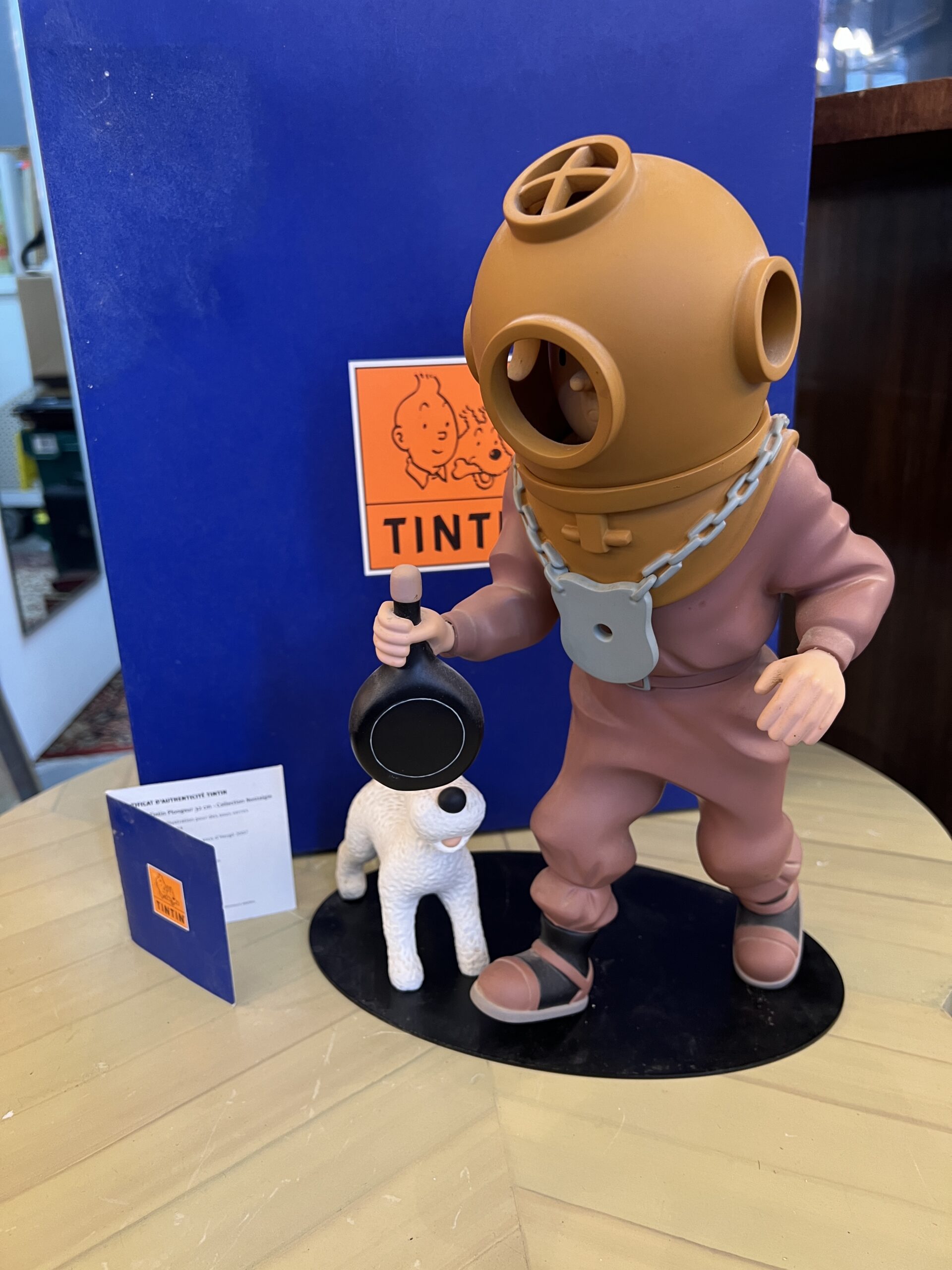 Statuette Tintin Plongeur 32 cm – Collection Nostalgie, coffret et certificat
