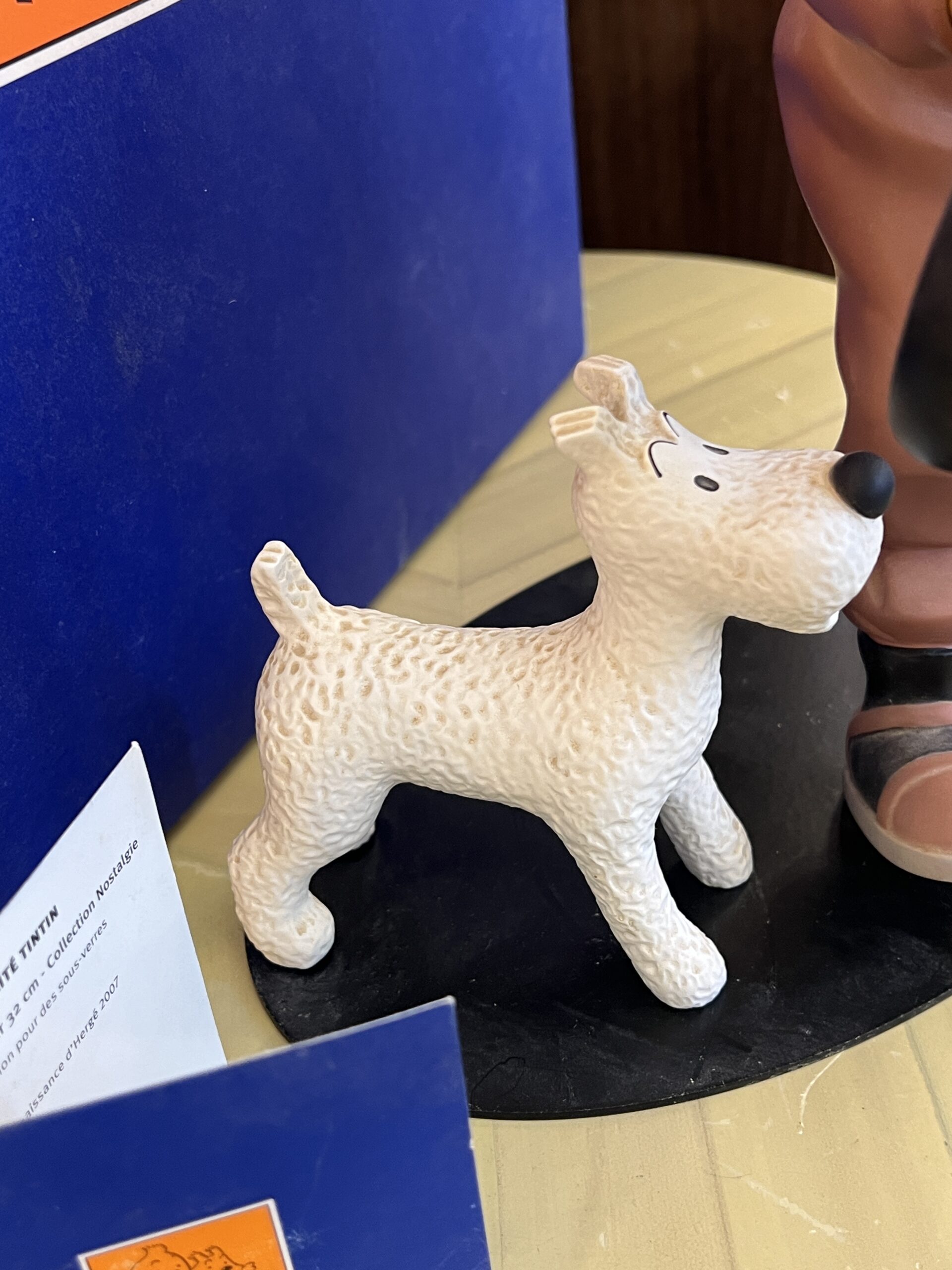 La peinture polychrome, appliquée à la main avec une expertise artisanale, donne vie à cette représentation emblématique de Tintin, lui conférant une présence dynamique et vibrante. Chaque nuance, chaque trait, est minutieusement travaillé pour capturer l’énergie et le caractère du personnage, tel qu’il a été imaginé par son créateur.