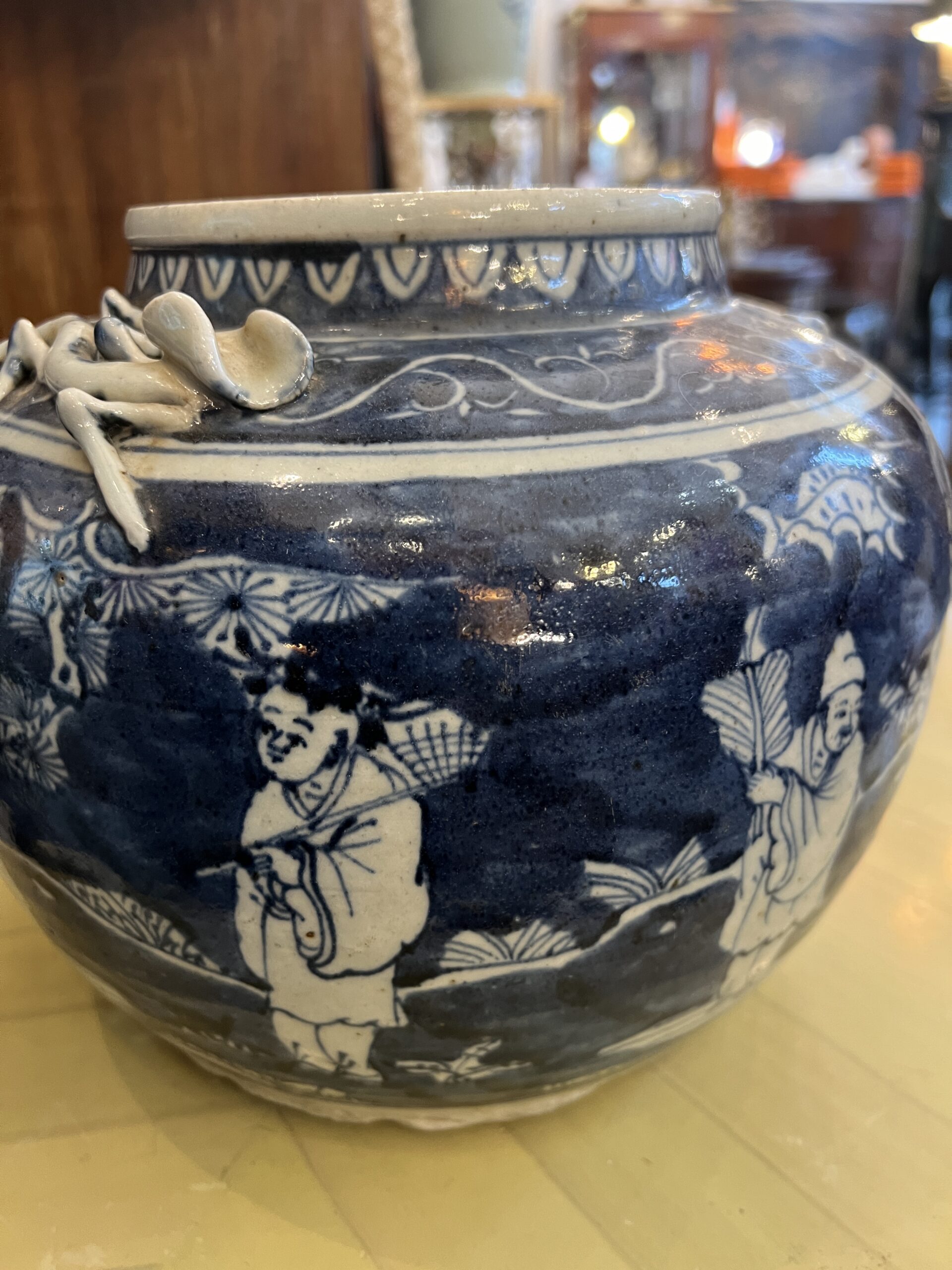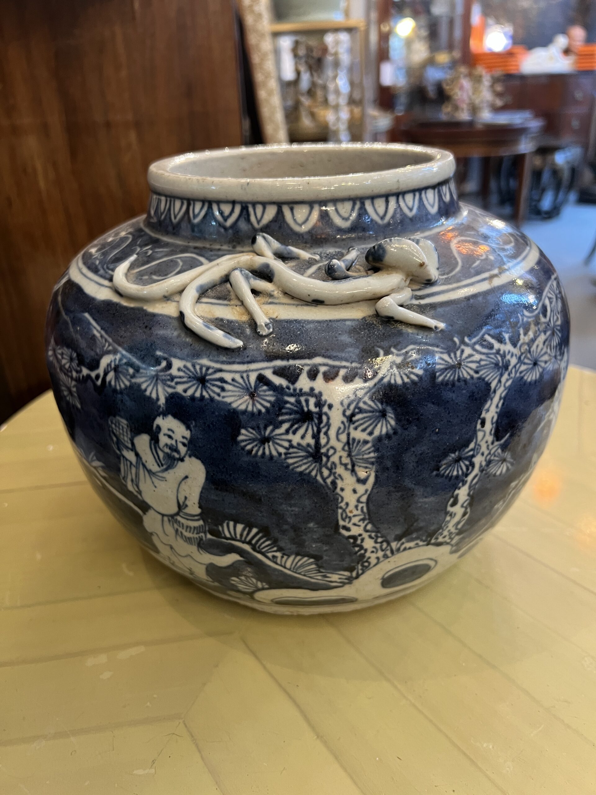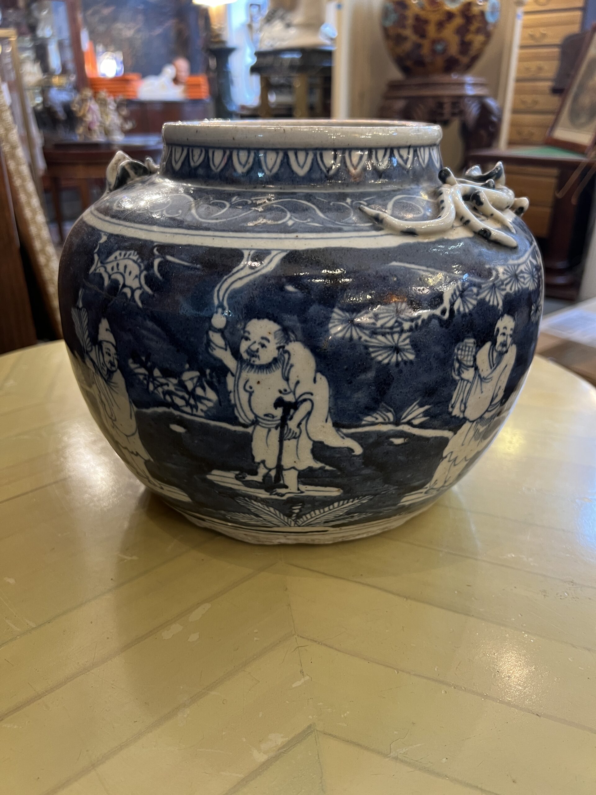 Pour un collectionneur ou un amateur d’art, posséder un tel objet offre non seulement un plaisir esthétique mais aussi une connexion tangible avec l’histoire et la culture chinoises. Le cache-pot, avec ses décorations minutieuses de Lohans et ses Chilongs dynamiques, incarne un récit visuel complexe et fascinant. Il invite à une contemplation méditative, rappelant les valeurs bouddhistes de sérénité et de sagesse, tout en célébrant la virtuosité artistique des céramistes du XIXe siècle.