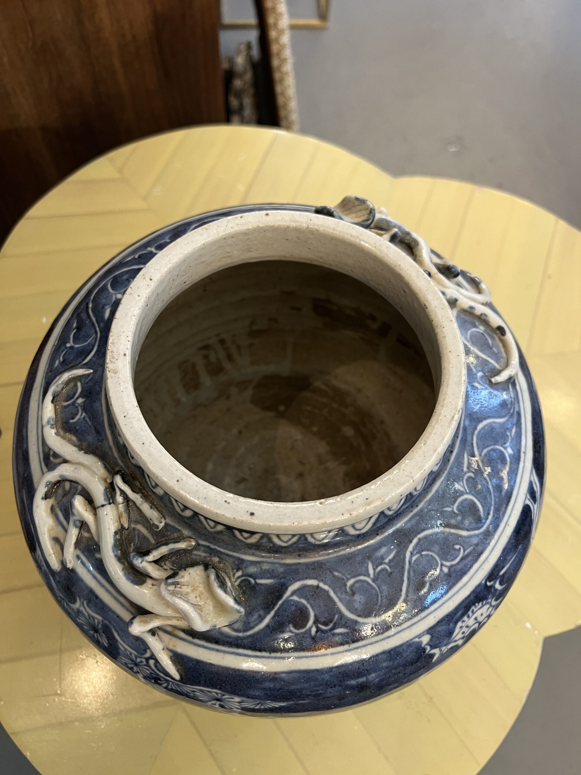 L’importance historique et artistique de ce cache-pot est renforcée par le contexte du XIXe siècle en Chine, une période marquée par une grande créativité et un raffinement accru dans la production de la porcelaine. Les artisans de cette époque étaient souvent influencés par les traditions ancestrales tout en expérimentant de nouvelles techniques et motifs. Cette période a vu l’émergence de pièces qui, comme ce cache-pot, témoignent d’un équilibre harmonieux entre tradition et innovation.