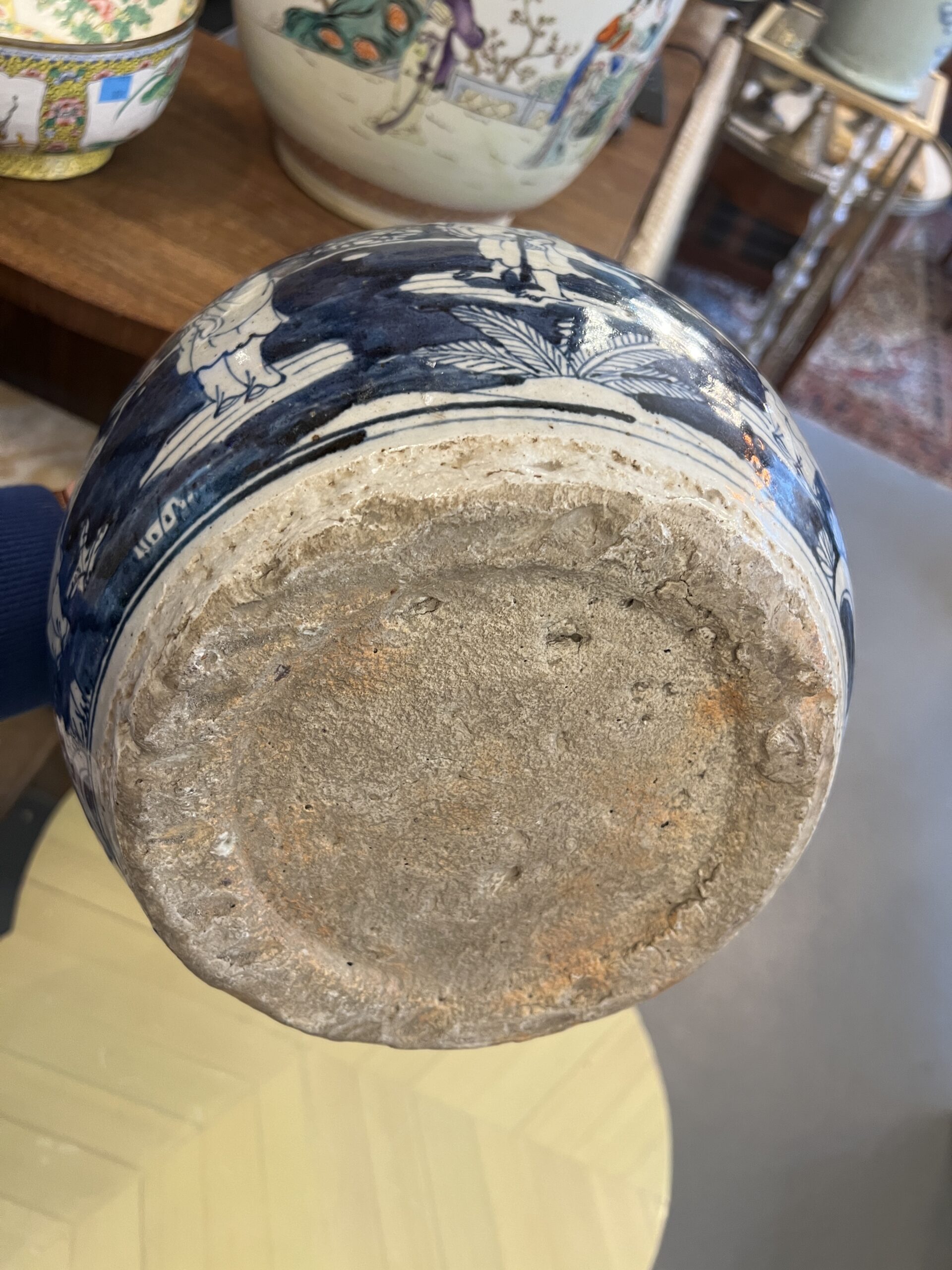 En termes de condition, ce cache-pot est en très bel état général, ce qui est un facteur significatif pour les collectionneurs et les amateurs d’art. L’état de conservation indique que cette pièce a été soigneusement préservée à travers les années, sans dommage majeur qui pourrait nuire à son esthétique ou à sa valeur historique. Les couleurs vives et les détails nets suggèrent une conservation optimale, essentielle pour une pièce de ce calibre.