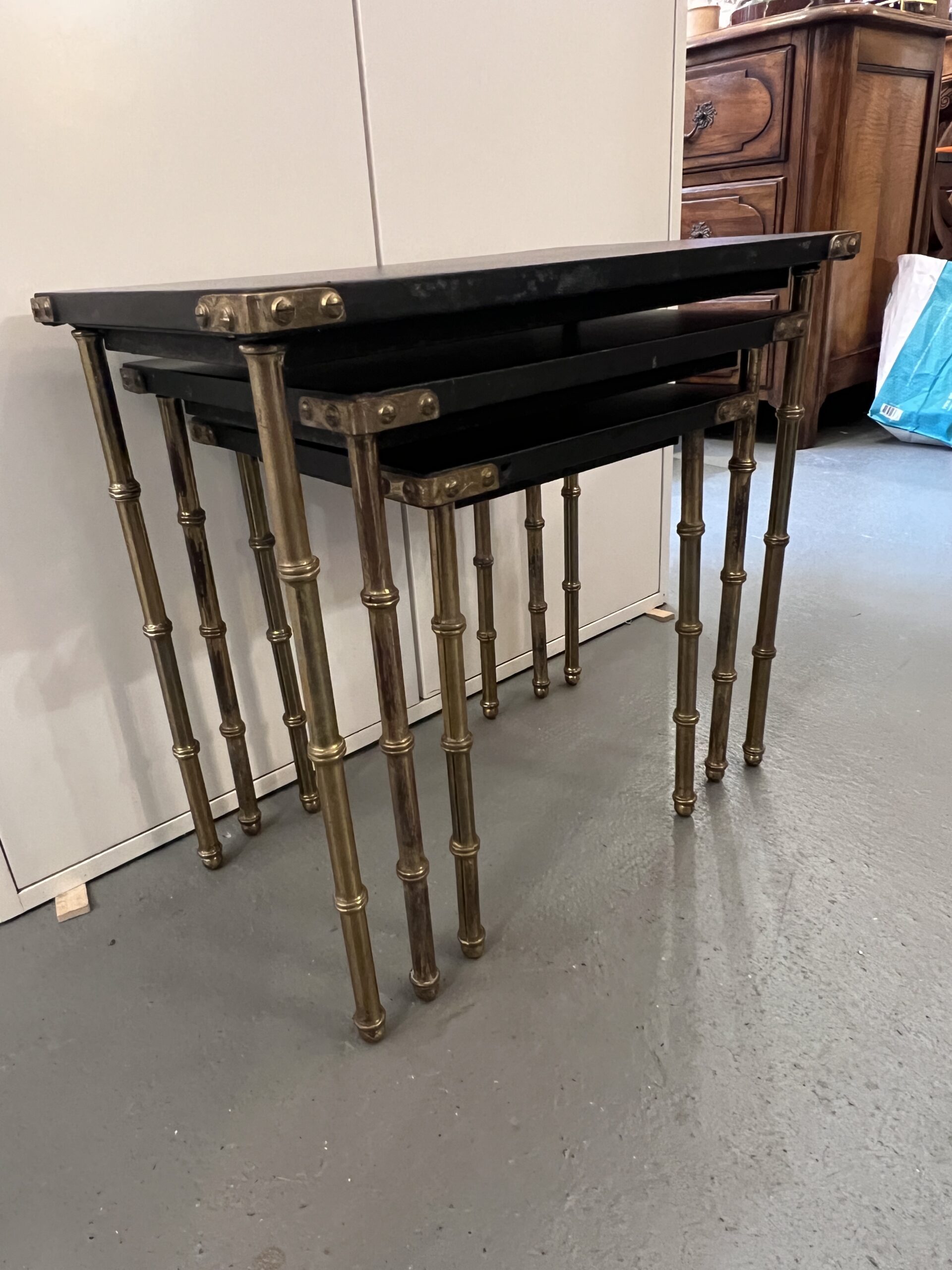 Tables gigognes en laiton et cuir des années 1950 par Jacques ADNET